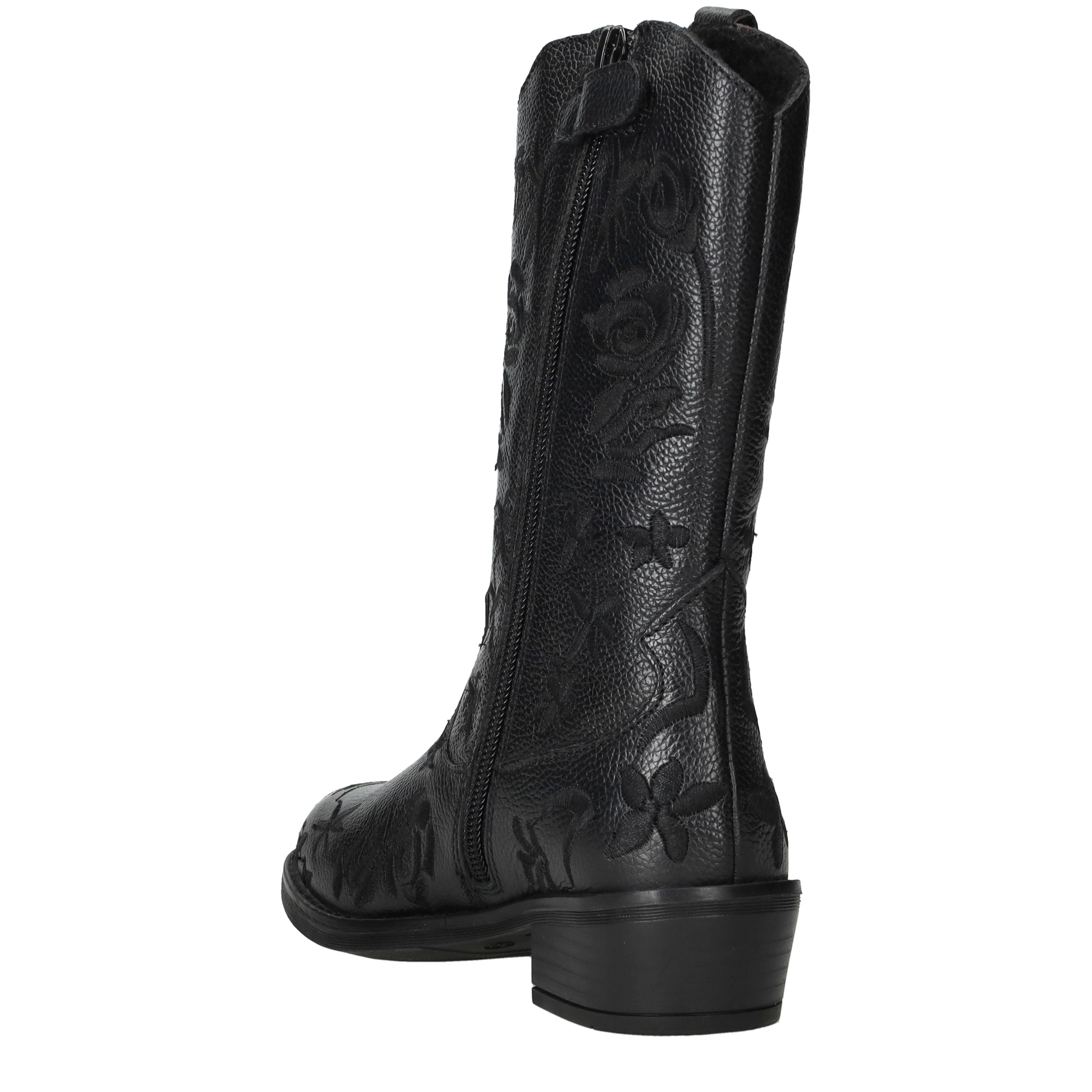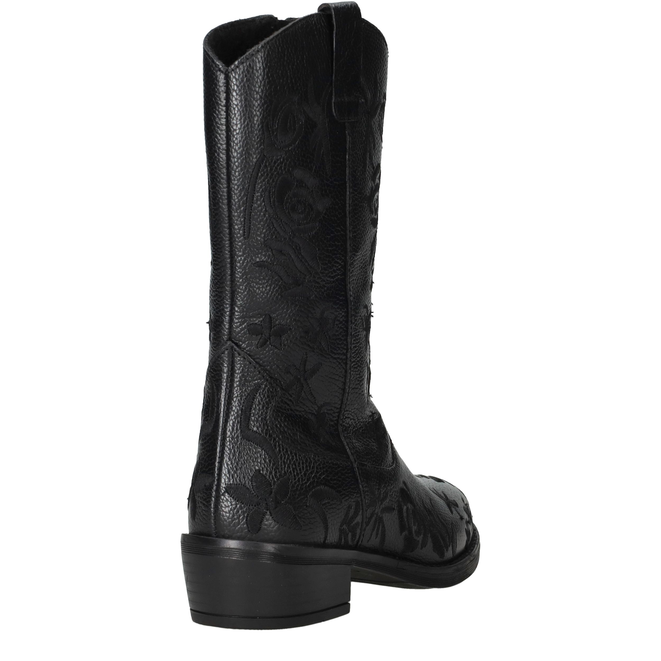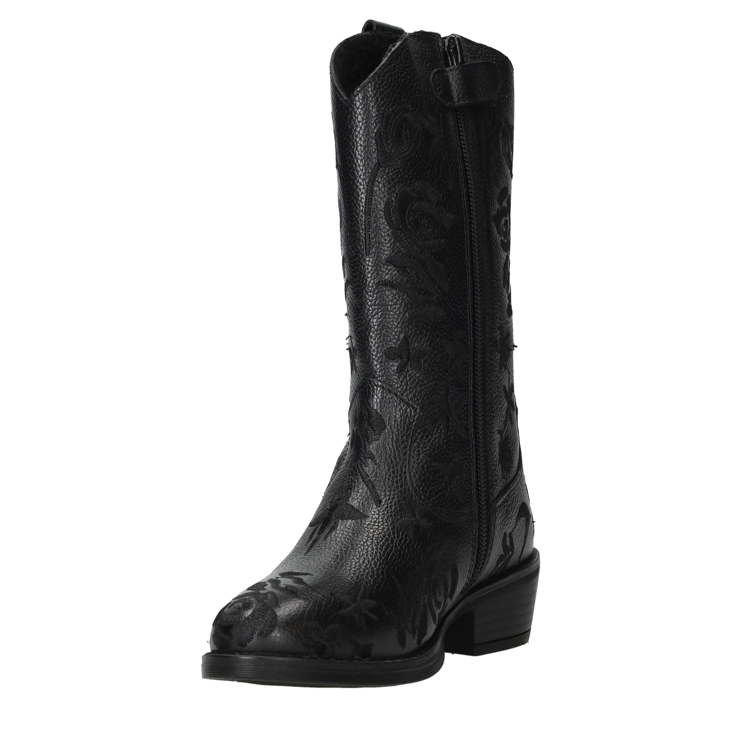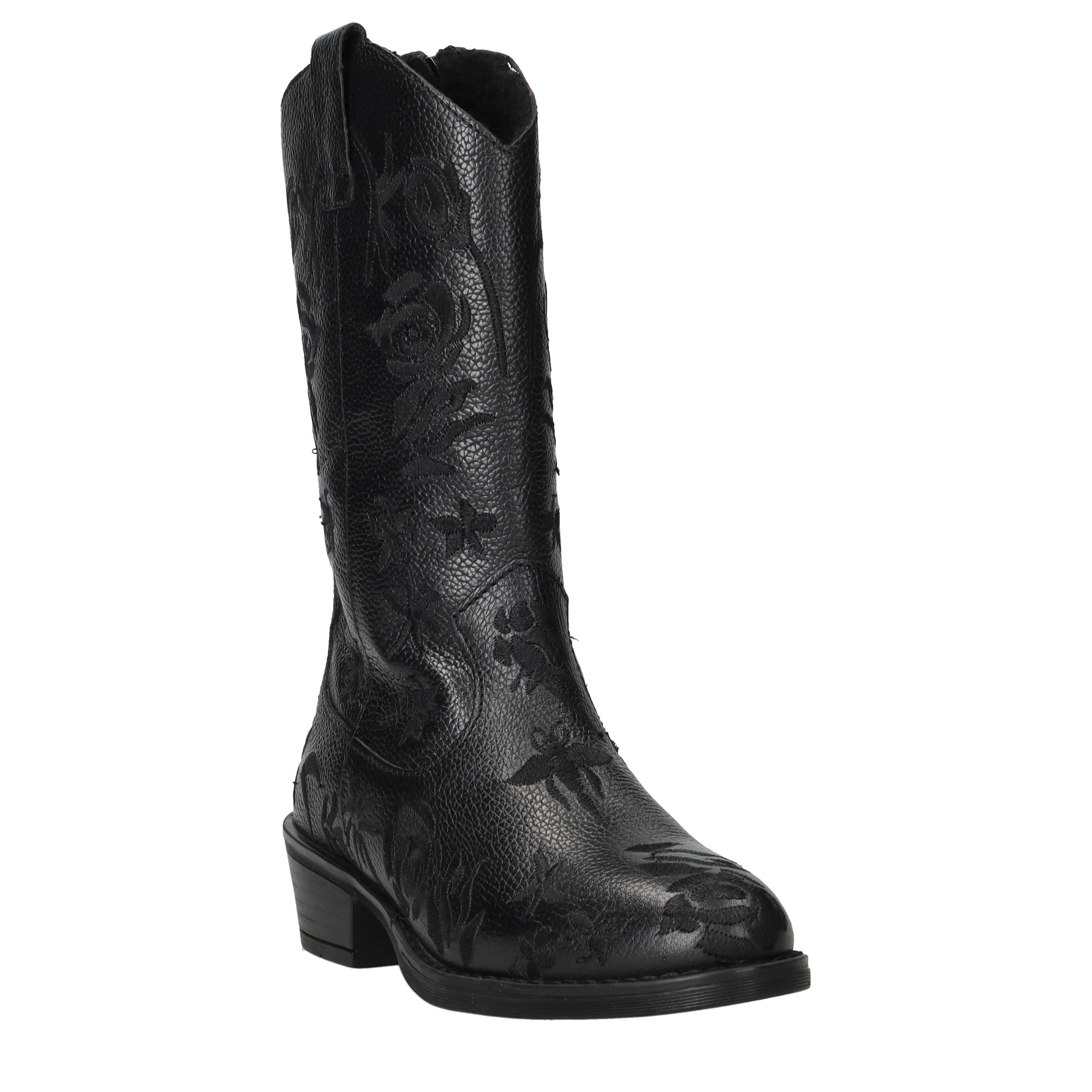 Deze stoere zwarte laarzen van Loff1881 zijn een echte eyecatcher voor meiden met stijl. Het leer is prachtig afgewerkt met bloemenmotief en de stevige hak zorgt voor een trendy westernlook. Dankzij het uitneembare voetbed zijn ze niet alleen mooi, maar ook supercomfortabel. Perfect voor school, feestjes of gewoon elke dag!