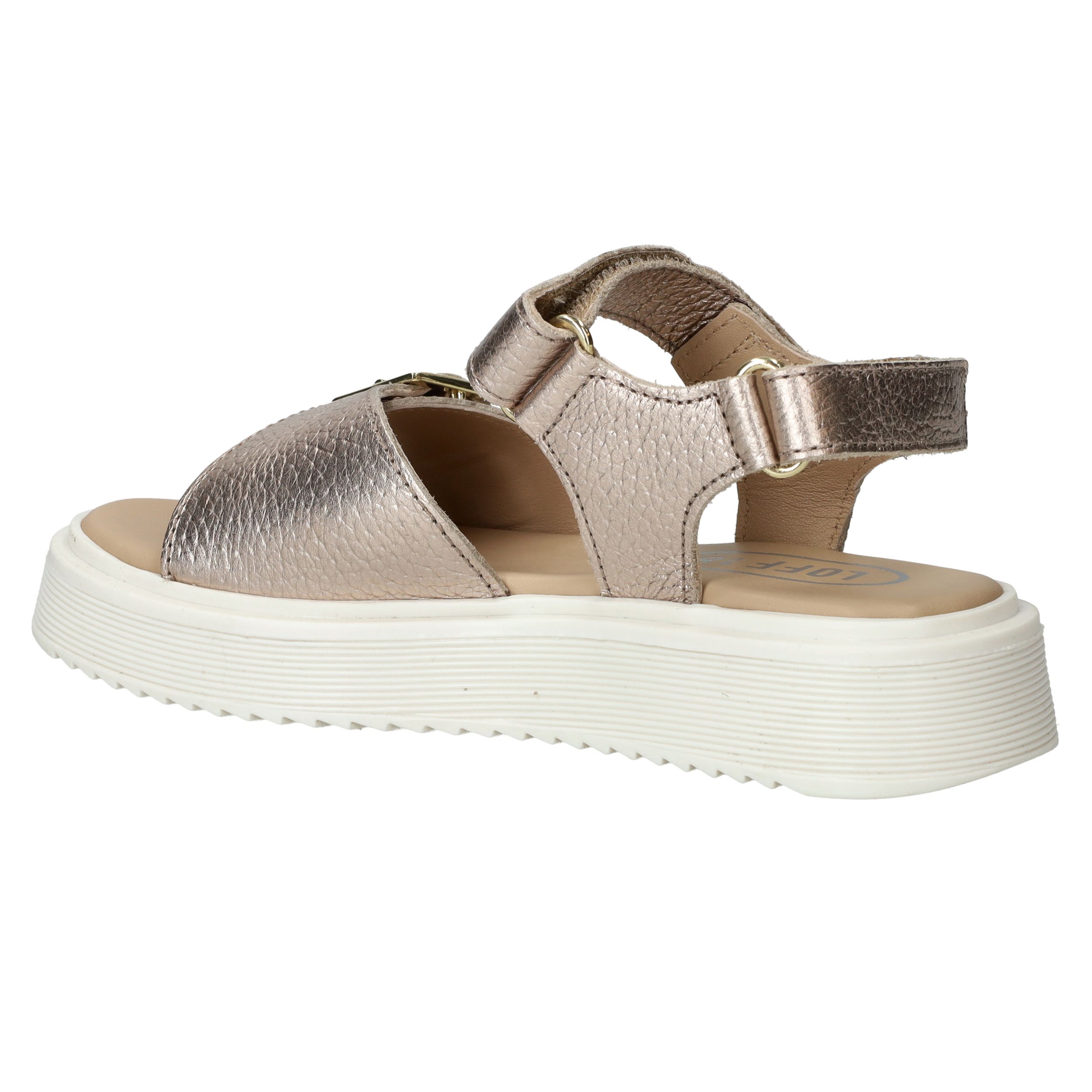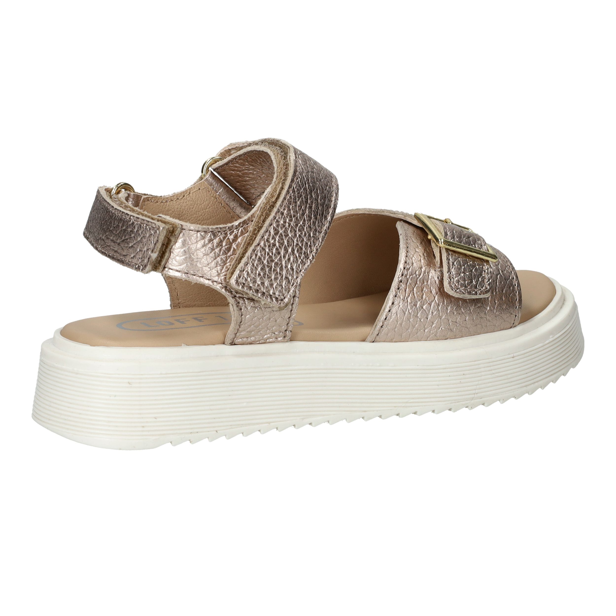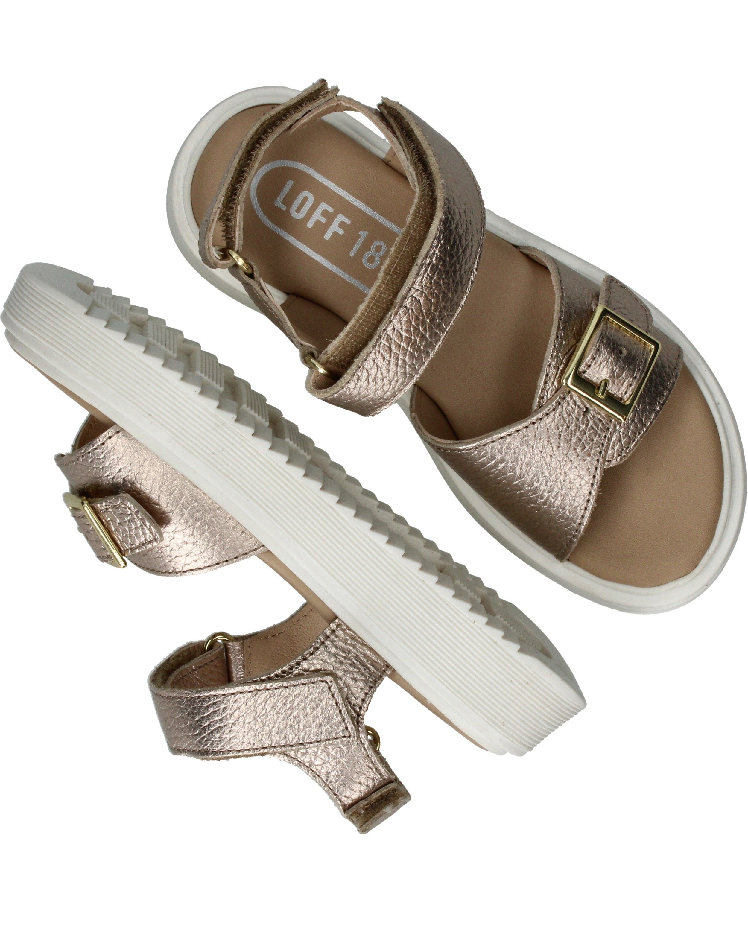 Ga voor deze stralende LOFF 1881 sandaal voor meiden! De sandaal heeft een mooie gouden metallic kleur met een subtiele roze gloed en een stoere zool.