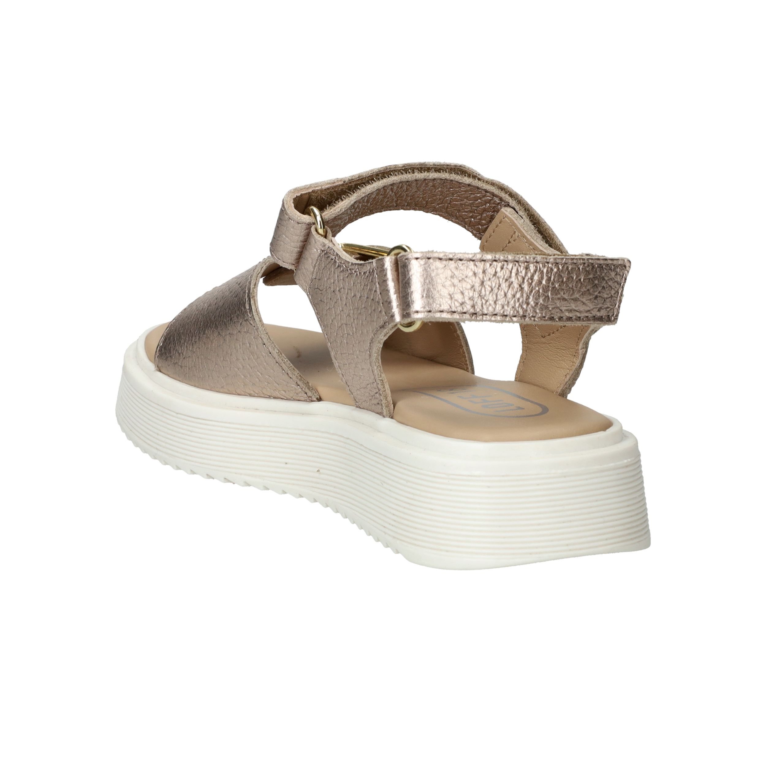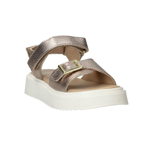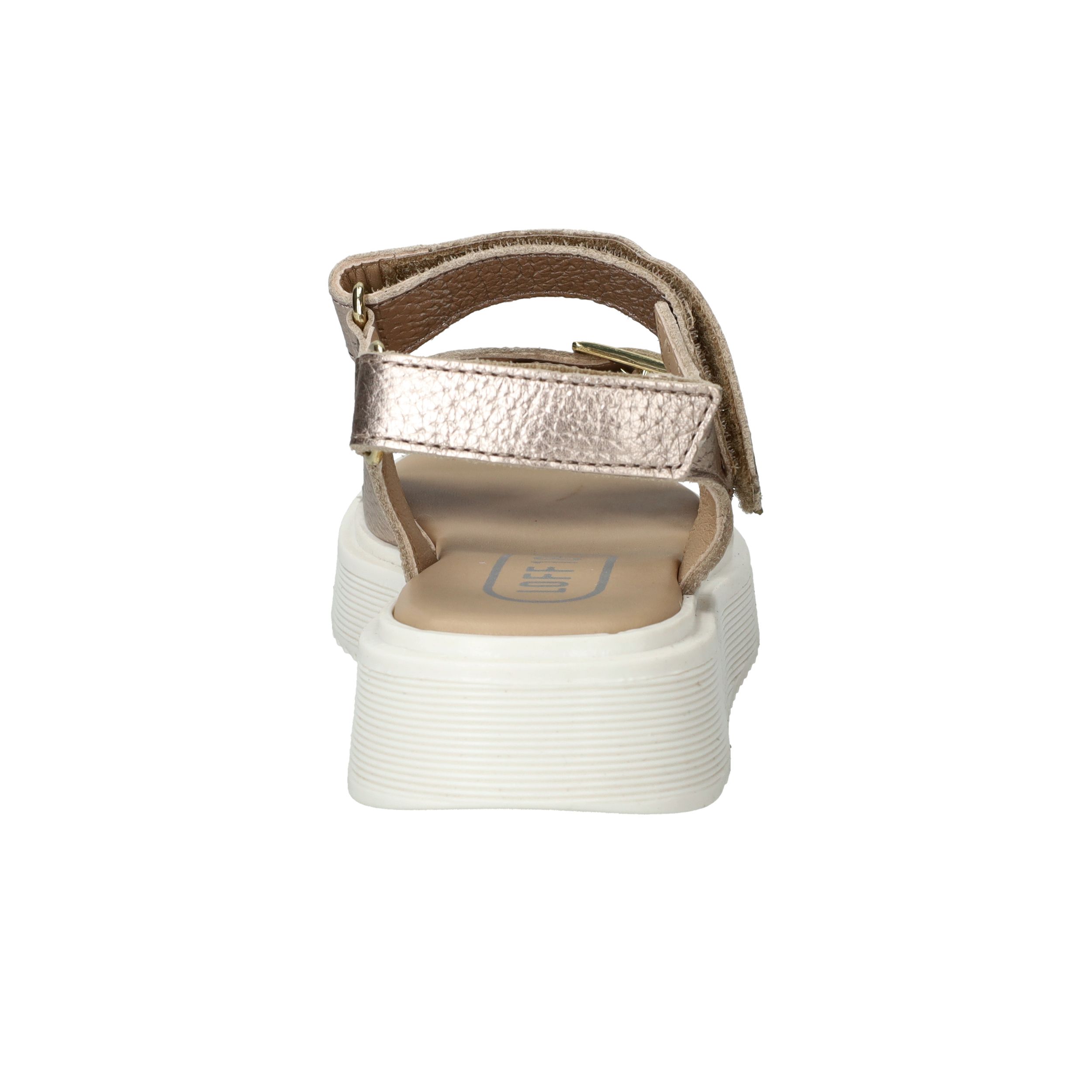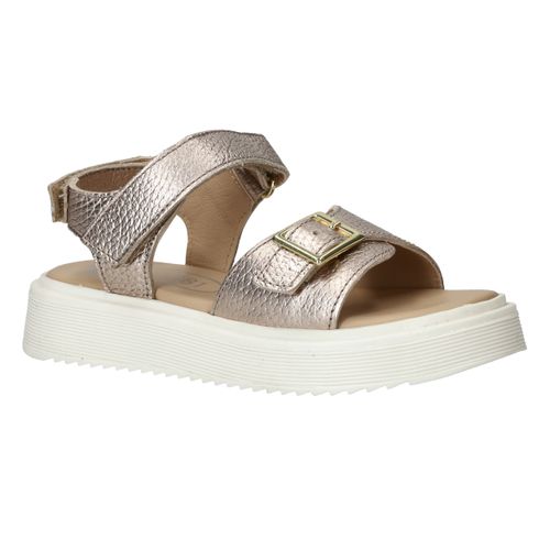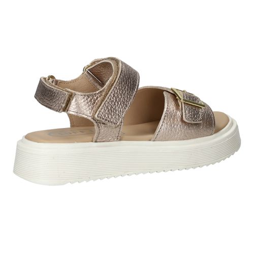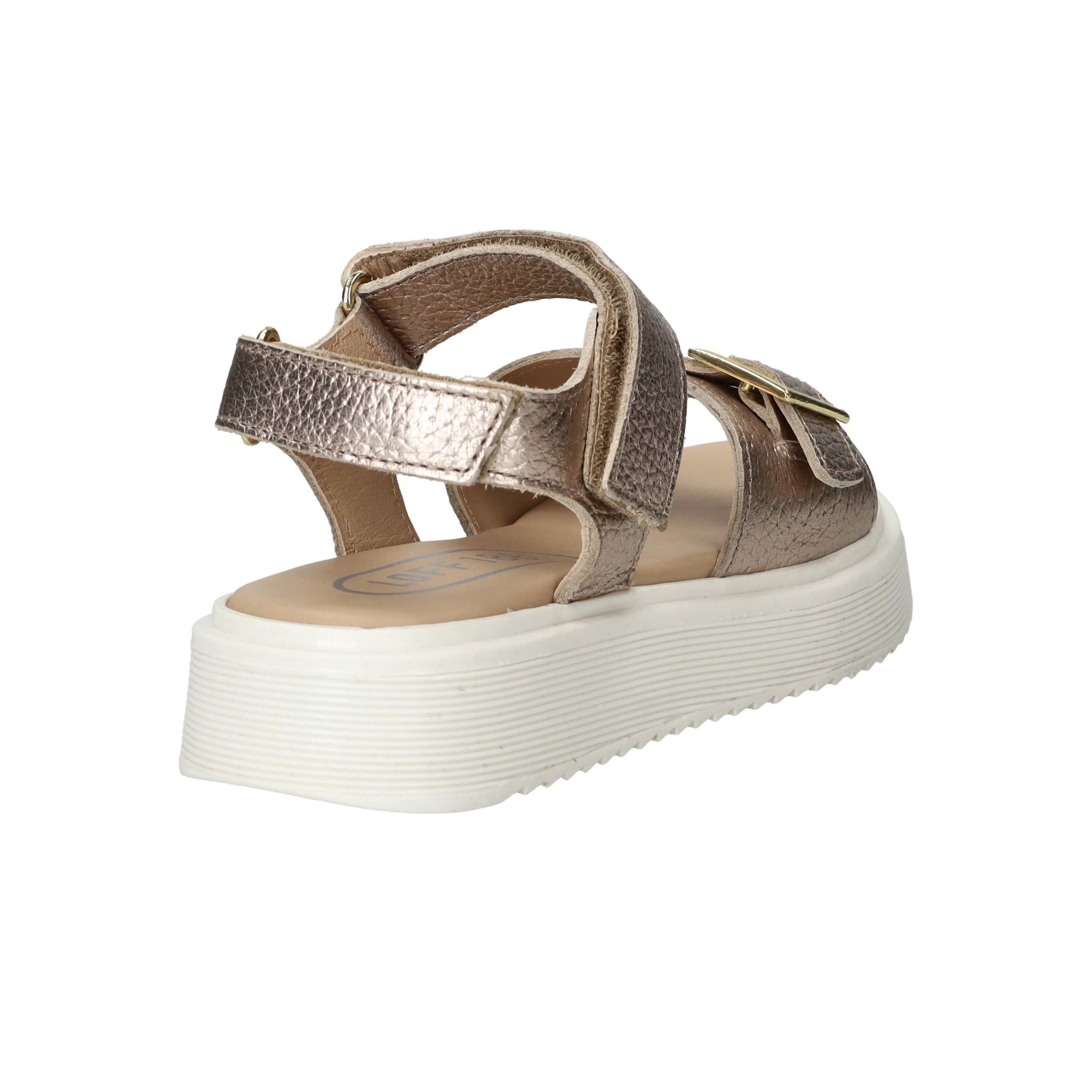 Ga voor deze stralende LOFF 1881 sandaal voor meiden! De sandaal heeft een mooie gouden metallic kleur met een subtiele roze gloed en een stoere zool.