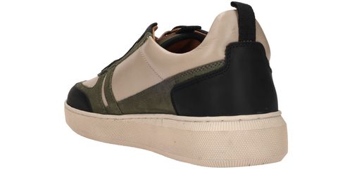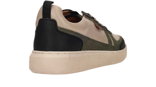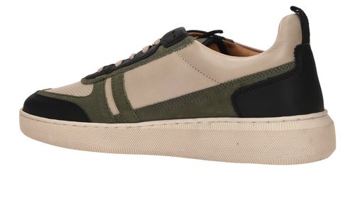 Sportieve LOFF 1881 sneaker voor heren. De schoen is gemaakt van beige leer en heeft mooie groen en blauwe accenten.