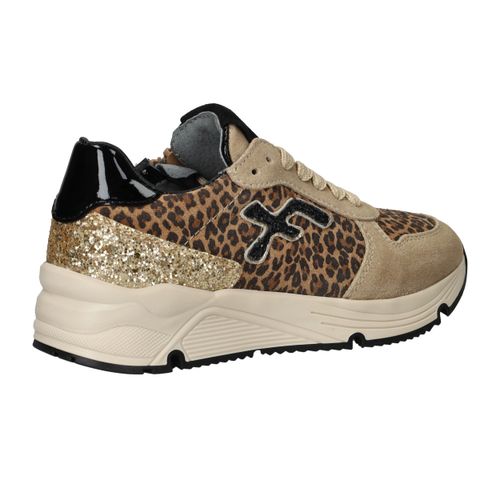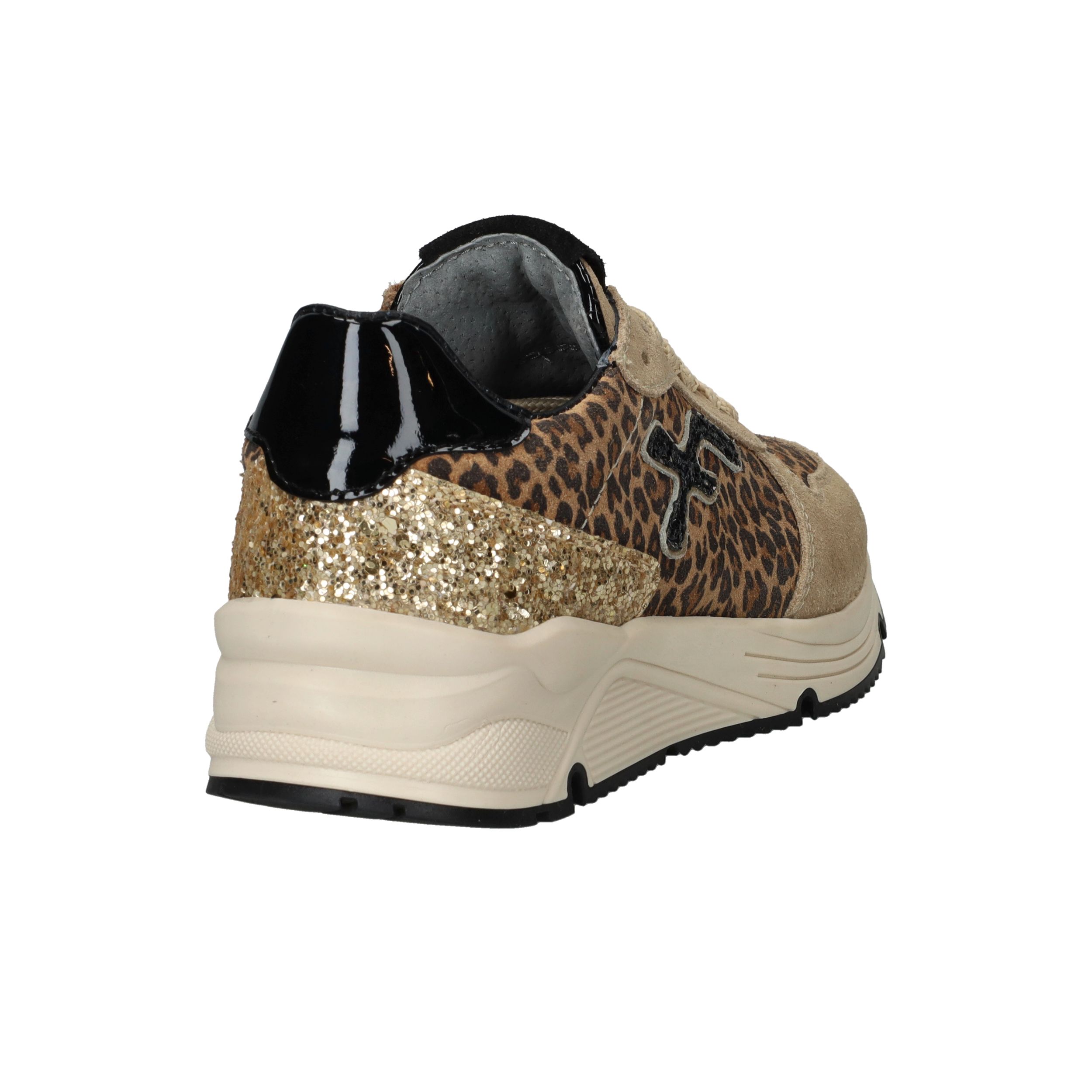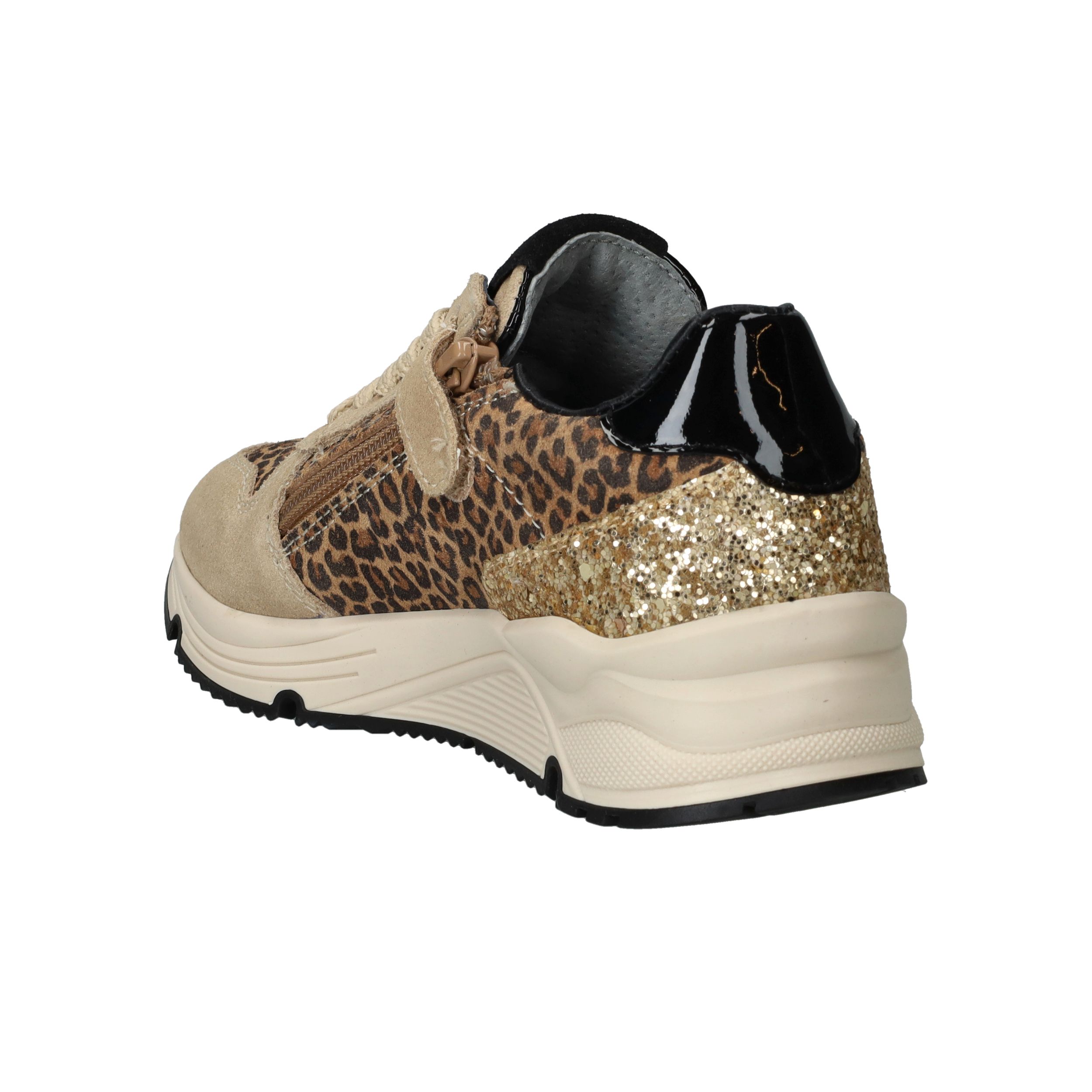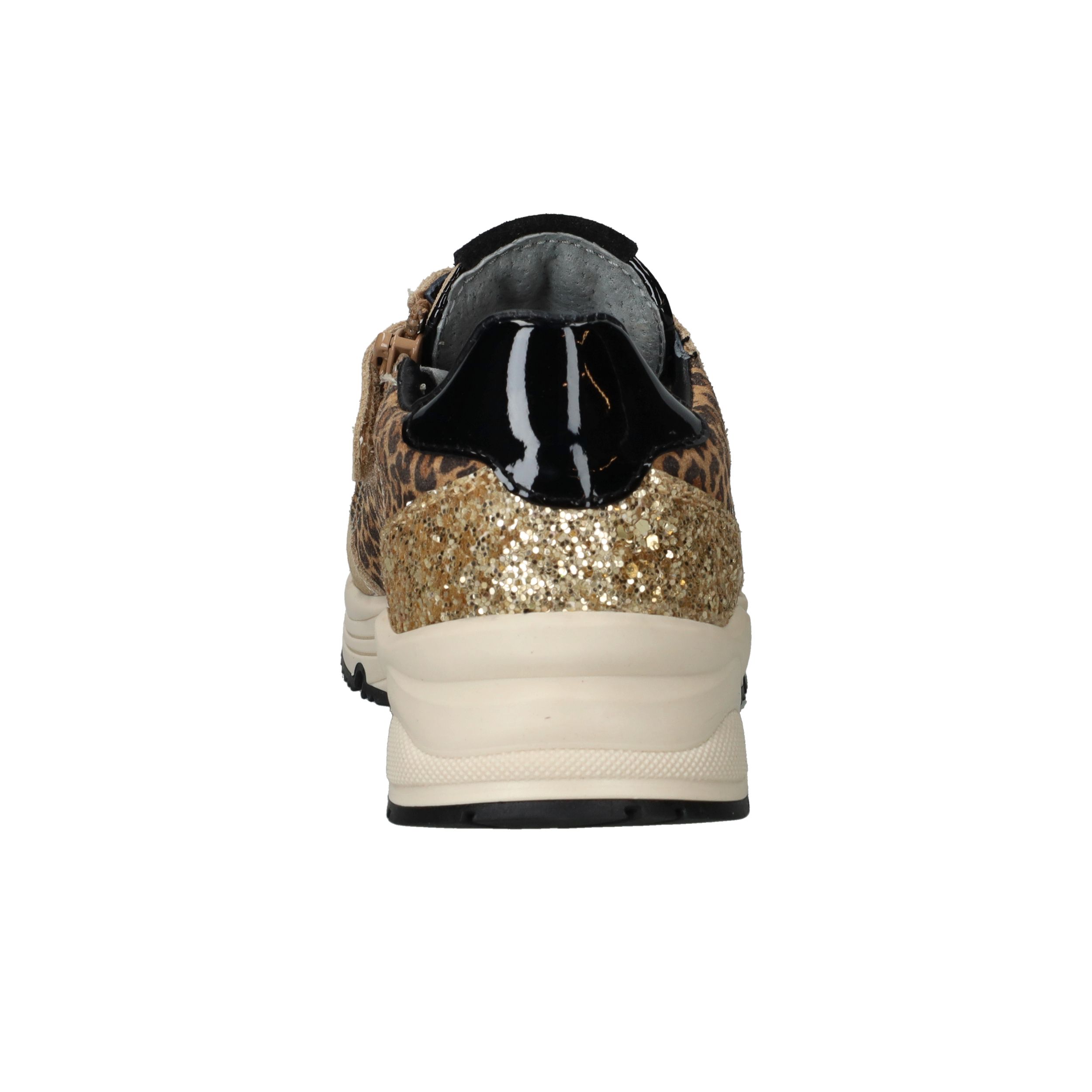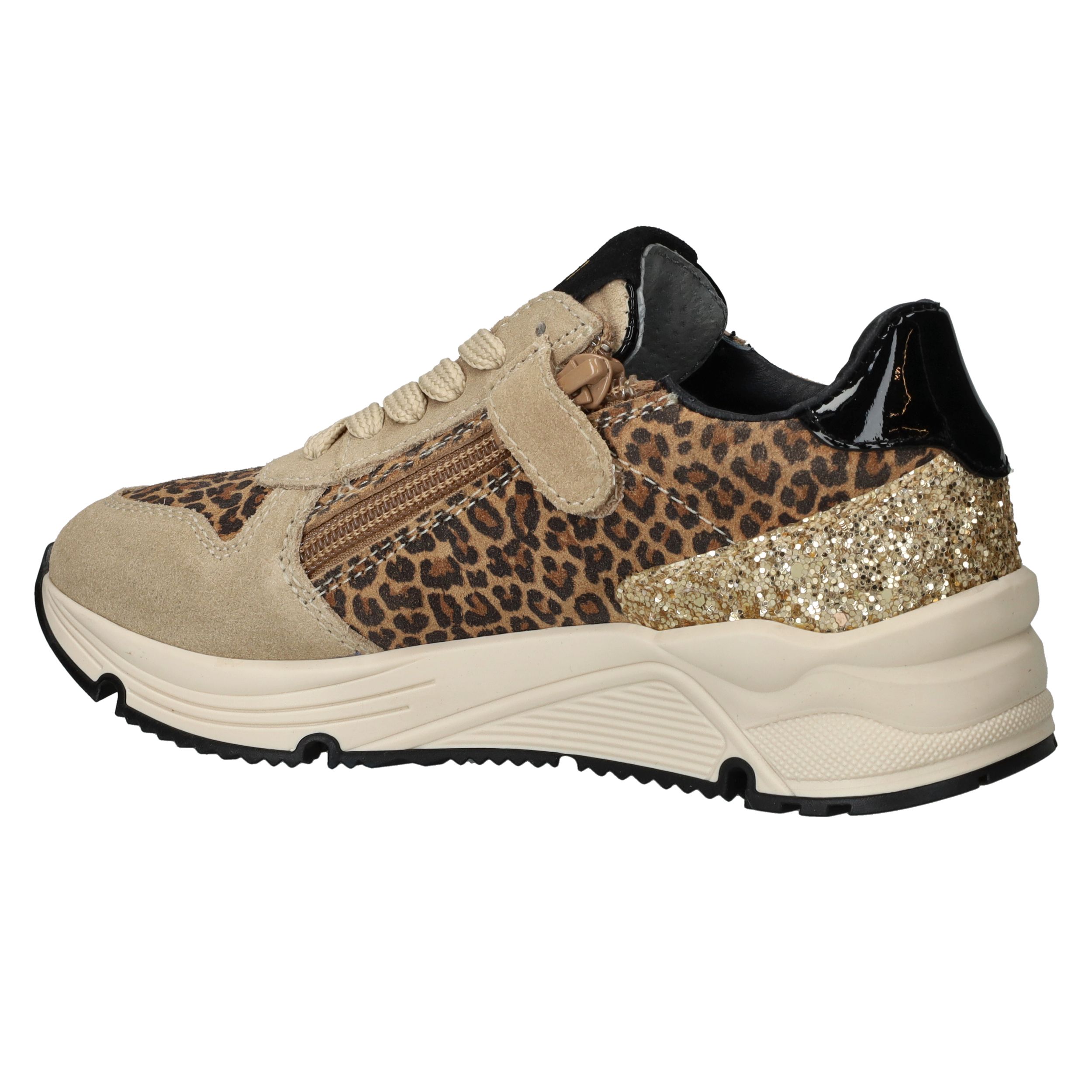 - Belangrijke kenmerken zijn de panterprint, glitteraccenten en de stevige profielzool.