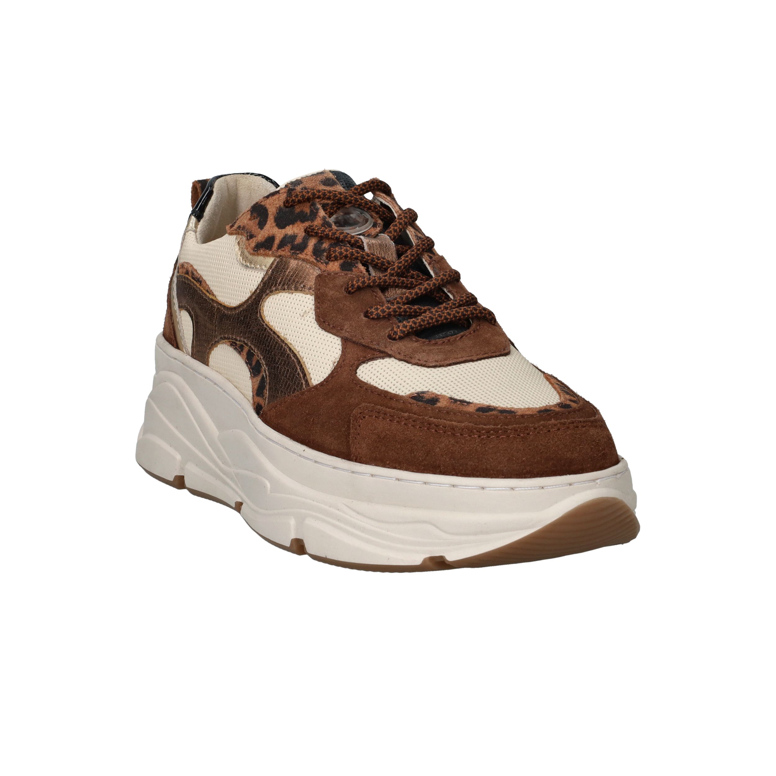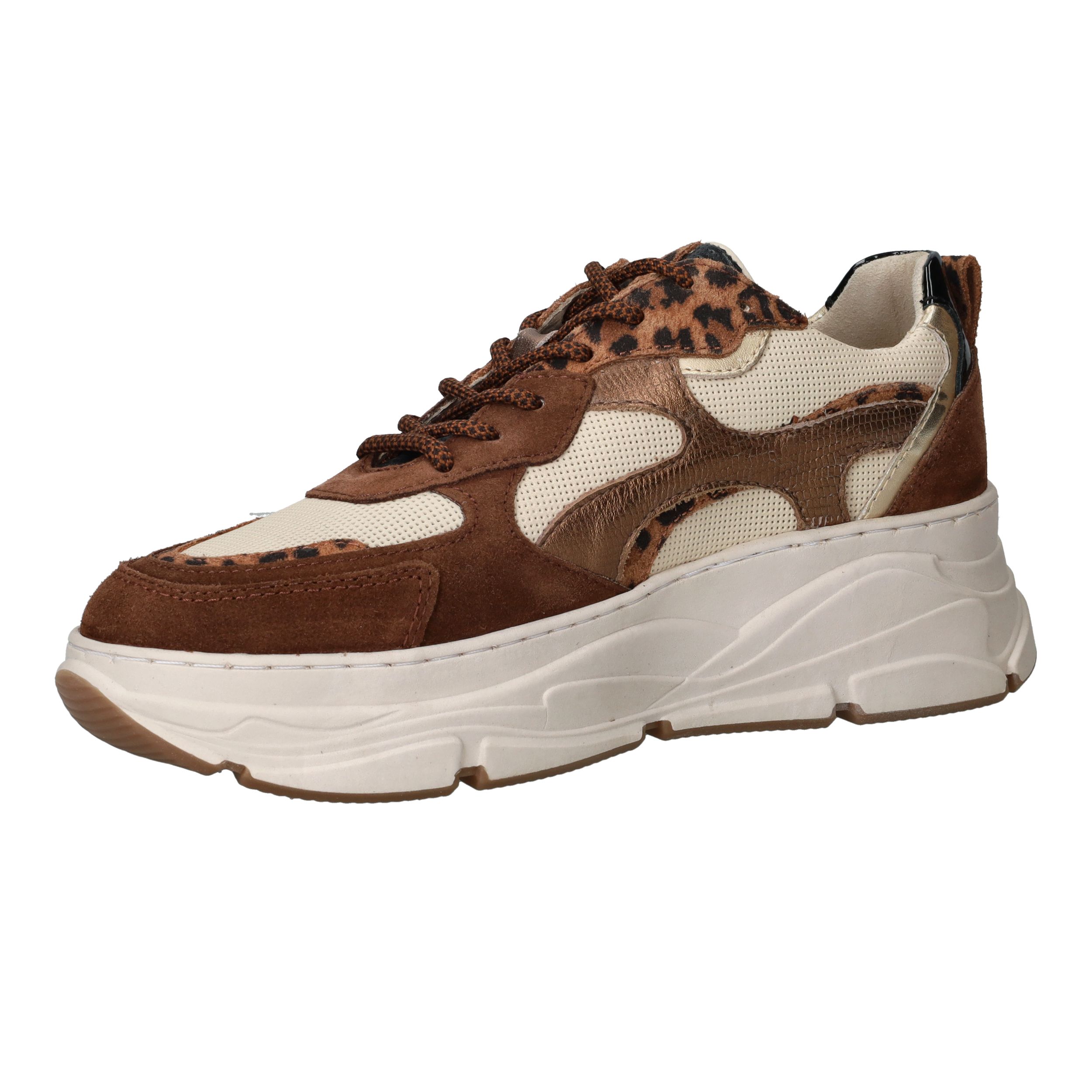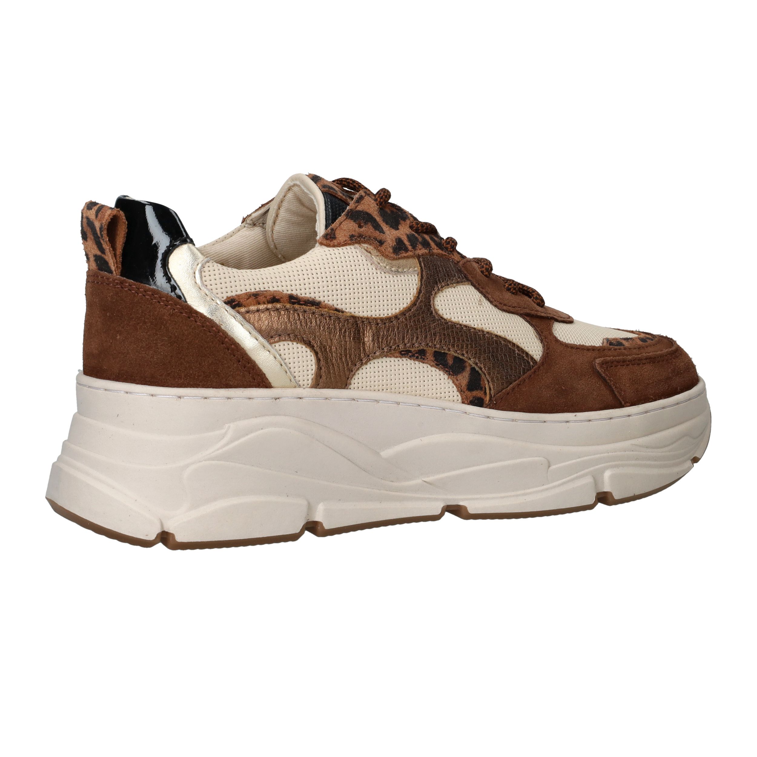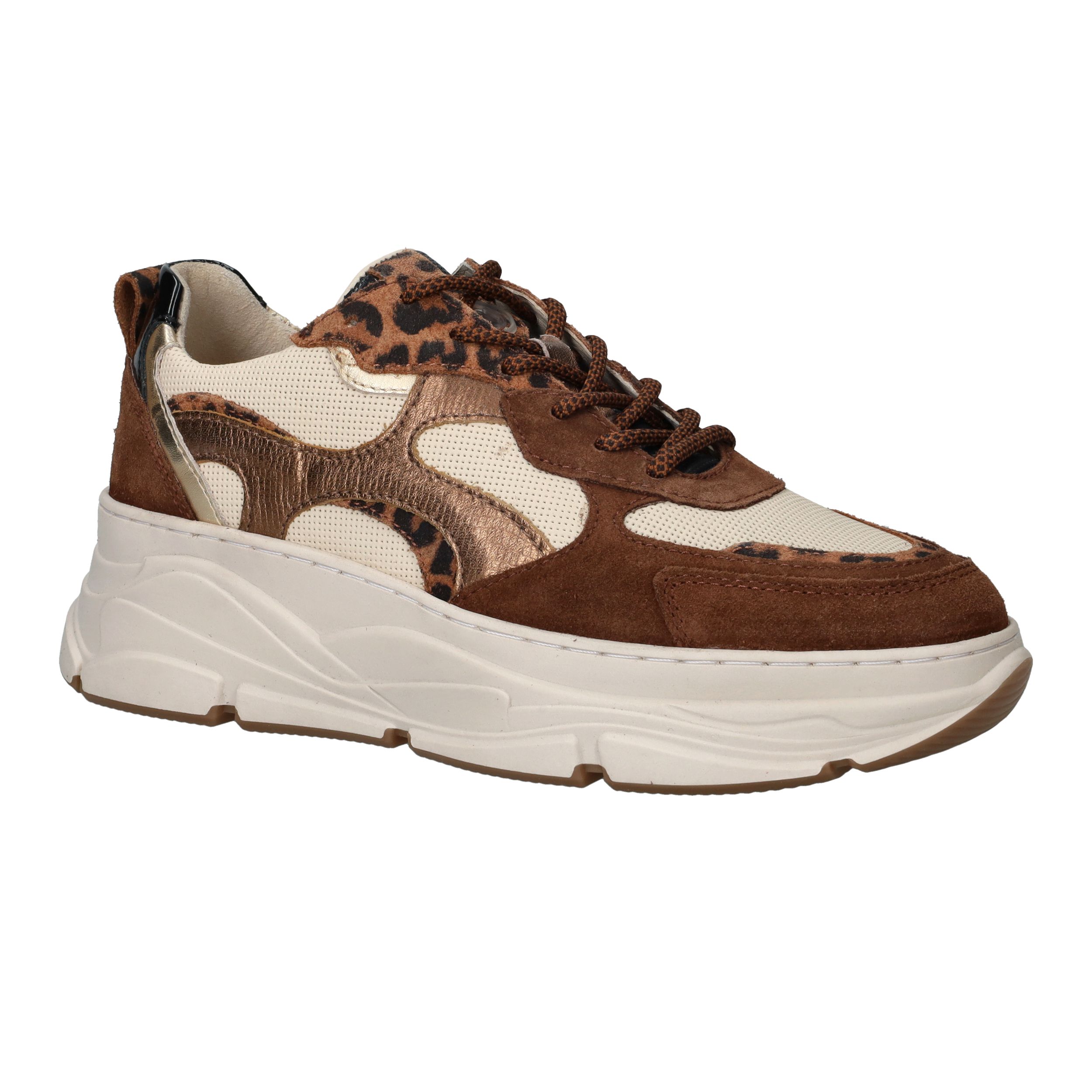 Deze trendy LOFF 1881 sneaker voor dames is een echte eyecatcher dankzij het gebruik van diverse materialen en de opvallende panterprint. Het bovenwerk bestaat uit een combinatie van suède, leer en metallic leer, wat zorgt voor een luxe en modieuze uitstraling. De voering van leer en textiel biedt comfort en ademend vermogen, waardoor de sneaker geschikt is voor dagelijks gebruik.