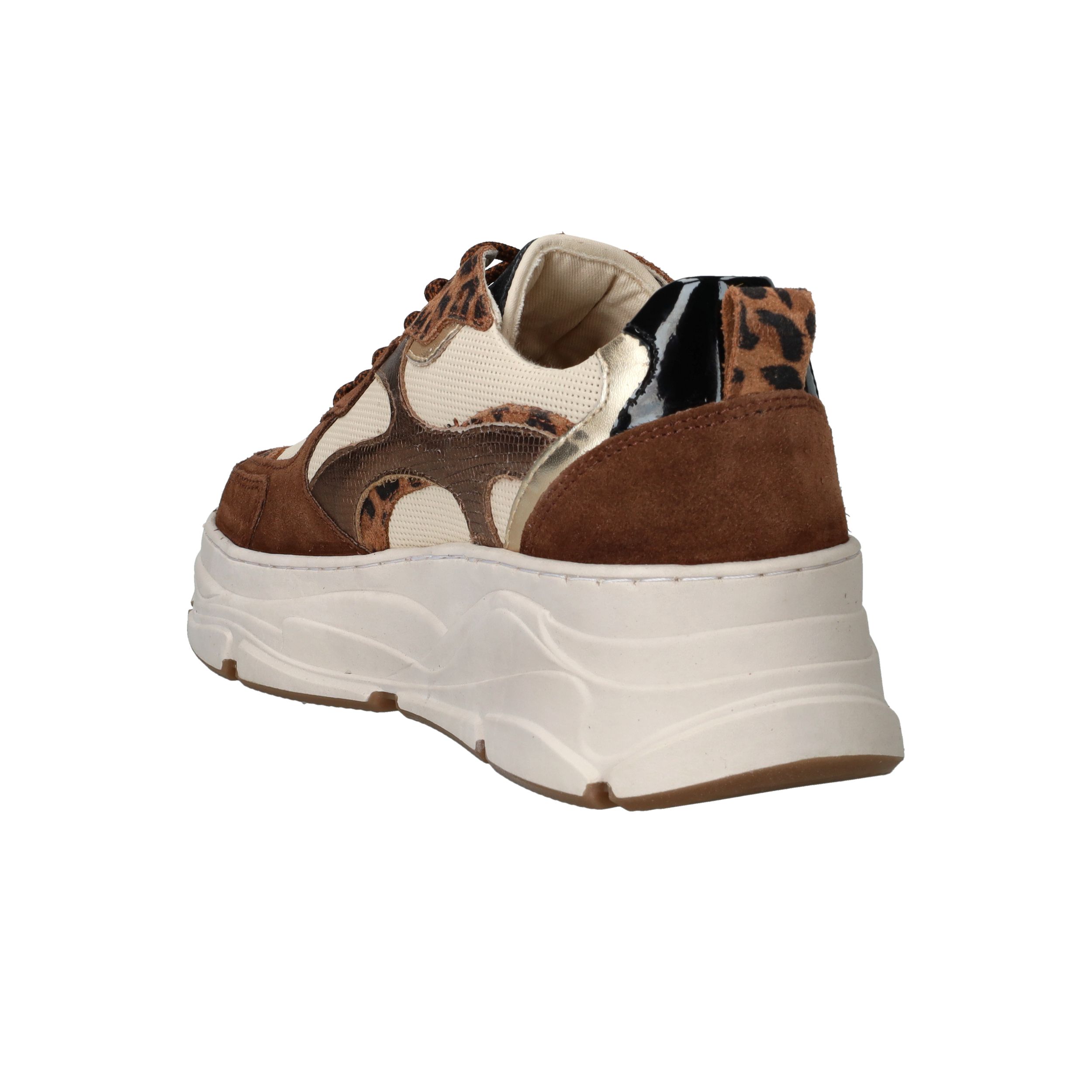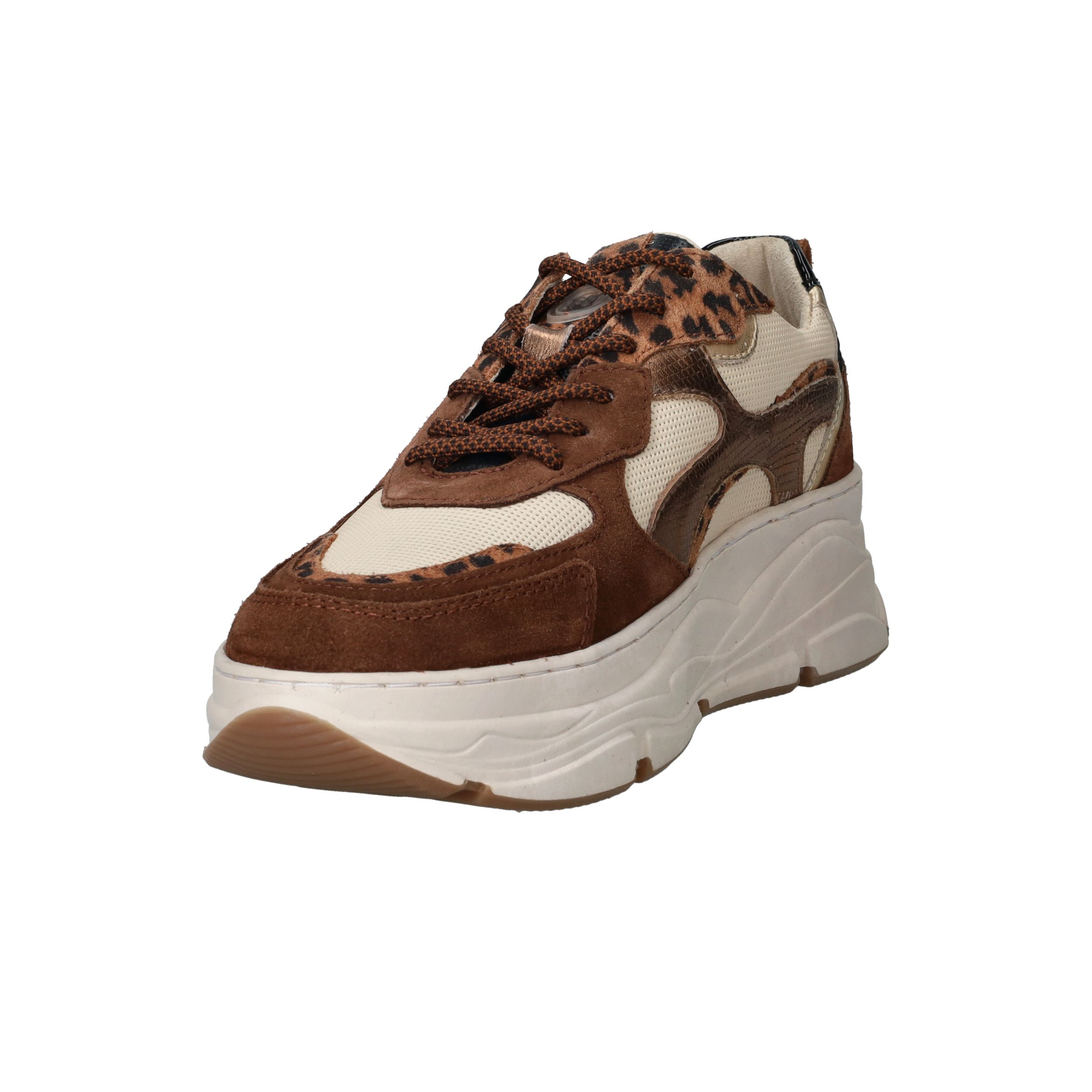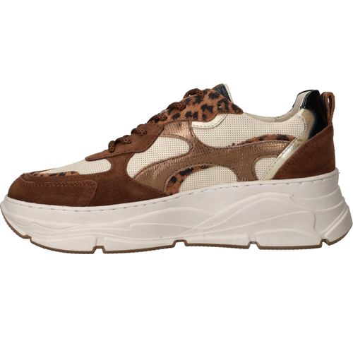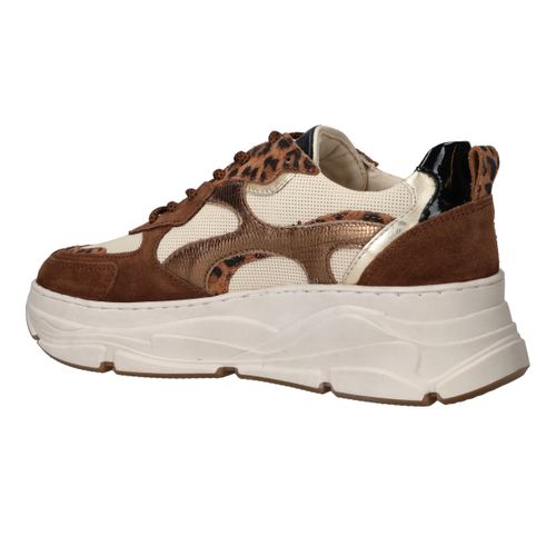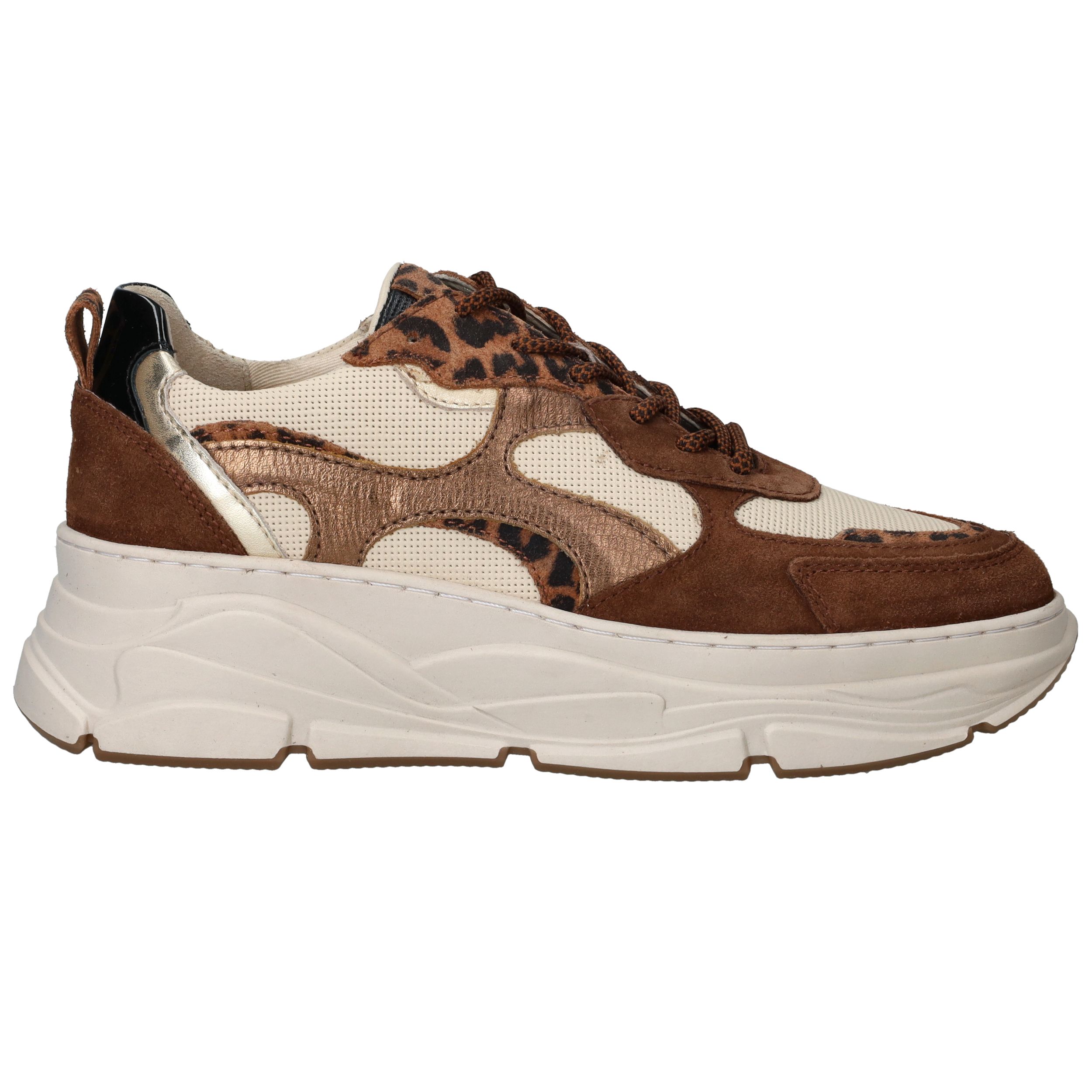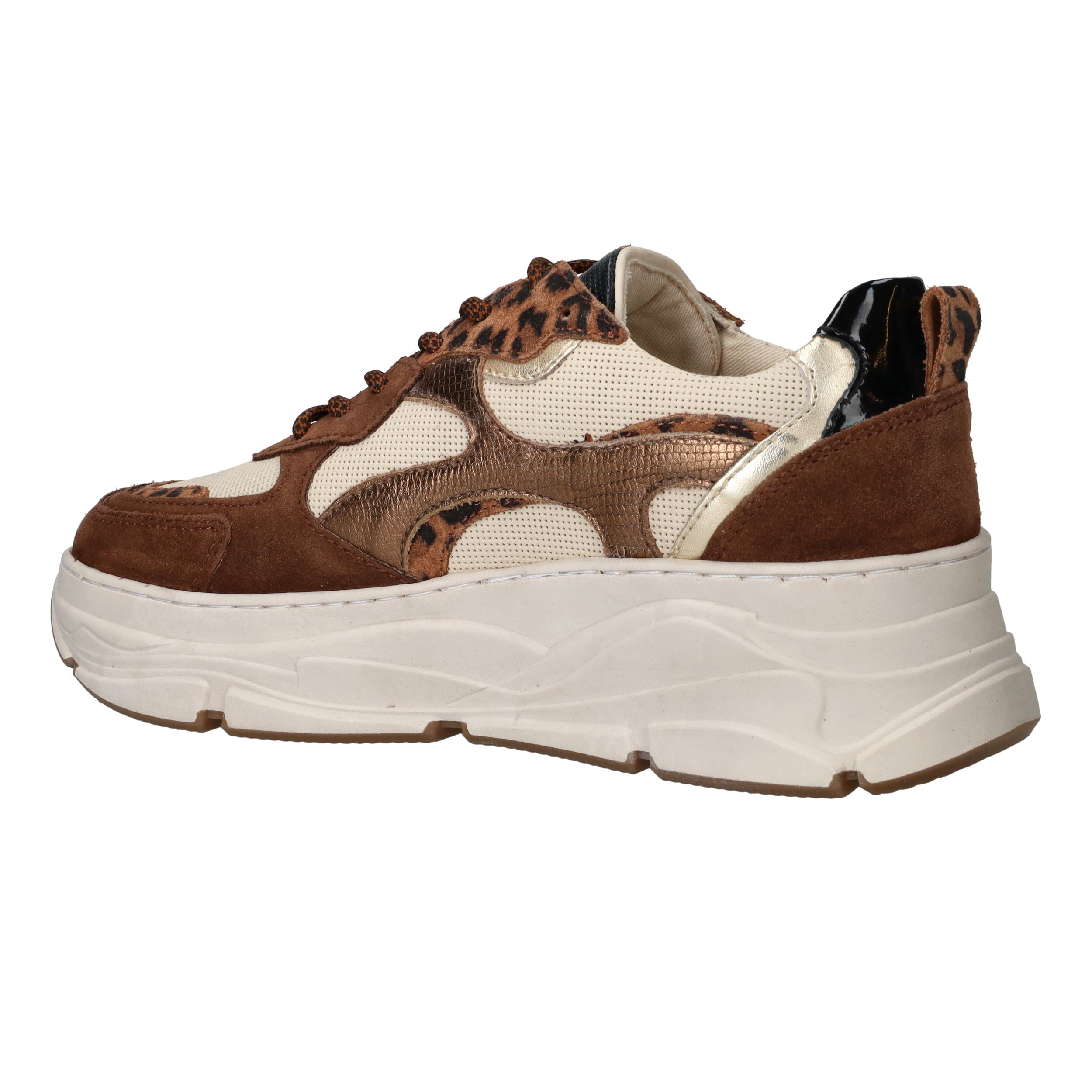 Deze trendy LOFF 1881 sneaker voor dames is een echte eyecatcher dankzij het gebruik van diverse materialen en de opvallende panterprint. Het bovenwerk bestaat uit een combinatie van suède, leer en metallic leer, wat zorgt voor een luxe en modieuze uitstraling. De voering van leer en textiel biedt comfort en ademend vermogen, waardoor de sneaker geschikt is voor dagelijks gebruik.