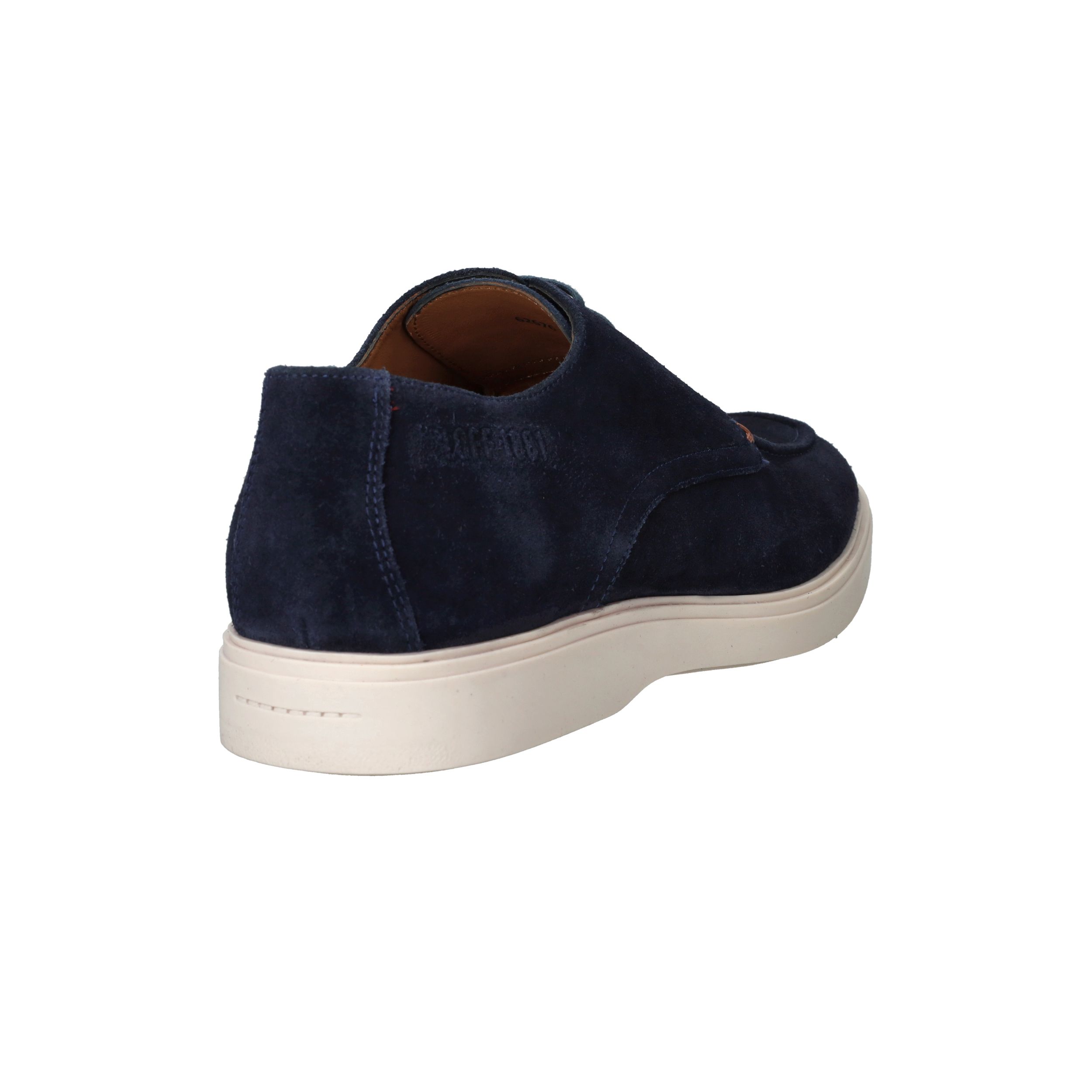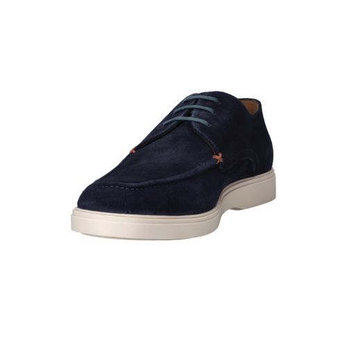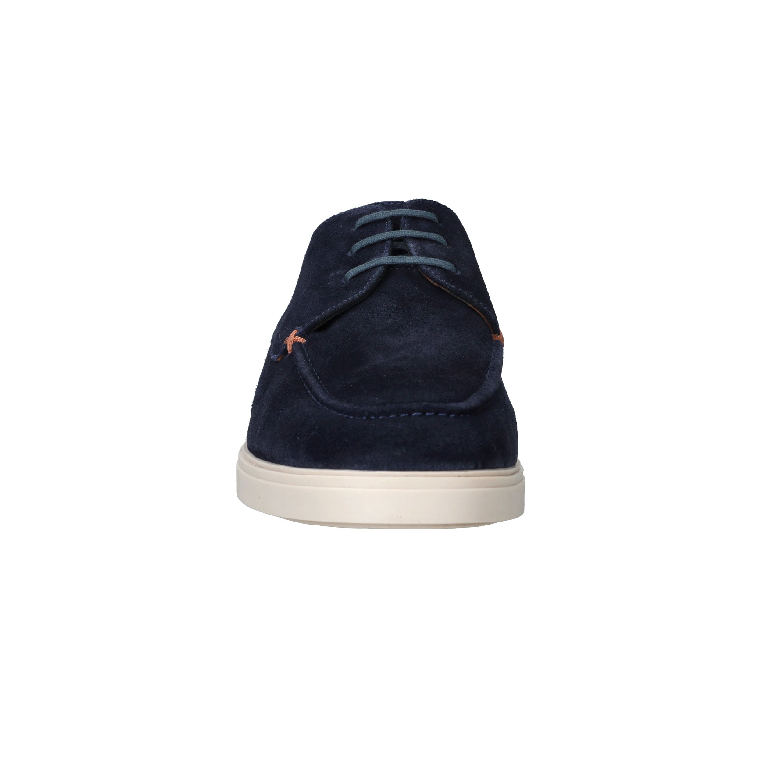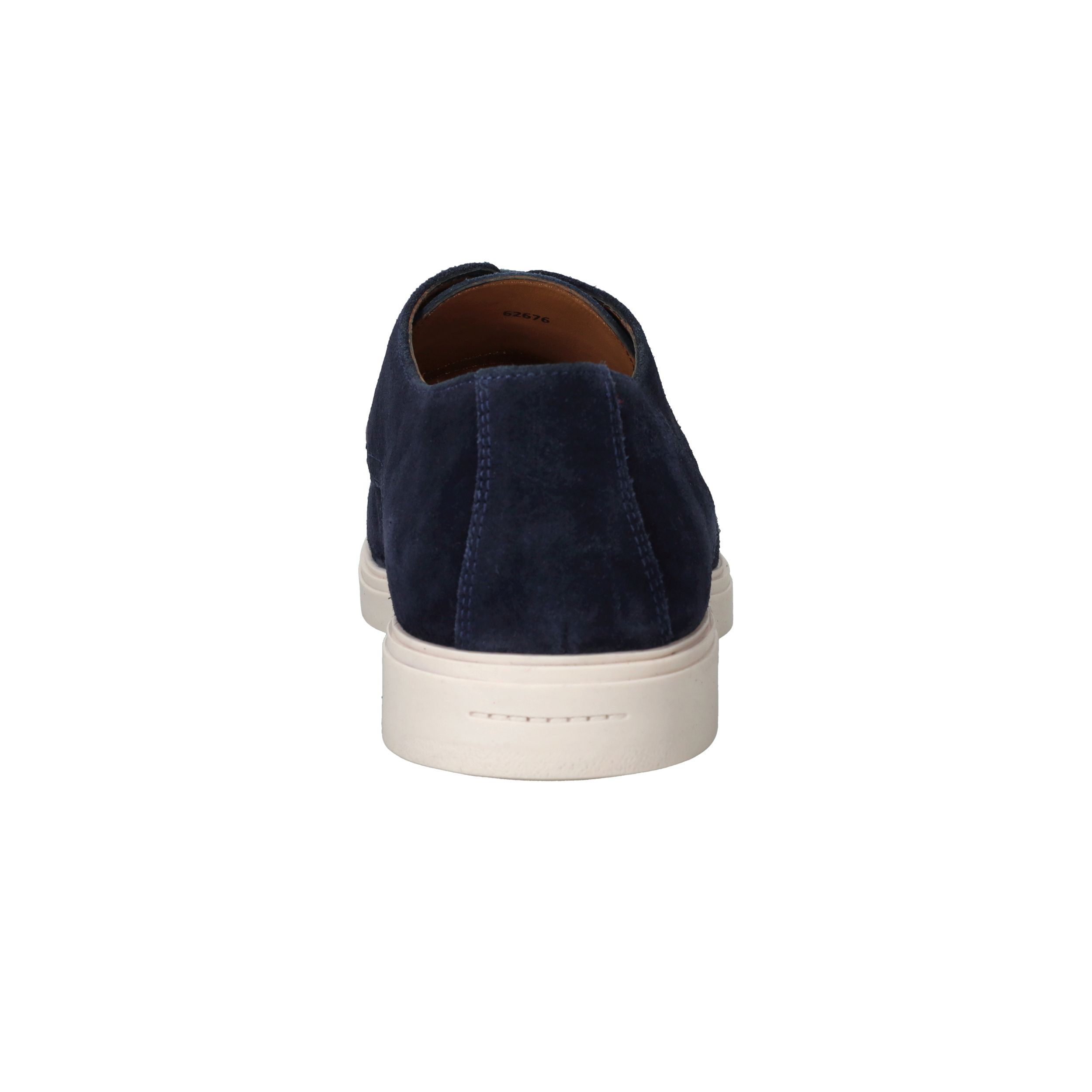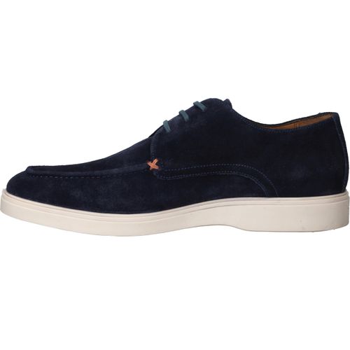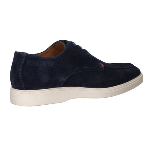 Mooie donkerblauwe LOFF 1881 veterschoen voor heren. De suède herenschoen is prachtig afgewerkt en heeft een leuk taupe kleur stiksel accent.