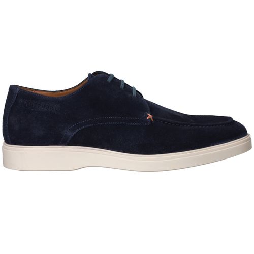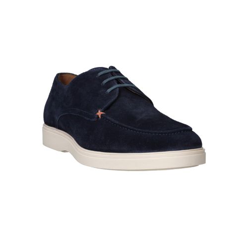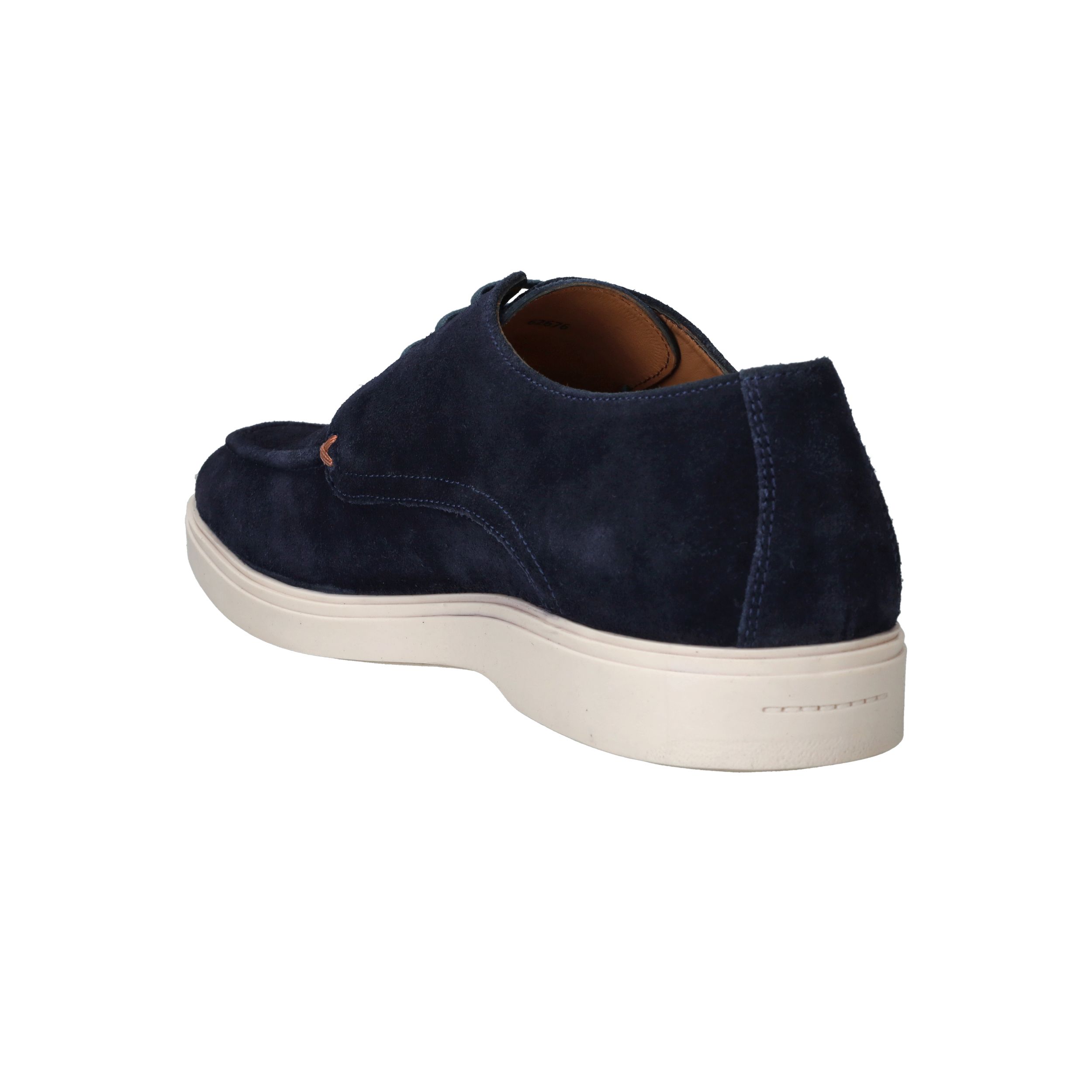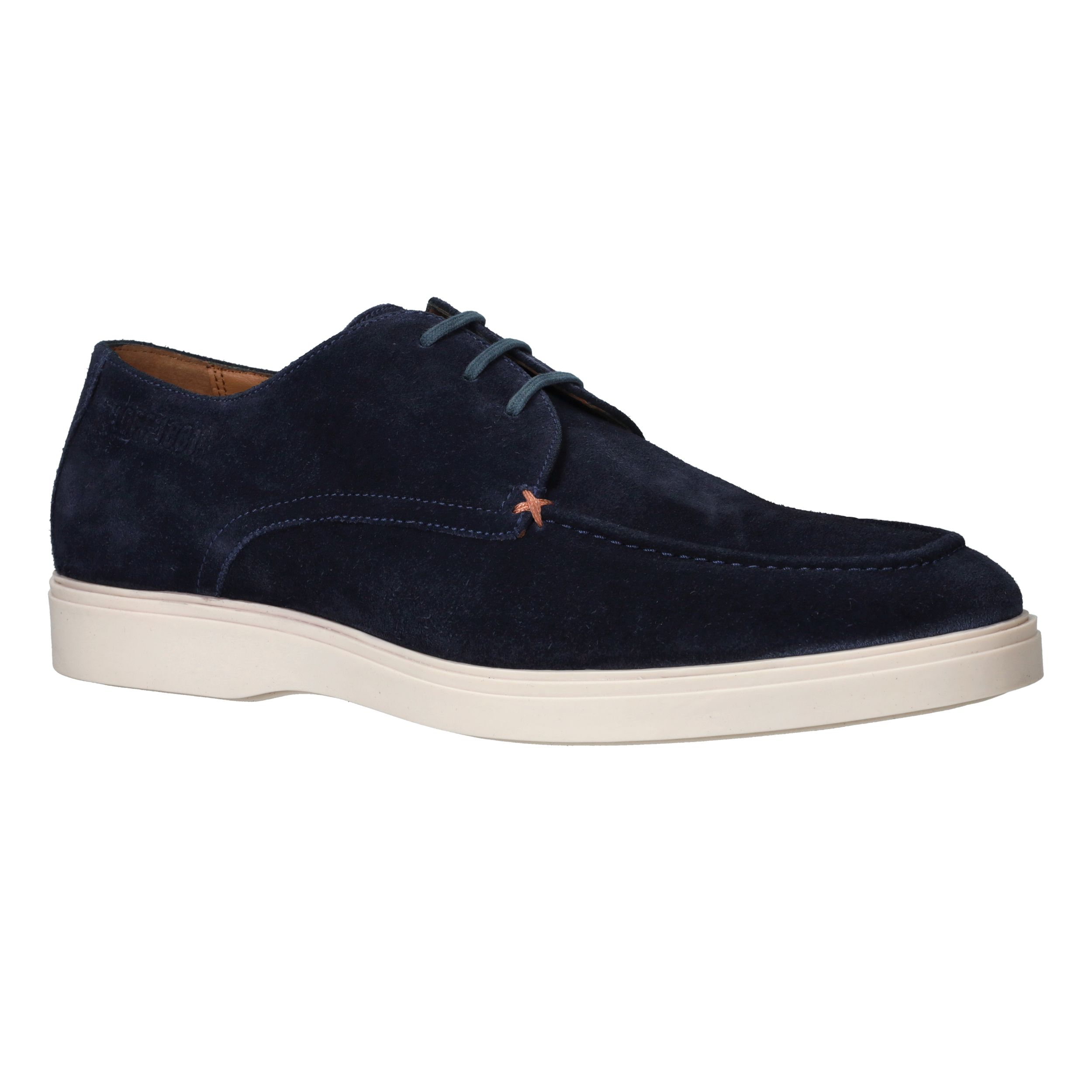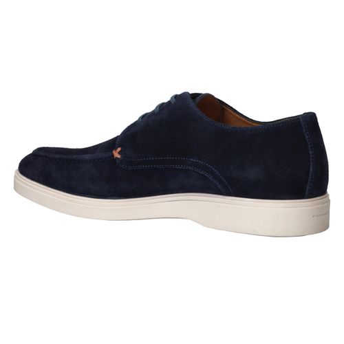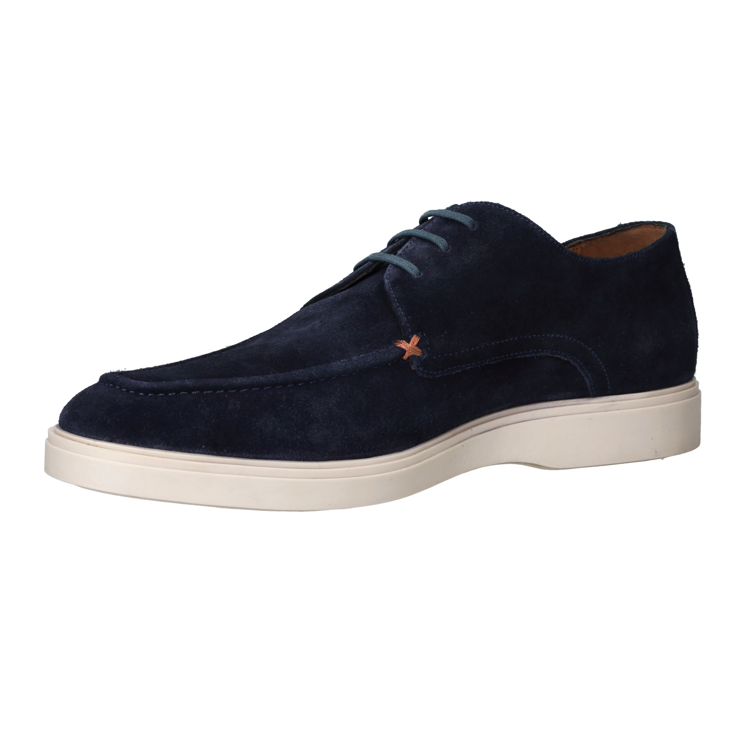 Mooie donkerblauwe LOFF 1881 veterschoen voor heren. De suède herenschoen is prachtig afgewerkt en heeft een leuk taupe kleur stiksel accent.