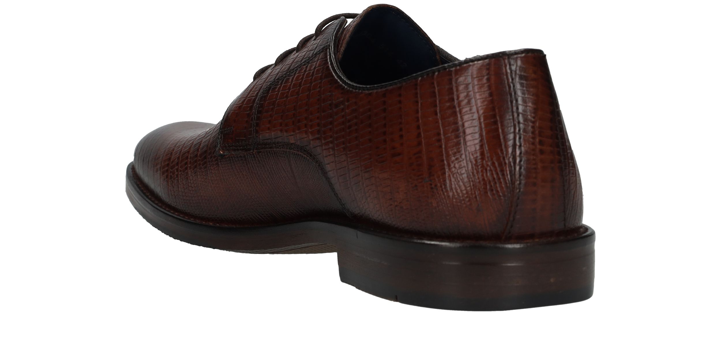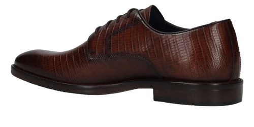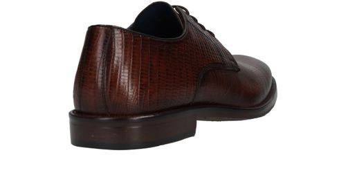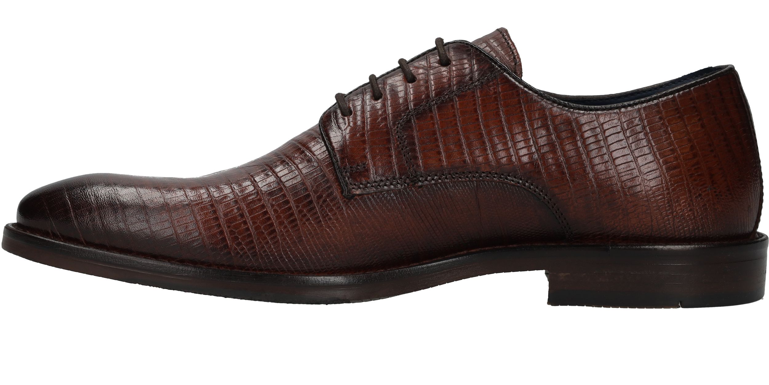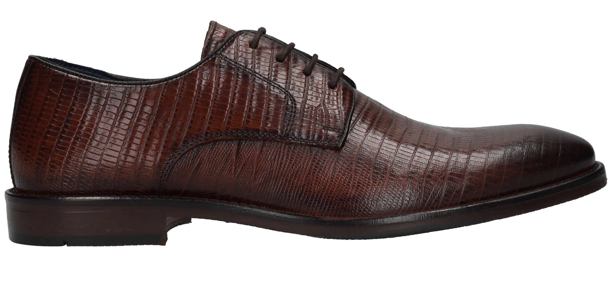 Deze LOFF 1881 veterschoen voor heren heeft een trendy design. De veterschoen is gemaakt leer met een dierenprint en heeft een donkerbruine kleur.