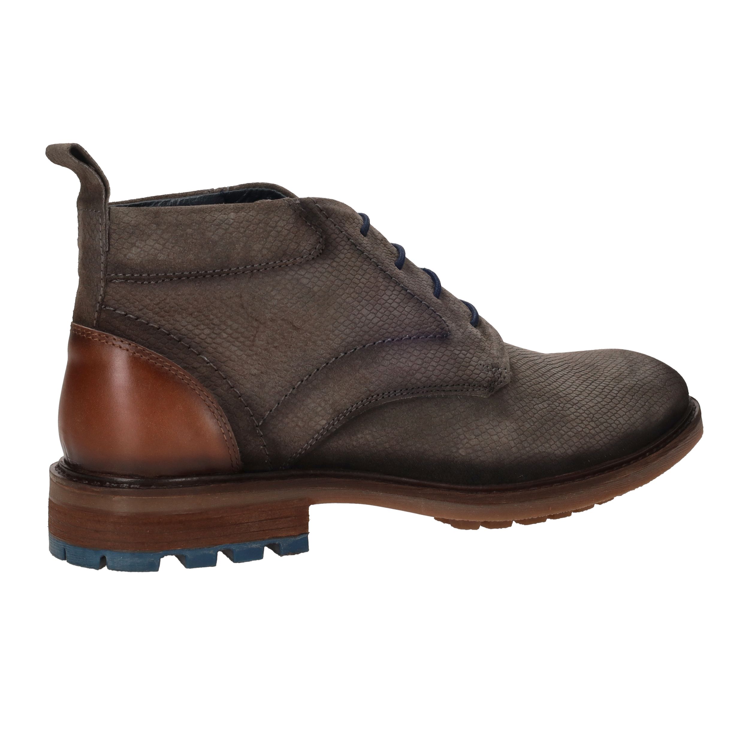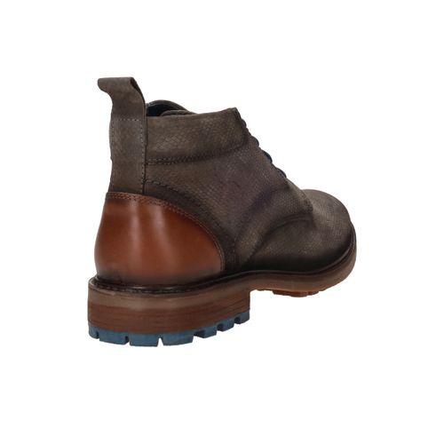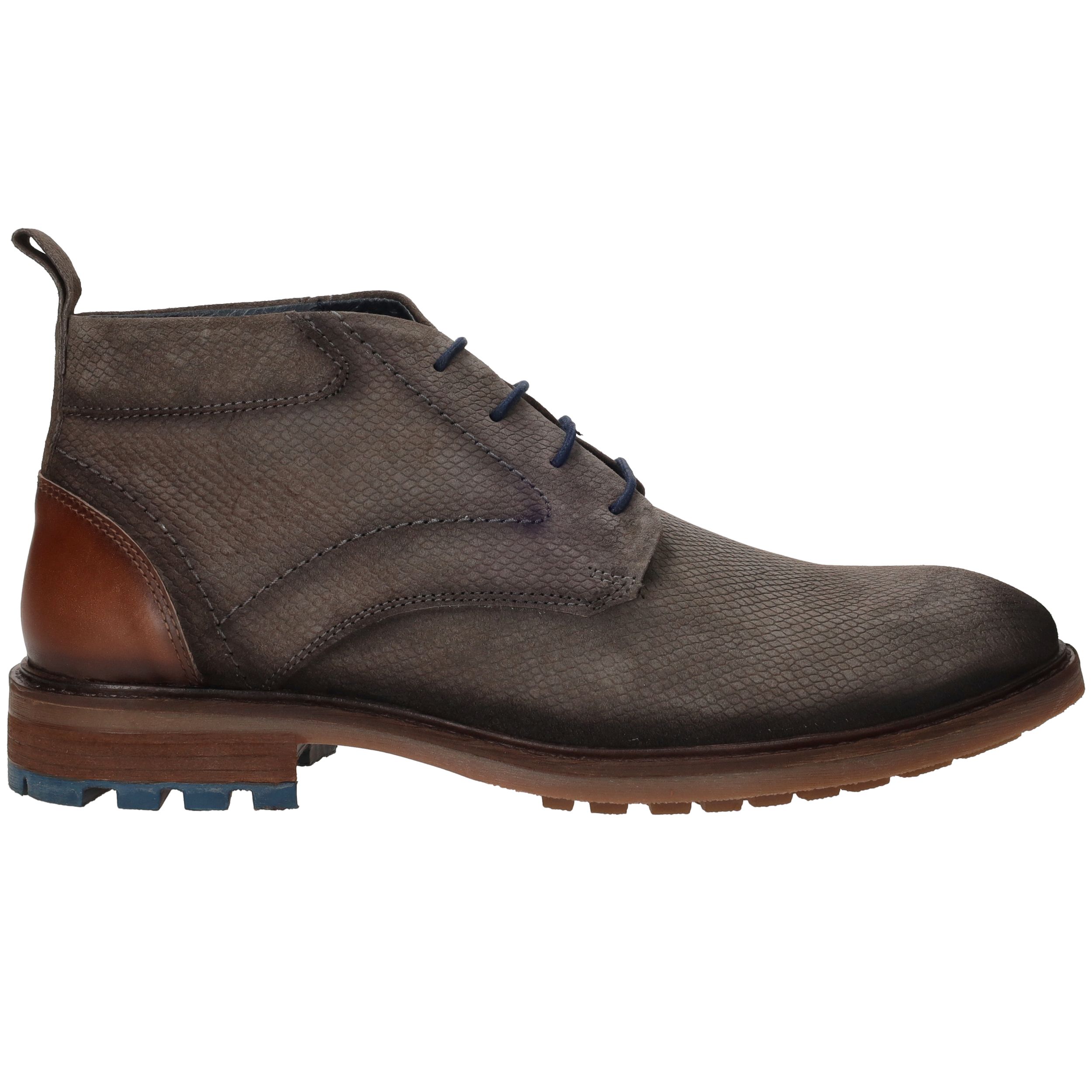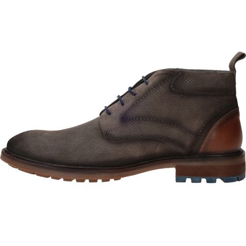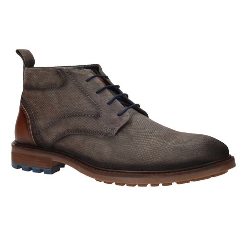 Deze LOFF 1881 veterboot voor heren heeft een prachtige grijze kleur met mooi kleurverloop! De schoen is gemaakt van leer en is afgewerkt met cognac details en een speels blauw randje in de zool.