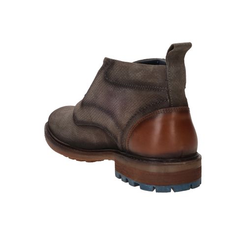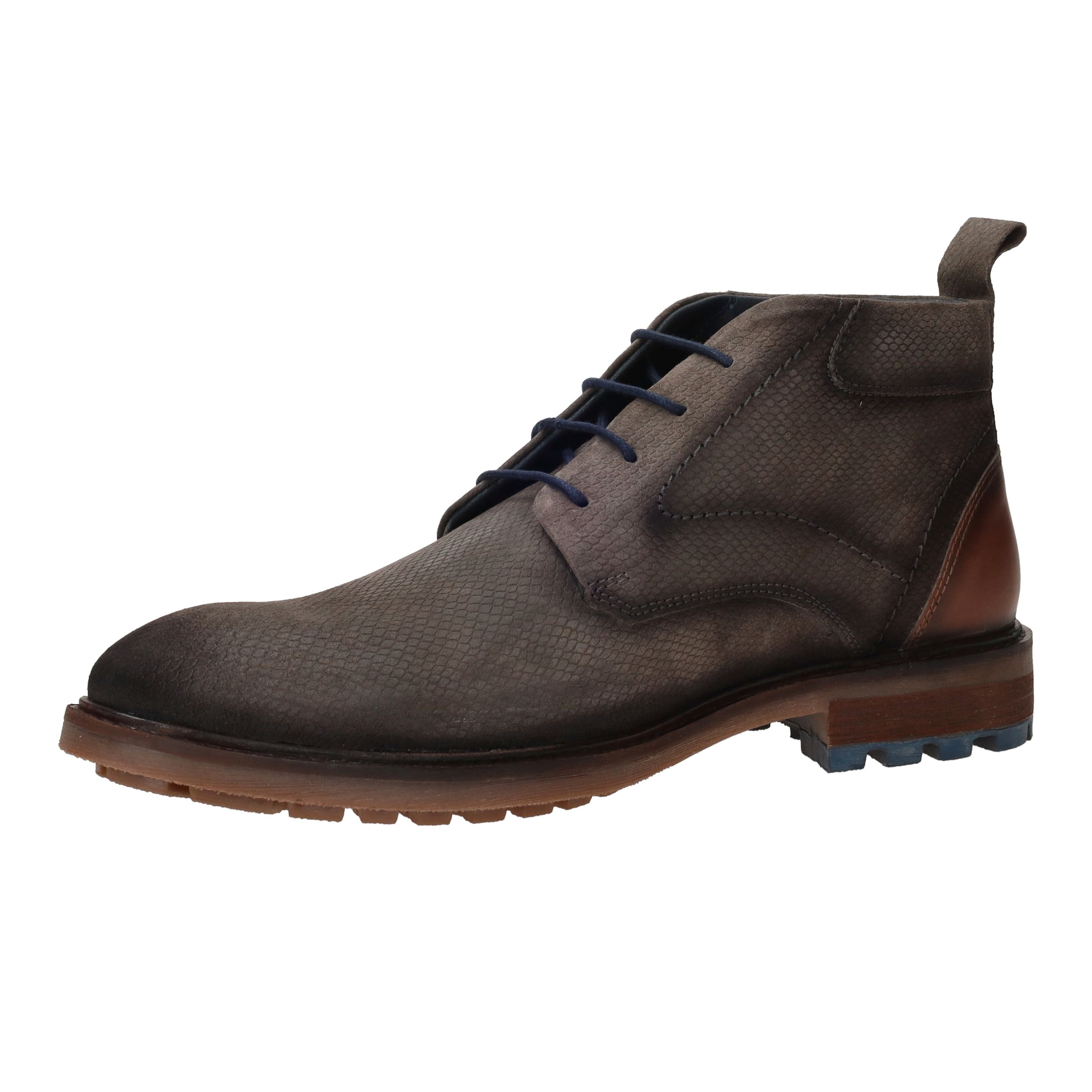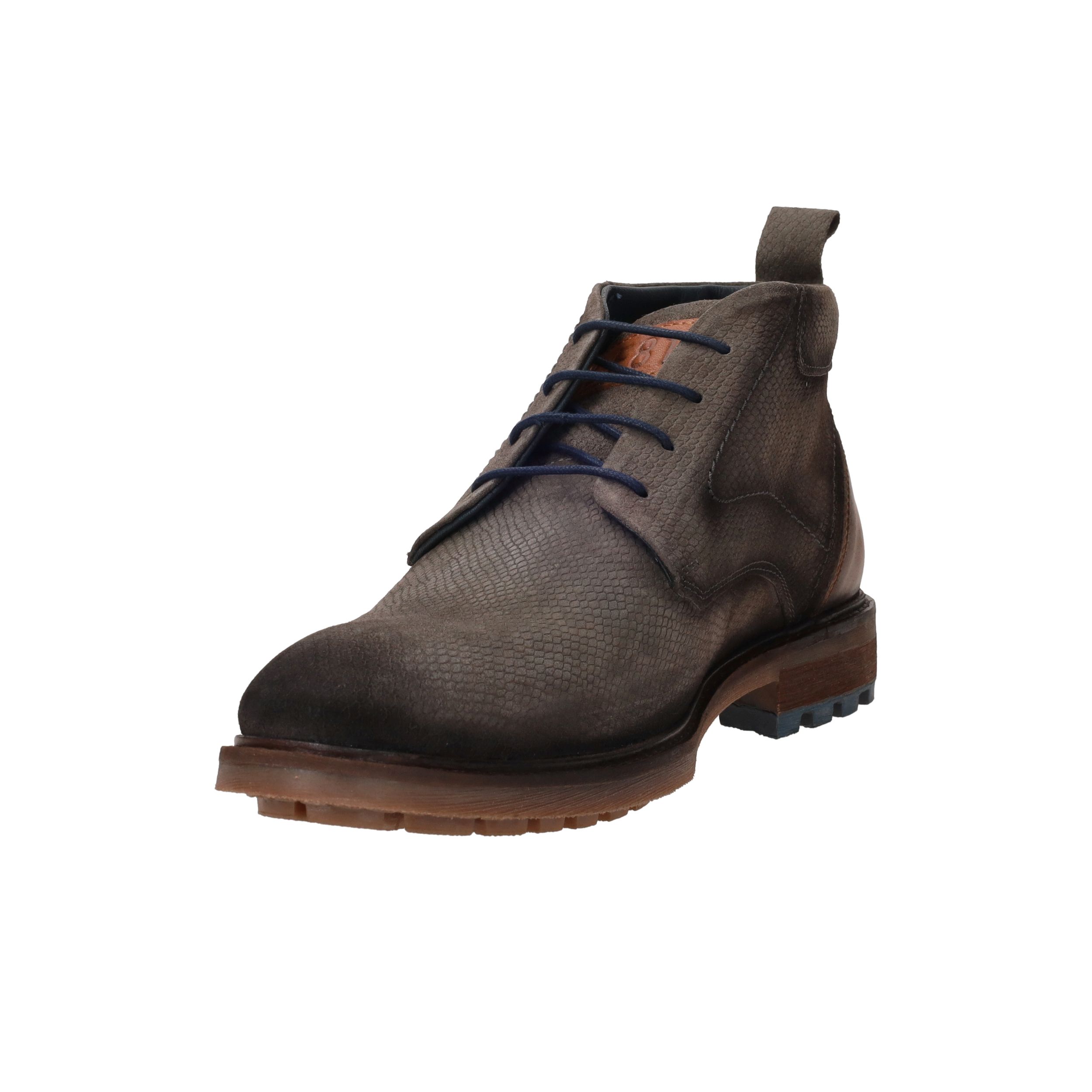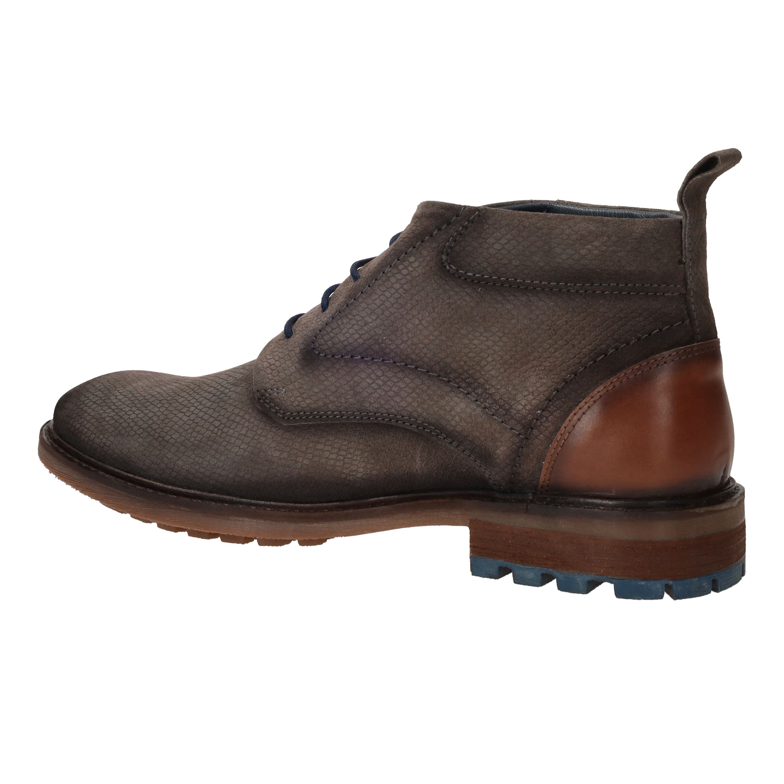 Deze LOFF 1881 veterboot voor heren heeft een prachtige grijze kleur met mooi kleurverloop! De schoen is gemaakt van leer en is afgewerkt met cognac details en een speels blauw randje in de zool.