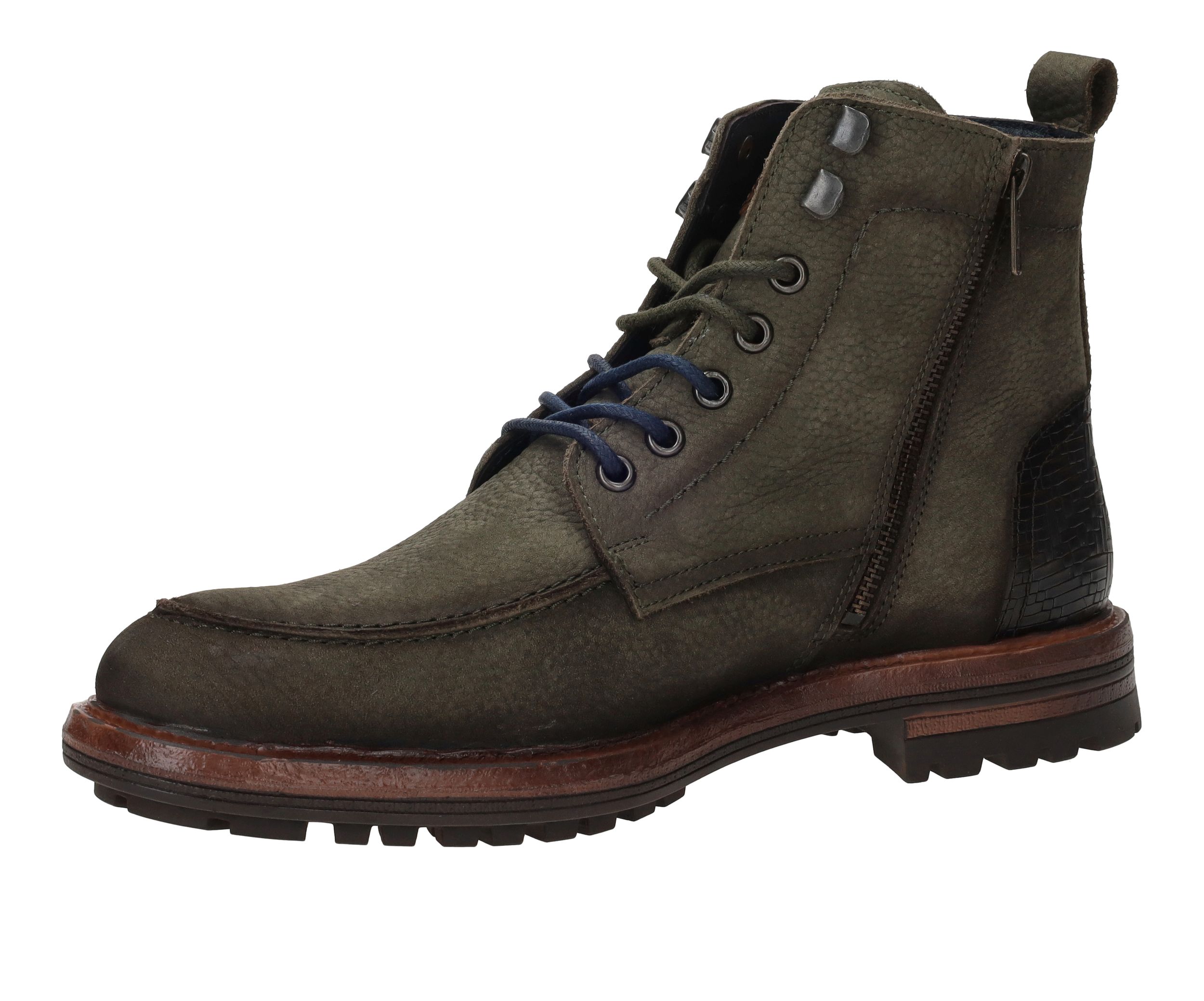Trendy veterboots voor heren van LOFF 1881. De mosgroene herenboots zijn gemaakt van leer en kun je casual dragen bij een jeans of gekleed bij een pak.