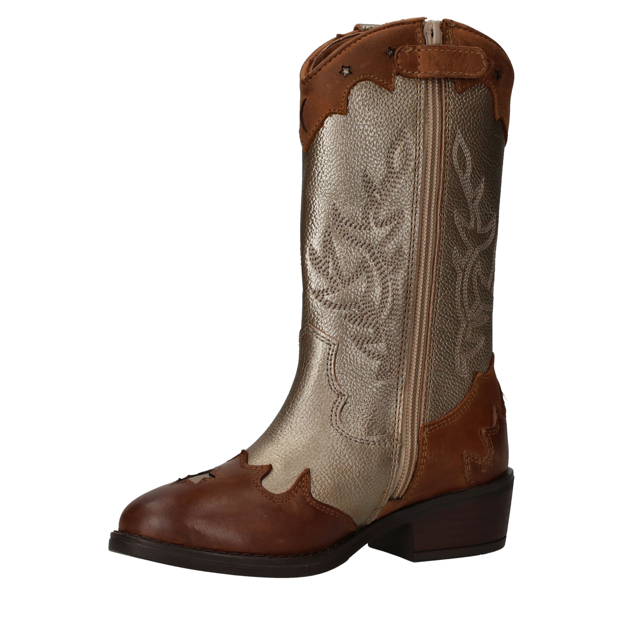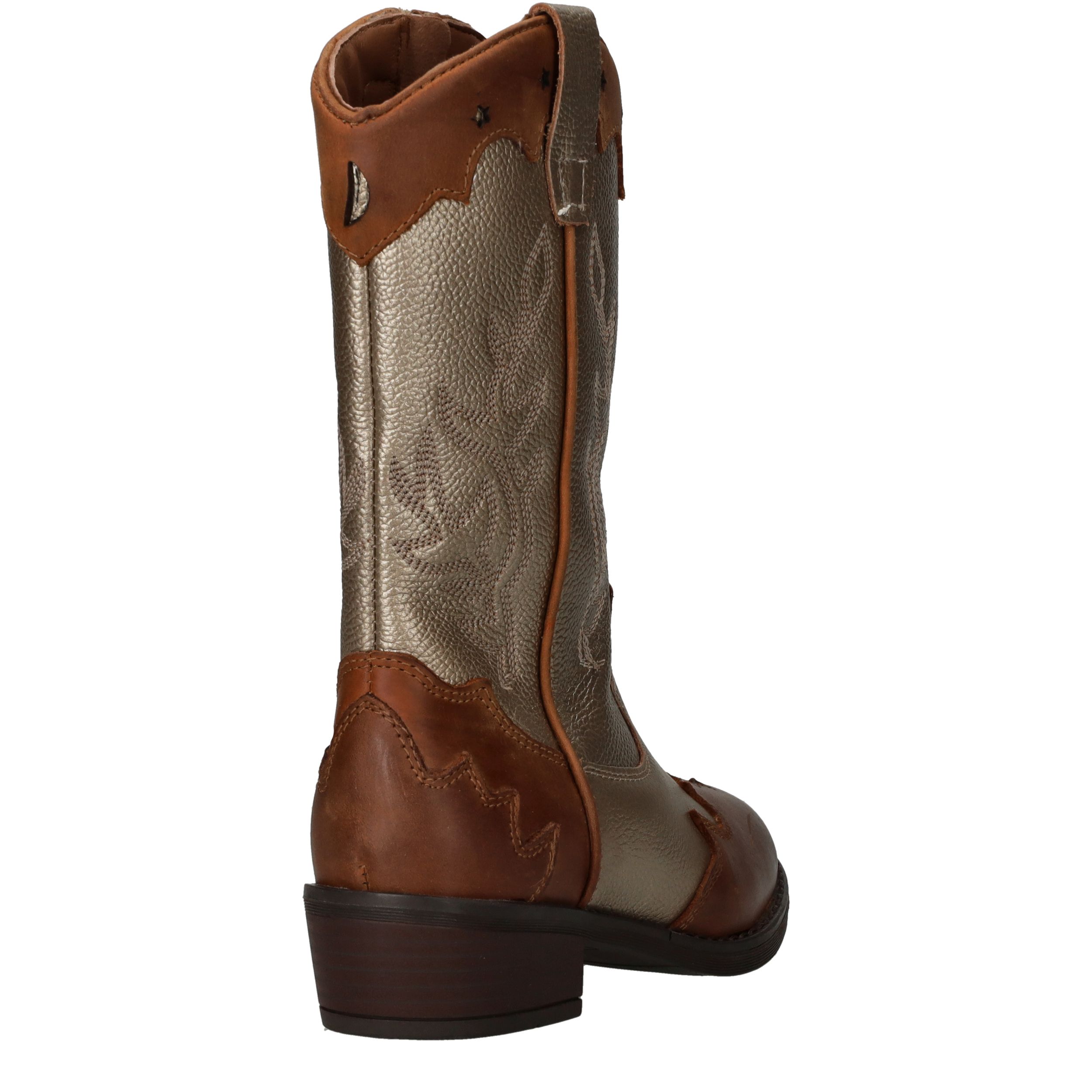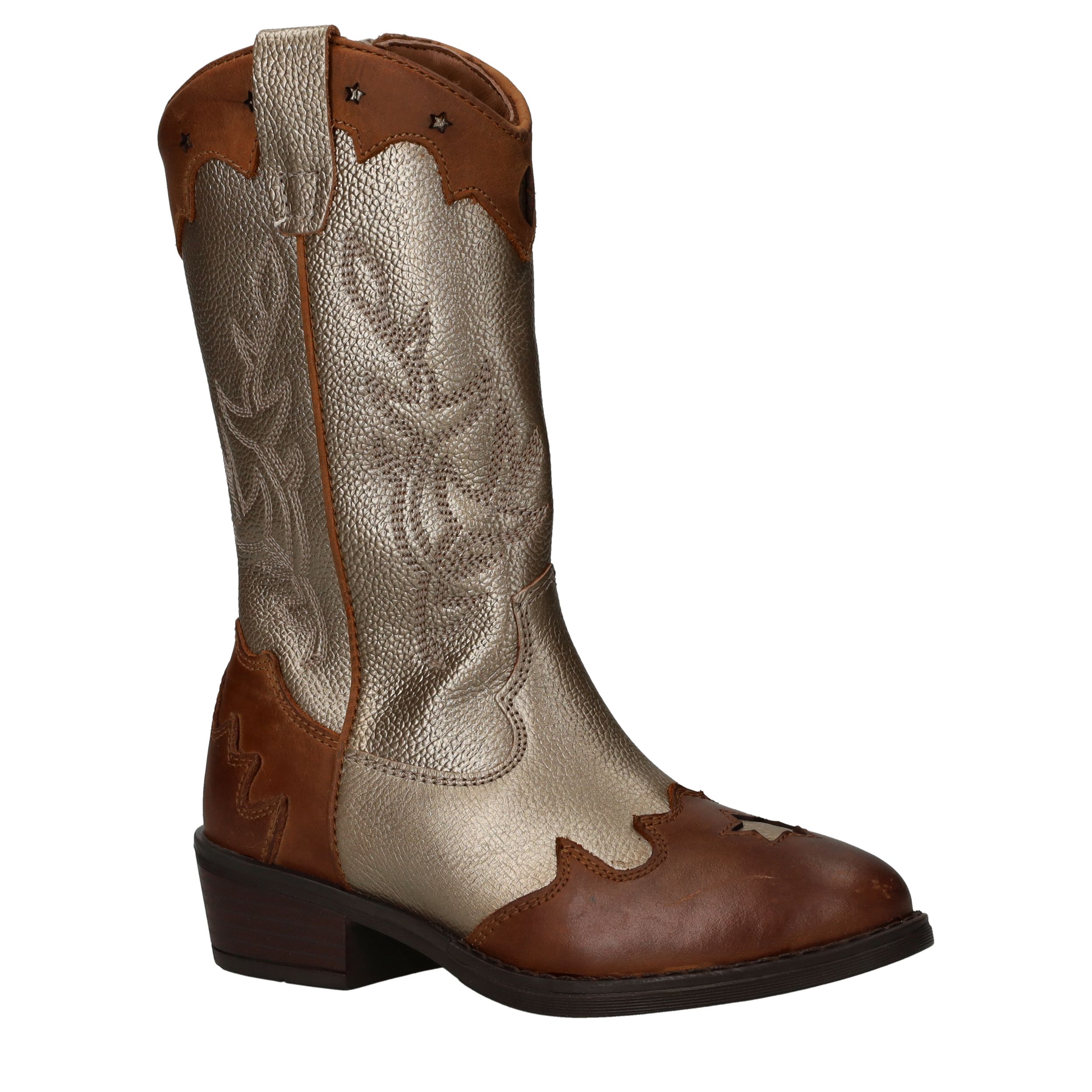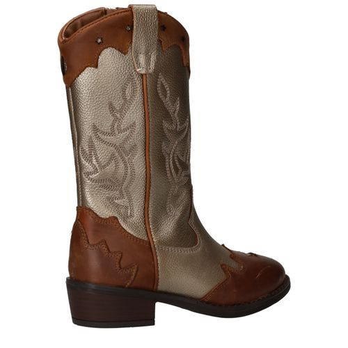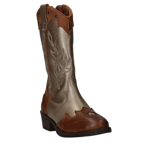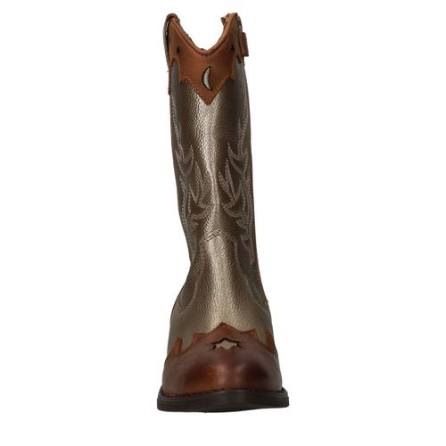 Deze LOFF 1881 westernlaars is een echte blikvanger voor stoere meiden. Uitgevoerd in goud metallic leer met bruine accenten en voorzien van een uitneembaar voetbed voor extra draagcomfort.