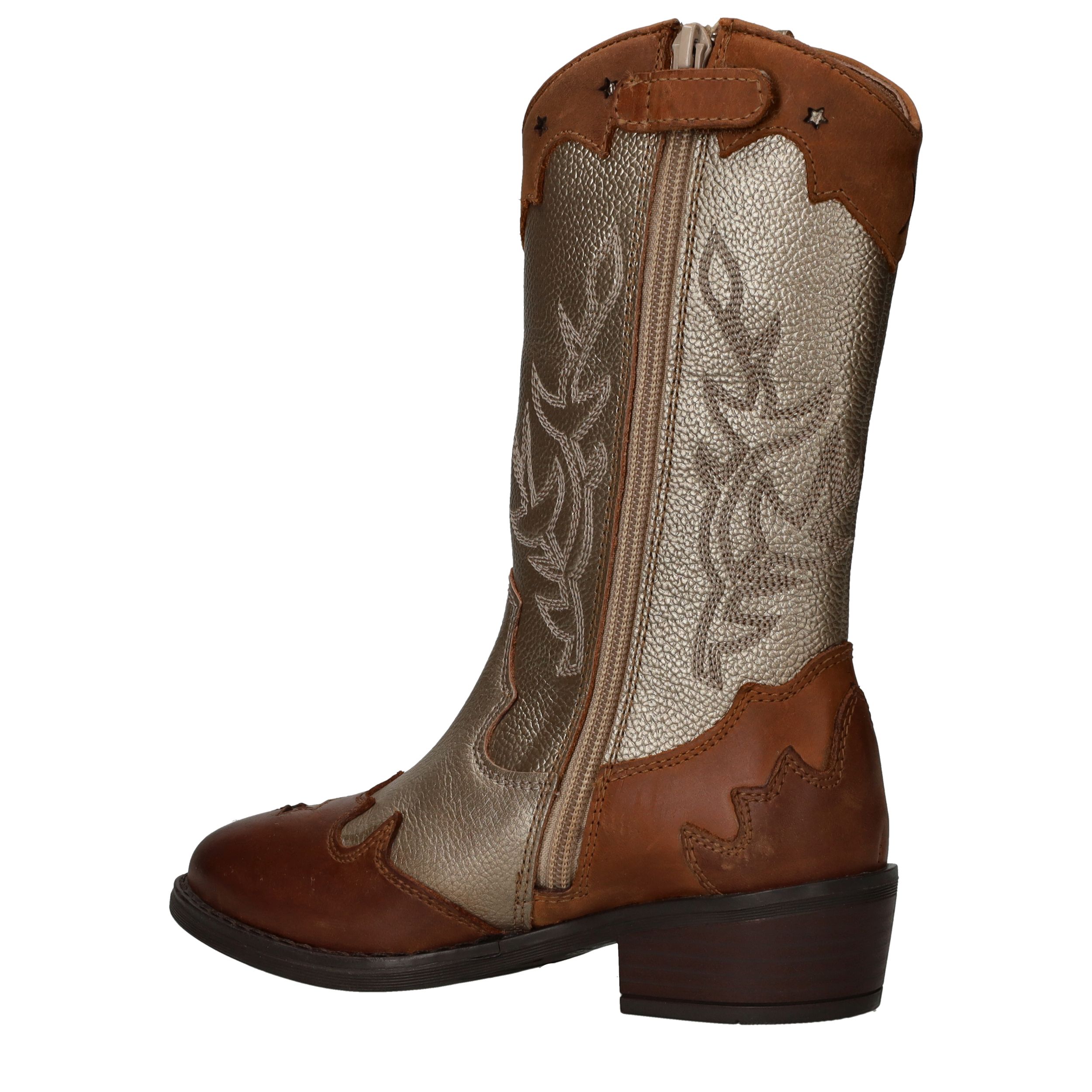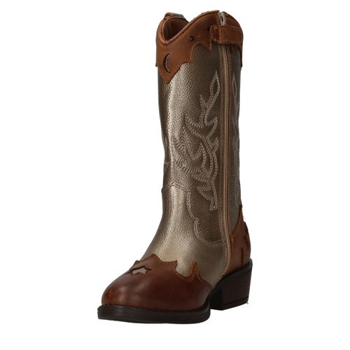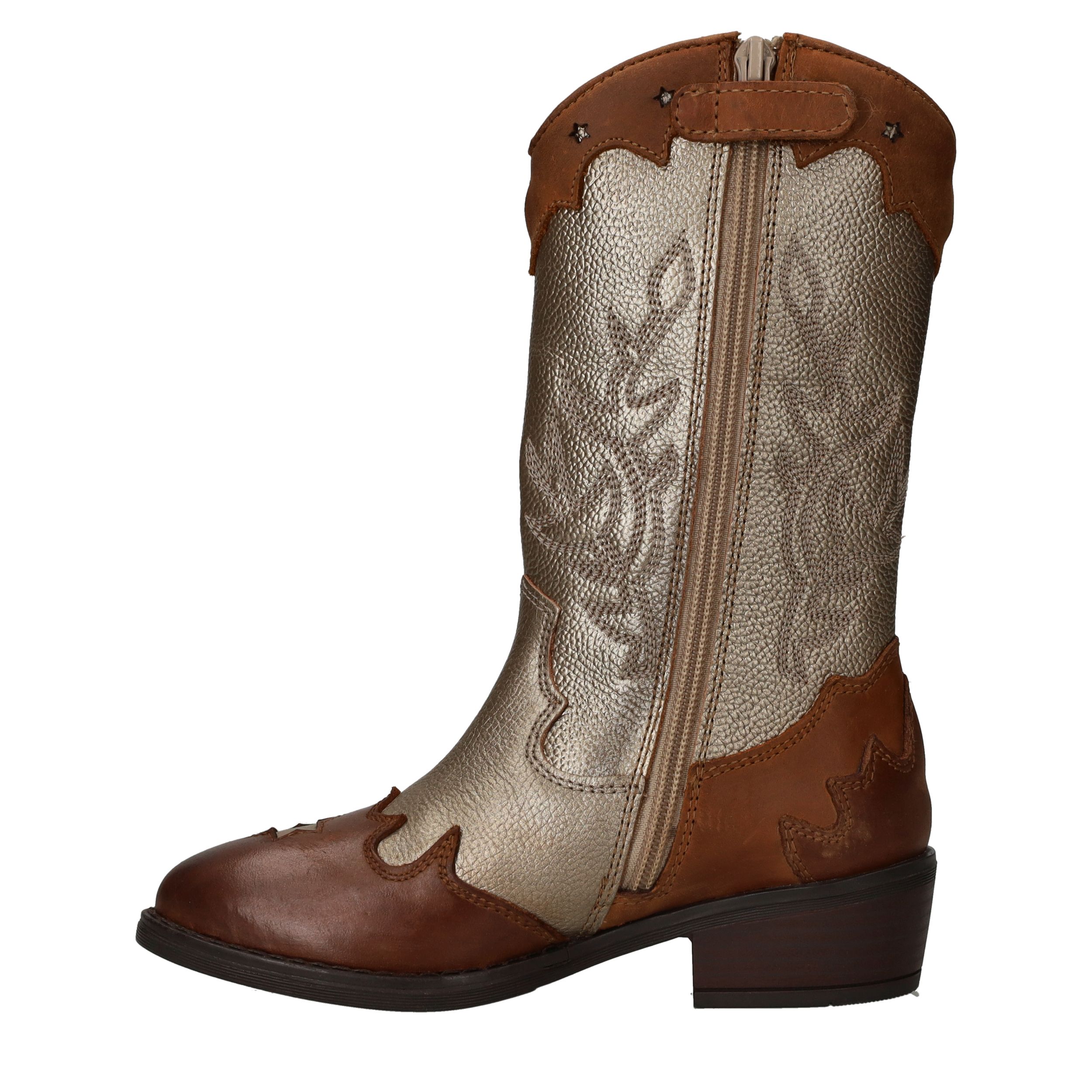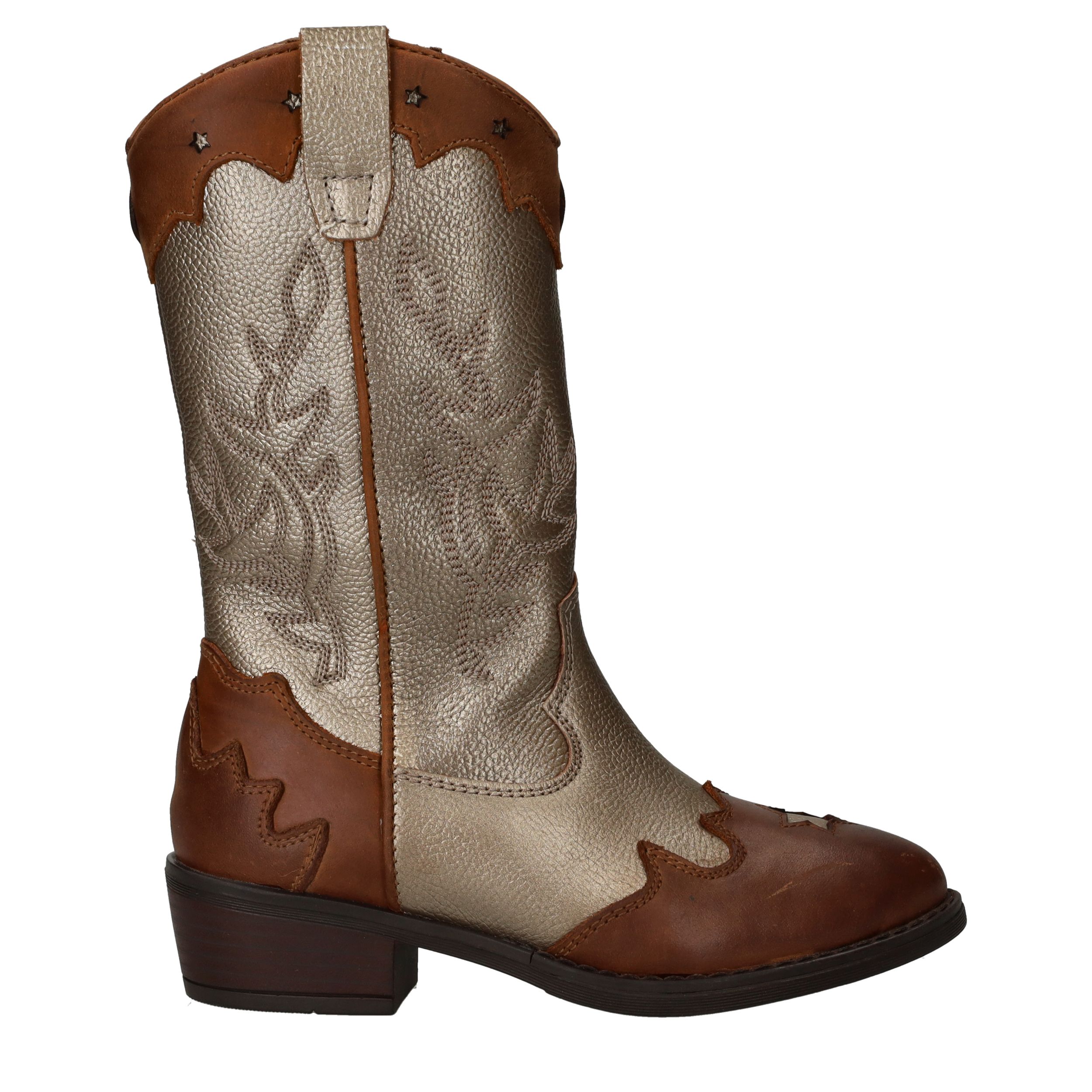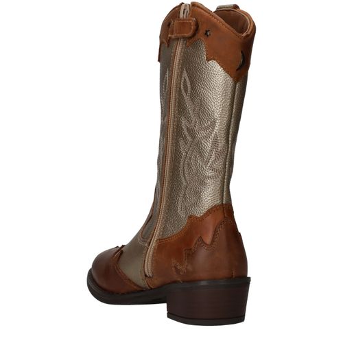 Deze LOFF 1881 westernlaars is een echte blikvanger voor stoere meiden. Uitgevoerd in goud metallic leer met bruine accenten en voorzien van een uitneembaar voetbed voor extra draagcomfort.