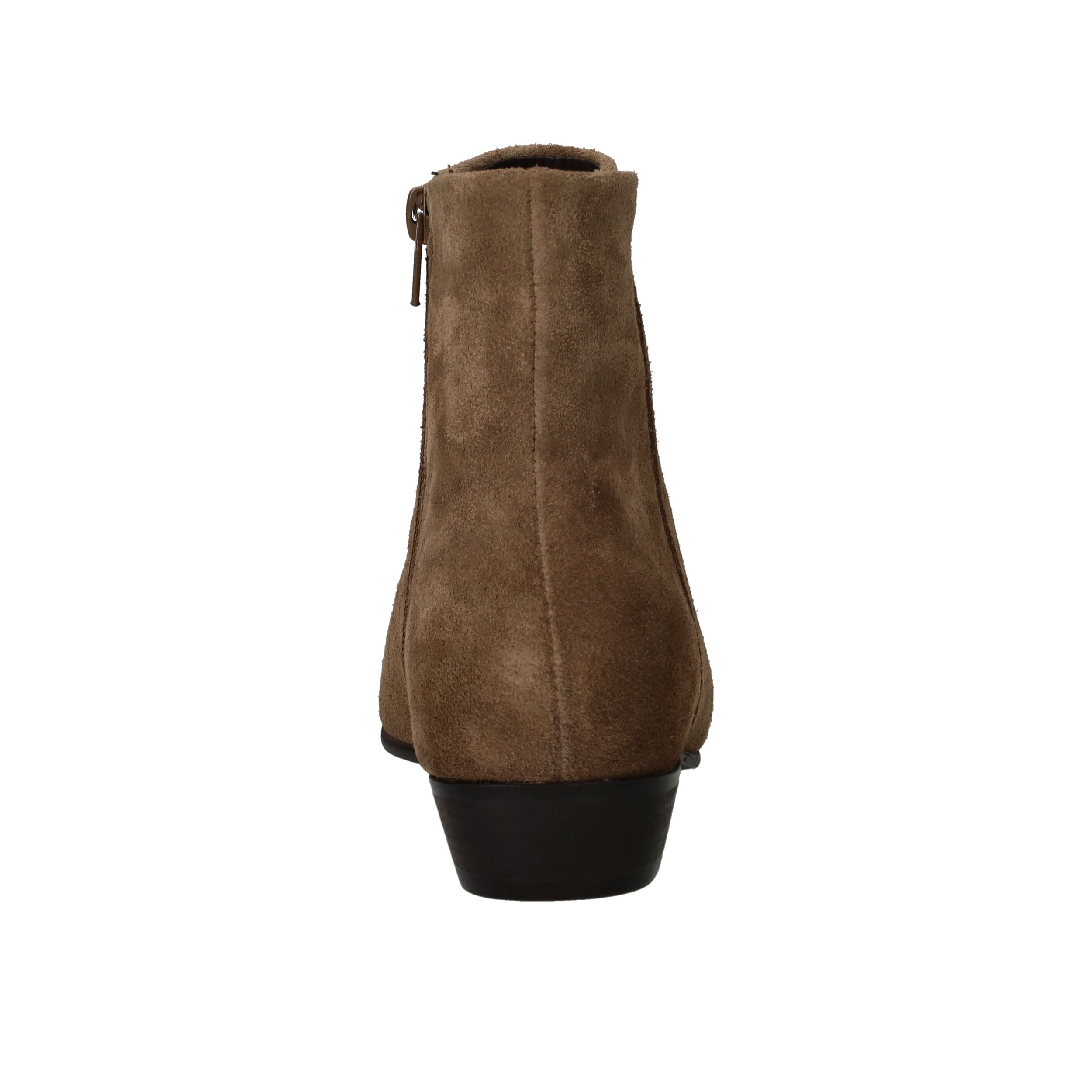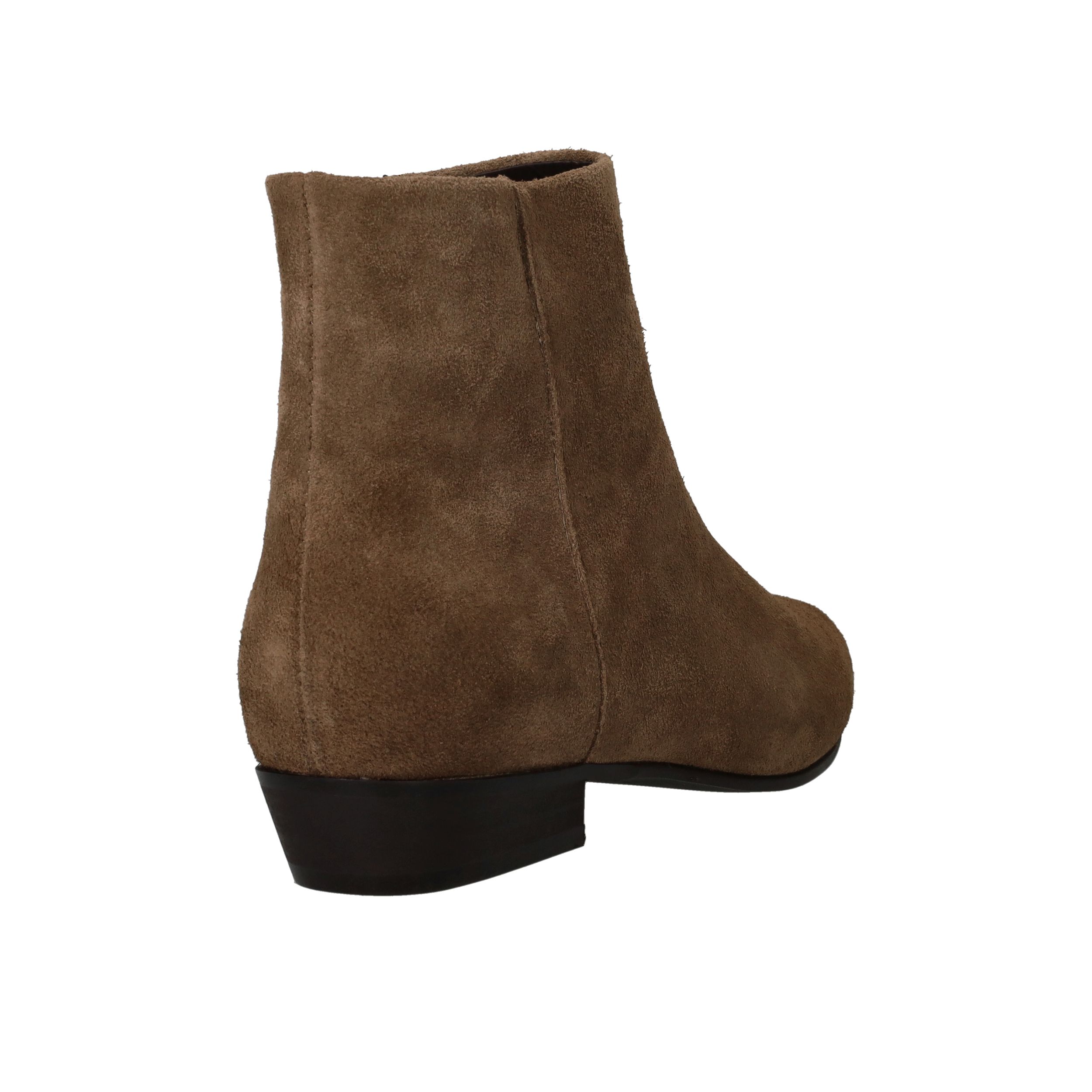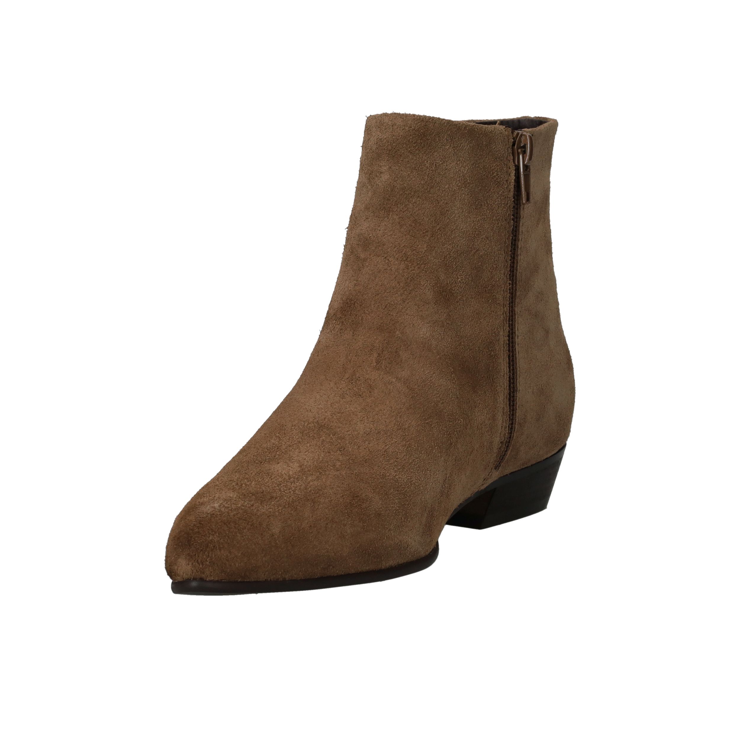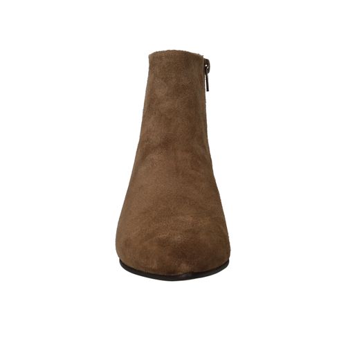 Deze stijlvolle LOFF1881 enkellaars voor dames combineert een minimalistisch design met tijdloze elegantie. Het bovenwerk is volledig gemaakt van hoogwaardig suède, wat zorgt voor een luxe en verfijnde uitstraling. De zachte textielen voering biedt extra draagcomfort, waardoor deze enkellaars ideaal is voor dagelijks gebruik. De neutrale bruine kleur maakt de schoen veelzijdig en eenvoudig te combineren met diverse outfits.