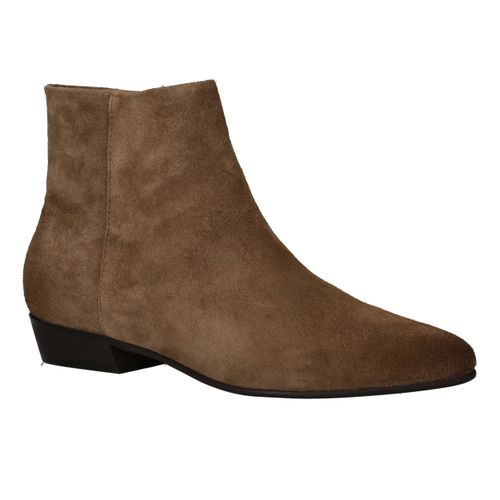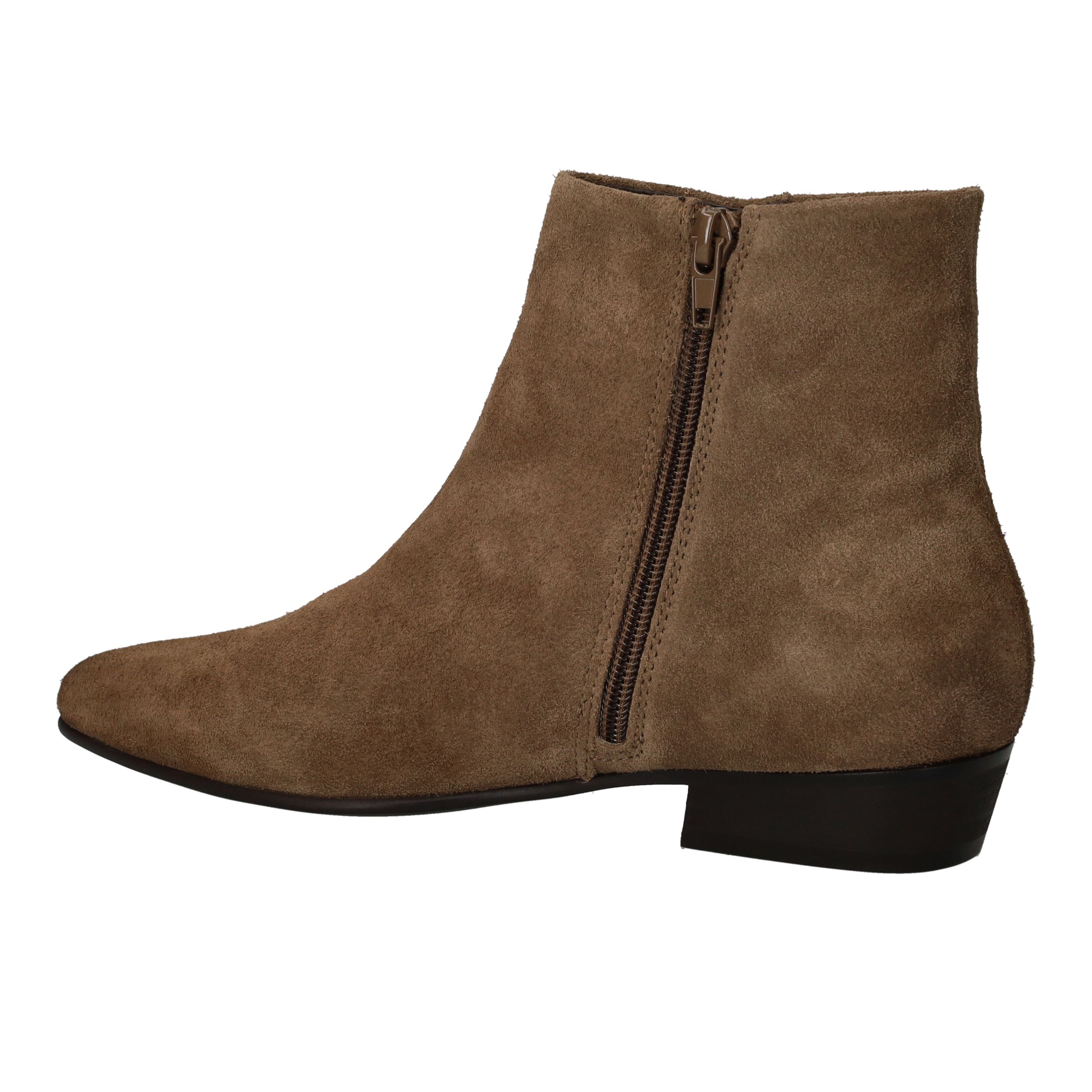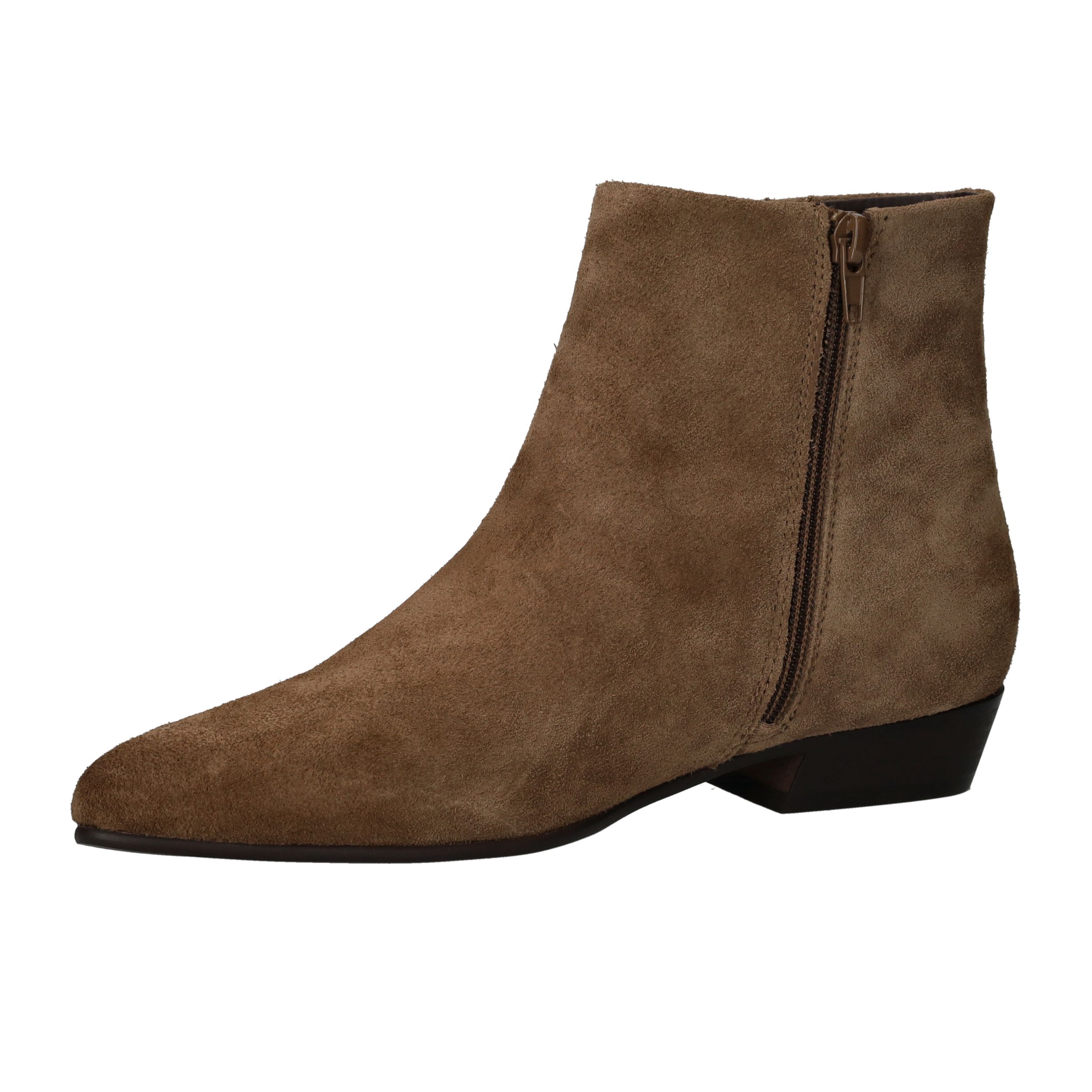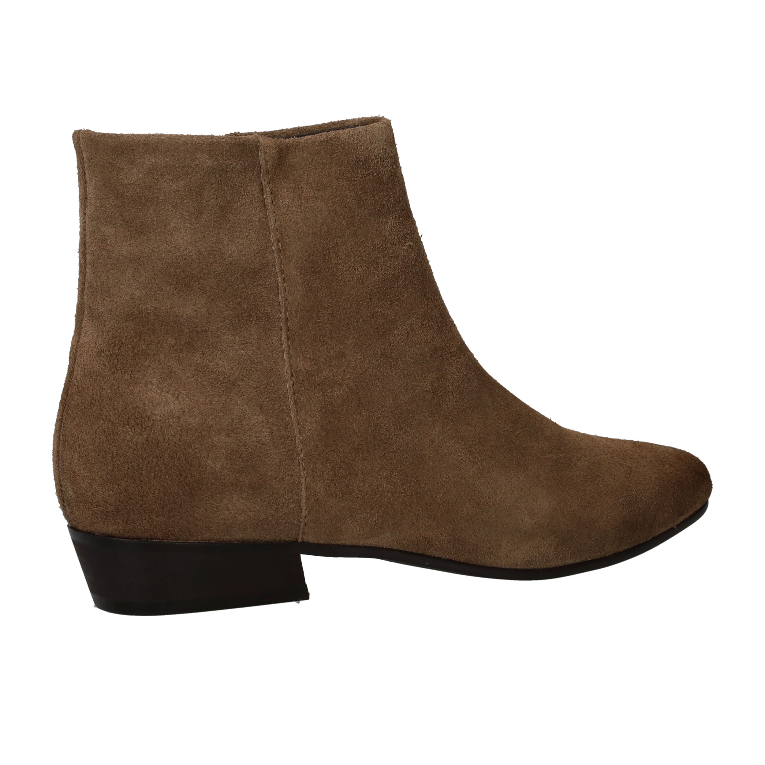 Deze stijlvolle LOFF1881 enkellaars voor dames combineert een minimalistisch design met tijdloze elegantie. Het bovenwerk is volledig gemaakt van hoogwaardig suède, wat zorgt voor een luxe en verfijnde uitstraling. De zachte textielen voering biedt extra draagcomfort, waardoor deze enkellaars ideaal is voor dagelijks gebruik. De neutrale bruine kleur maakt de schoen veelzijdig en eenvoudig te combineren met diverse outfits.