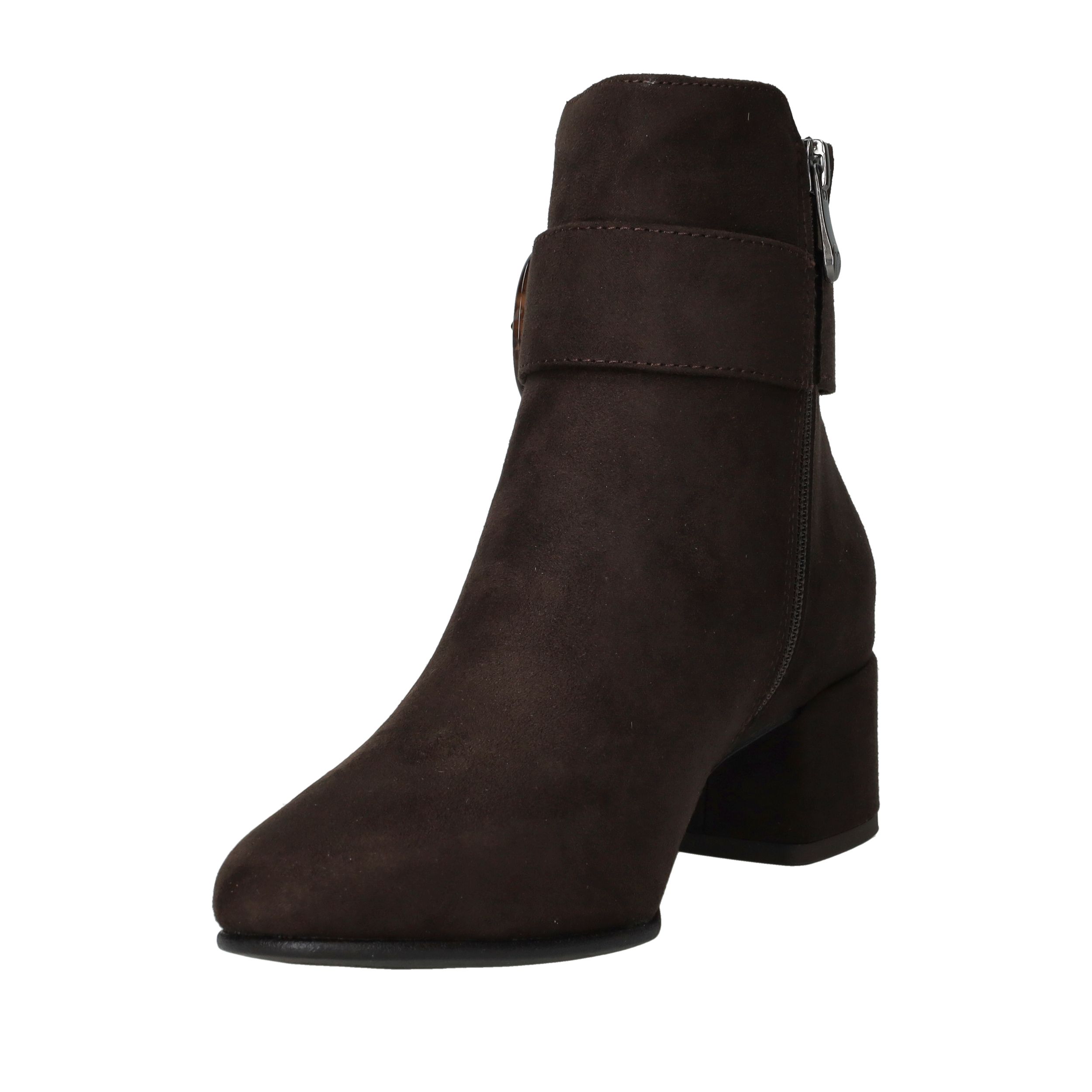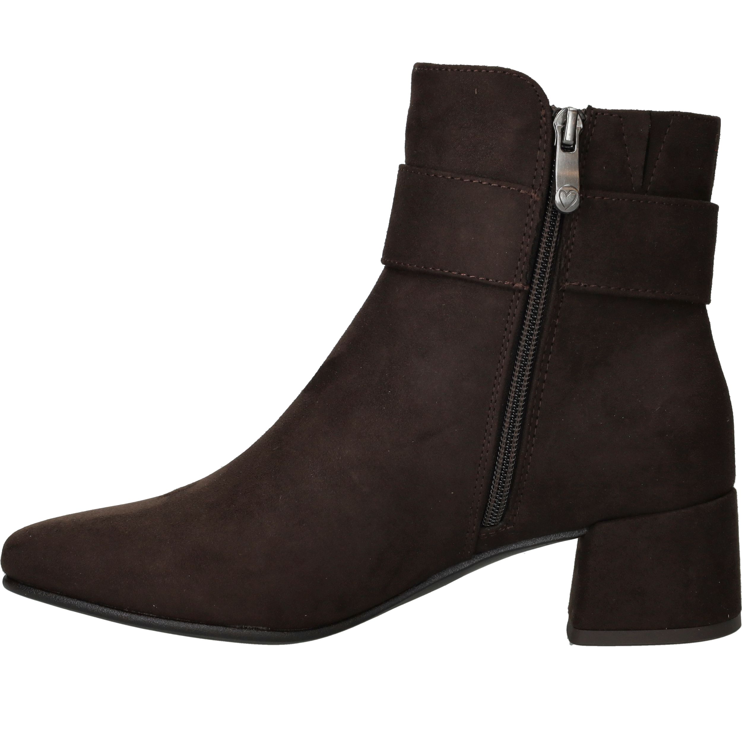Dit bruine MARCO TOZZI enkellaarsje van kunstsuède is een perfecte mix van elegantie en dagelijks comfort. De ronde gesp op de schacht geeft een speels accent, terwijl de warme kleur makkelijk te combineren is met je favoriete herfst- of winteroutfits. Dankzij de ritssluiting trek je ze eenvoudig aan, en de zachte textielen voering maakt ze ideaal voor urenlang draagplezier. Vegan én met voetbreedte G: bewust én comfortabel.