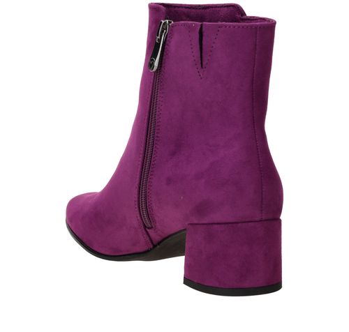 Fleur je outfit op met dit paarse MARCO TOZZI enkellaarsje. De damesschoen is helemaal gemaakt van vegan materiaal en heeft een comfortabele hakhoogte van 5 cm.
