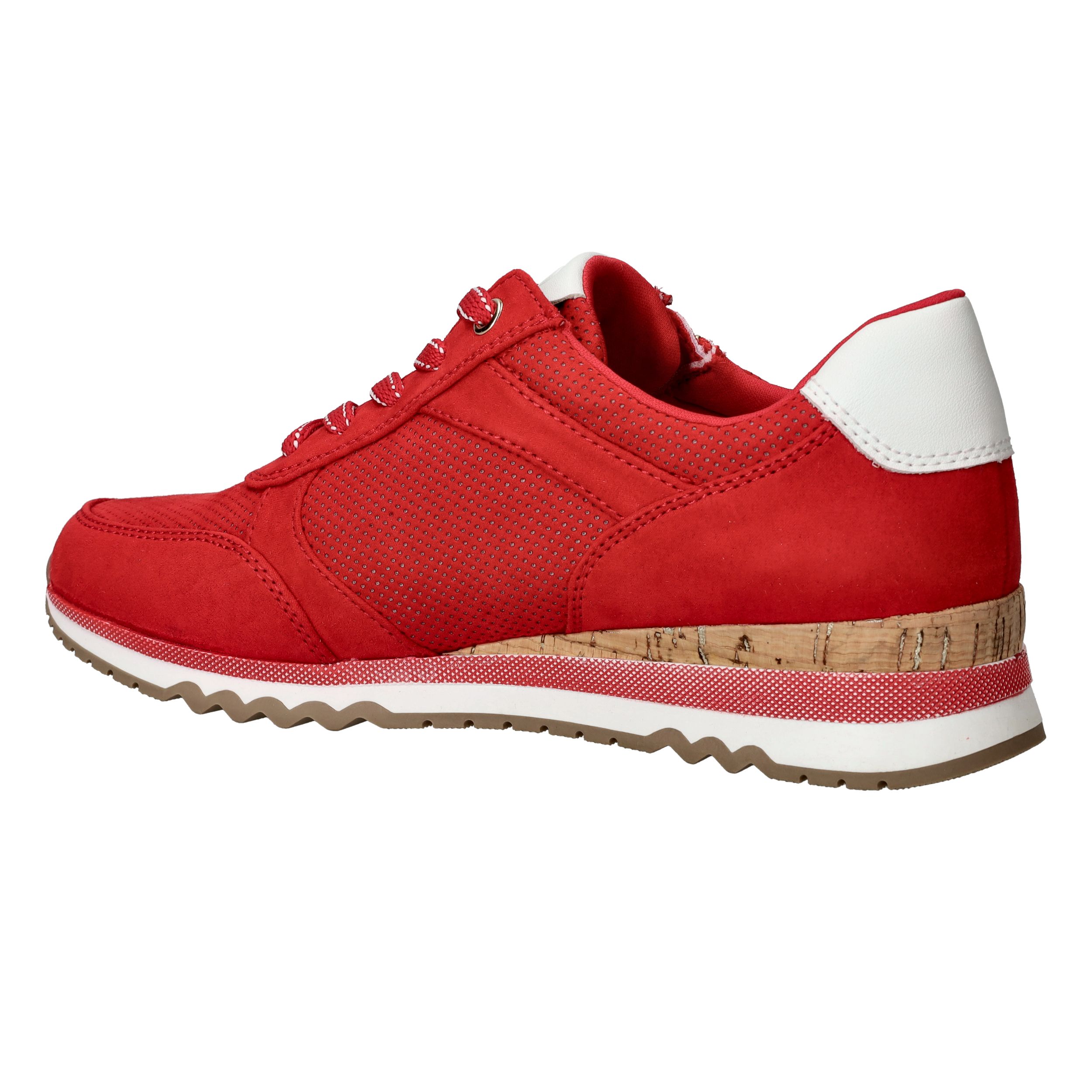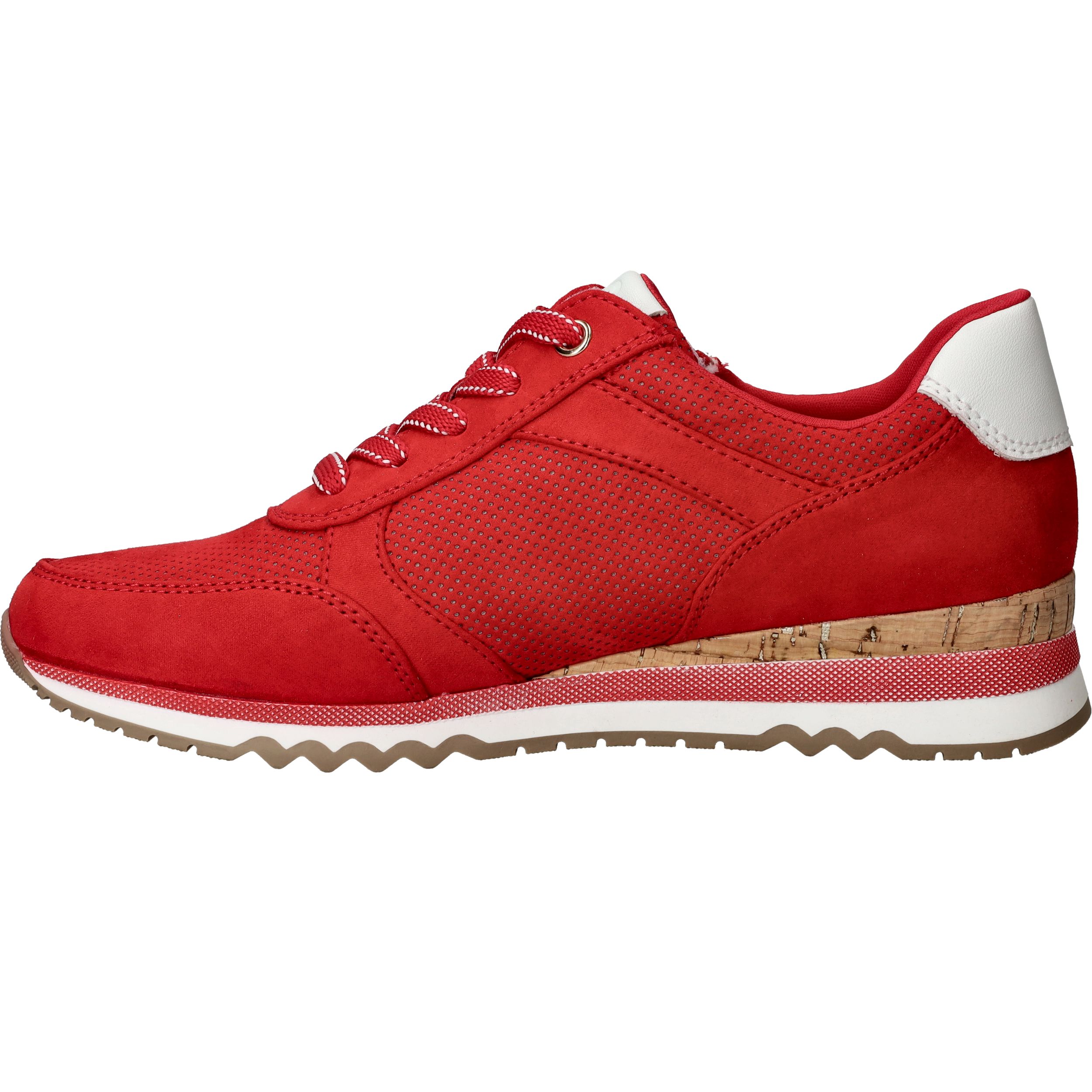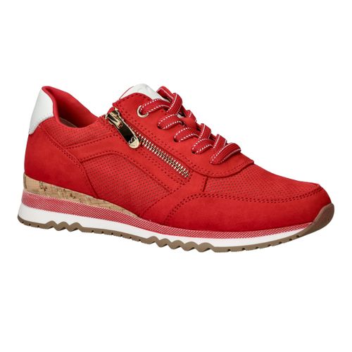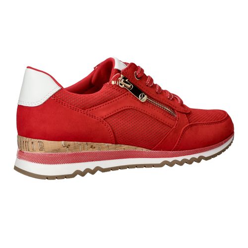 Opvallende rode MARCO TOZZI sneaker voor dames. De sneaker is helemaal vegan en is afgewerkt met witte details.