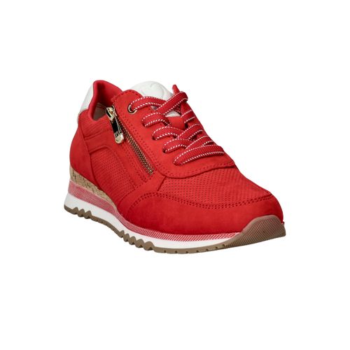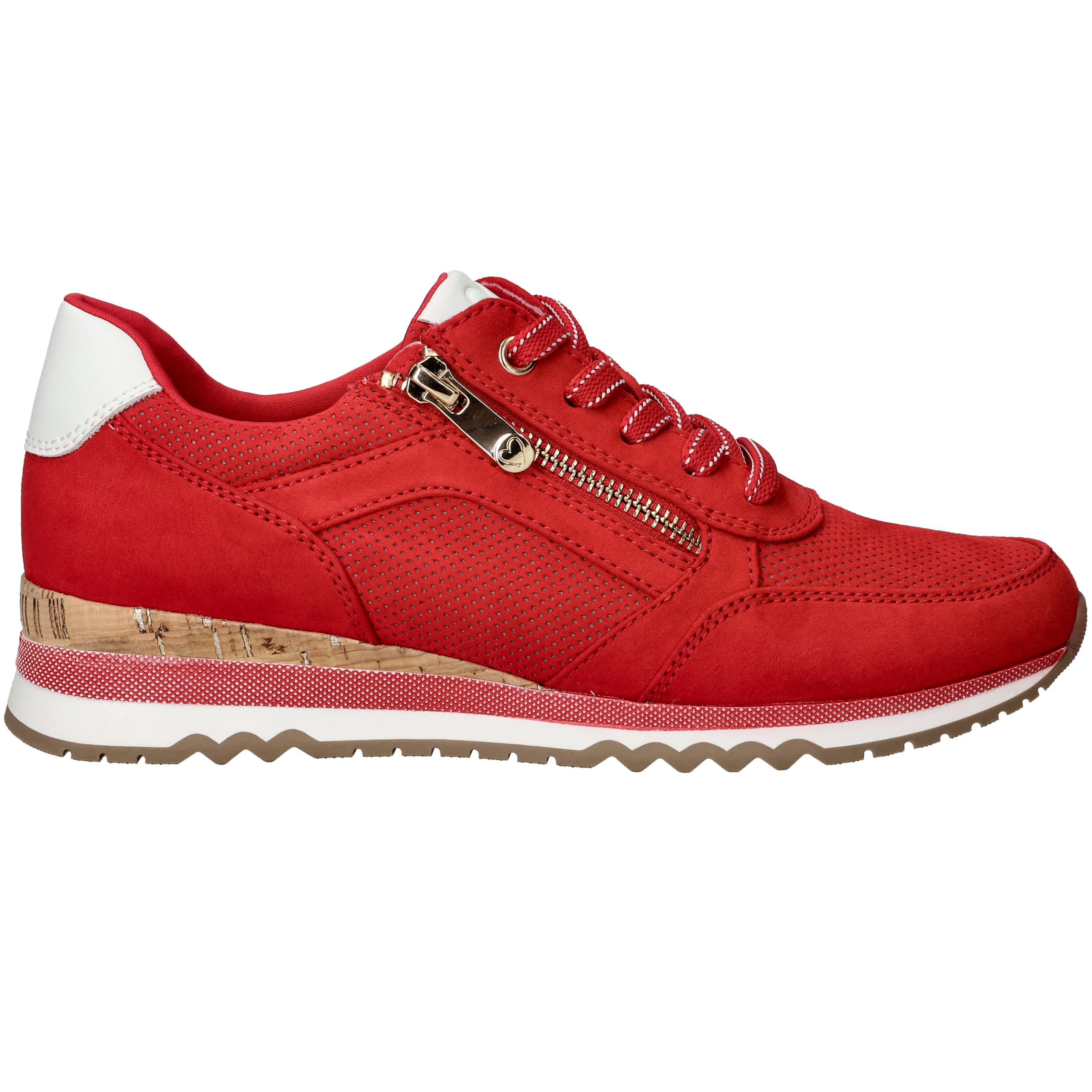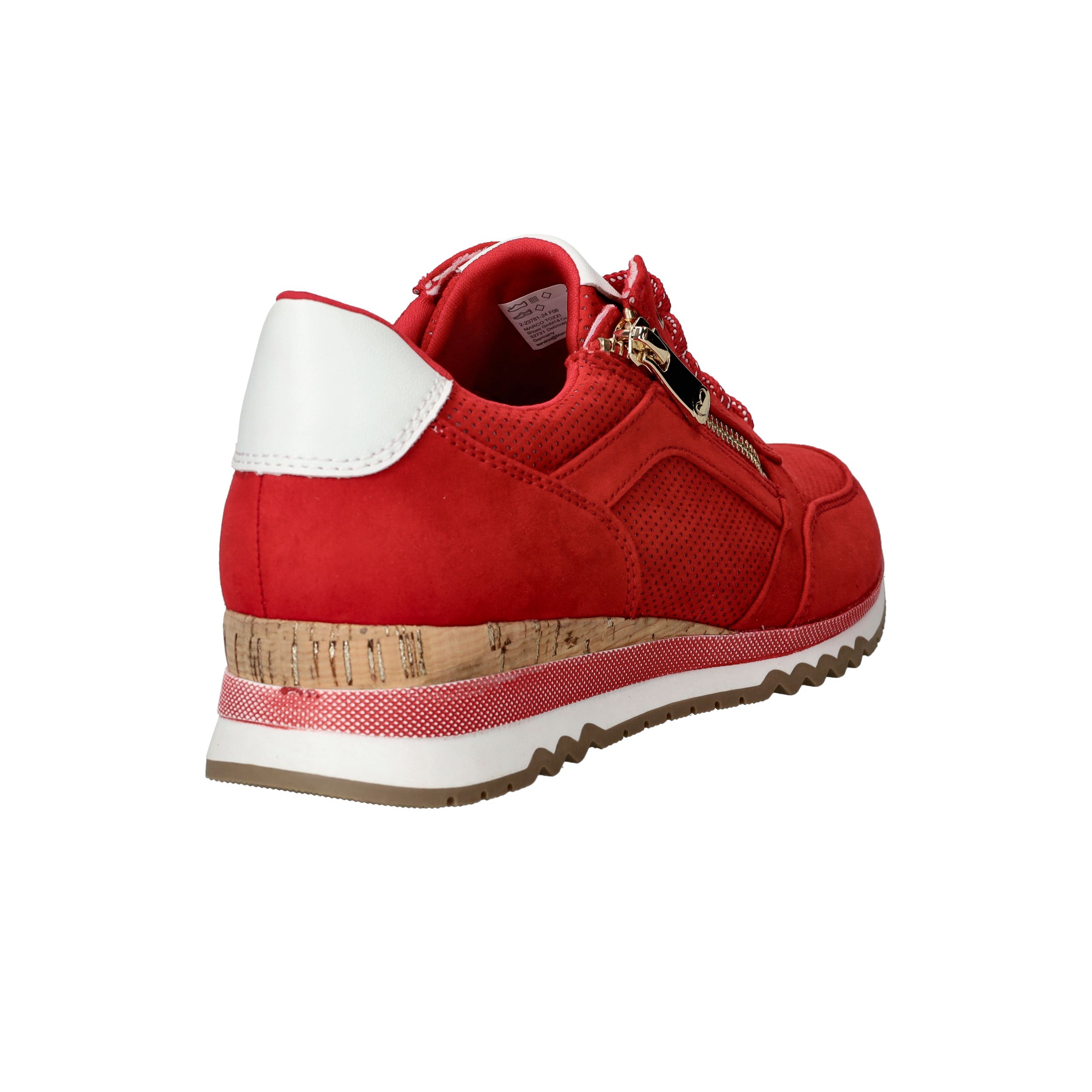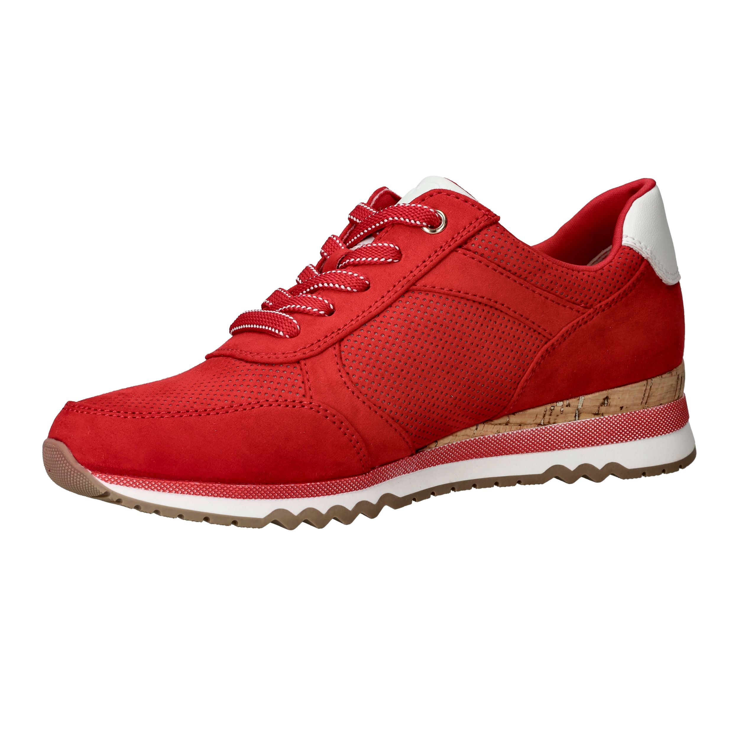 Opvallende rode MARCO TOZZI sneaker voor dames. De sneaker is helemaal vegan en is afgewerkt met witte details.