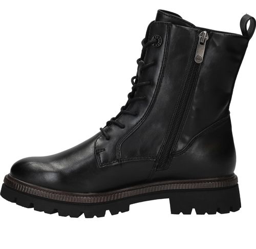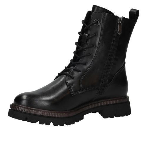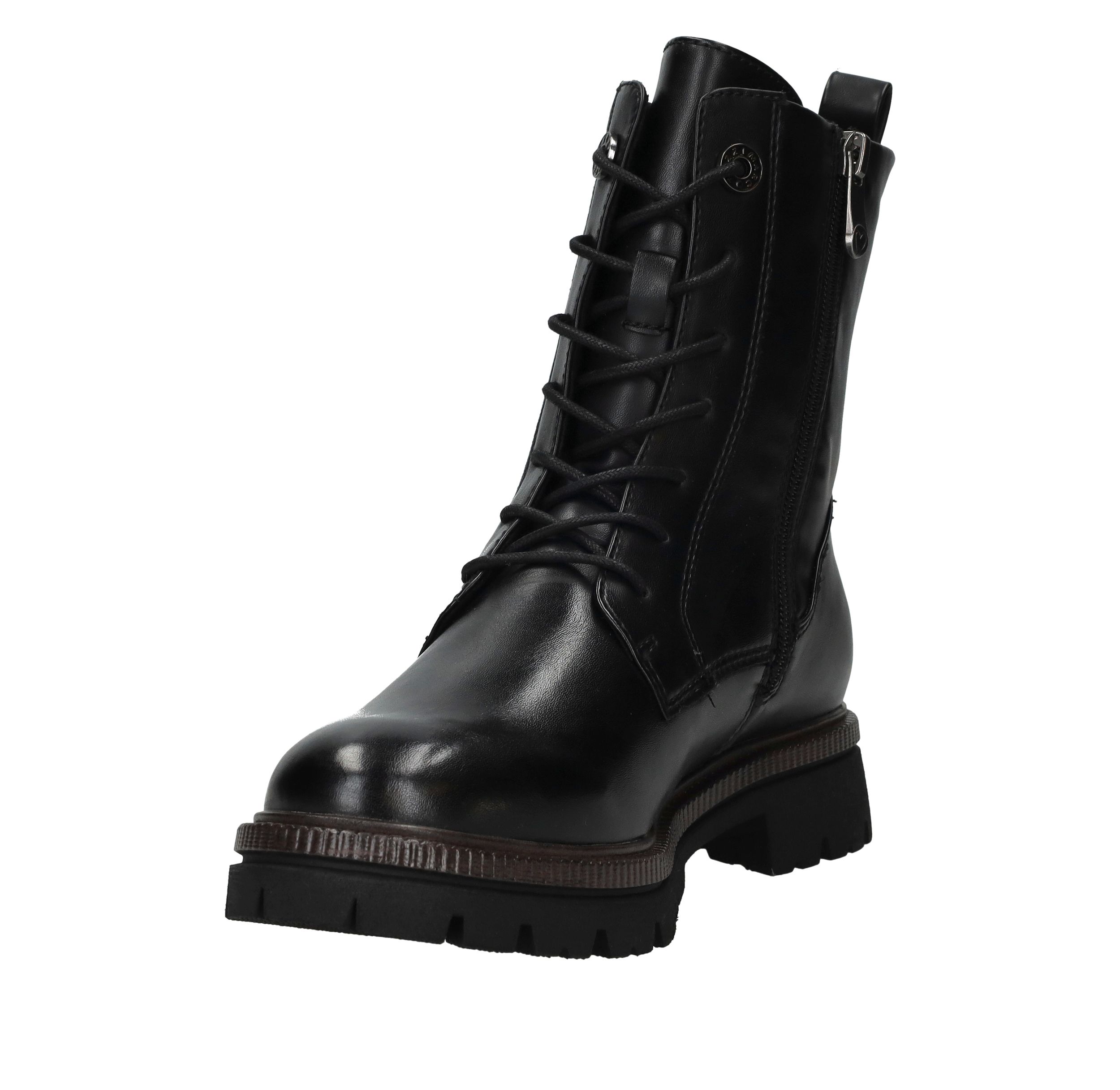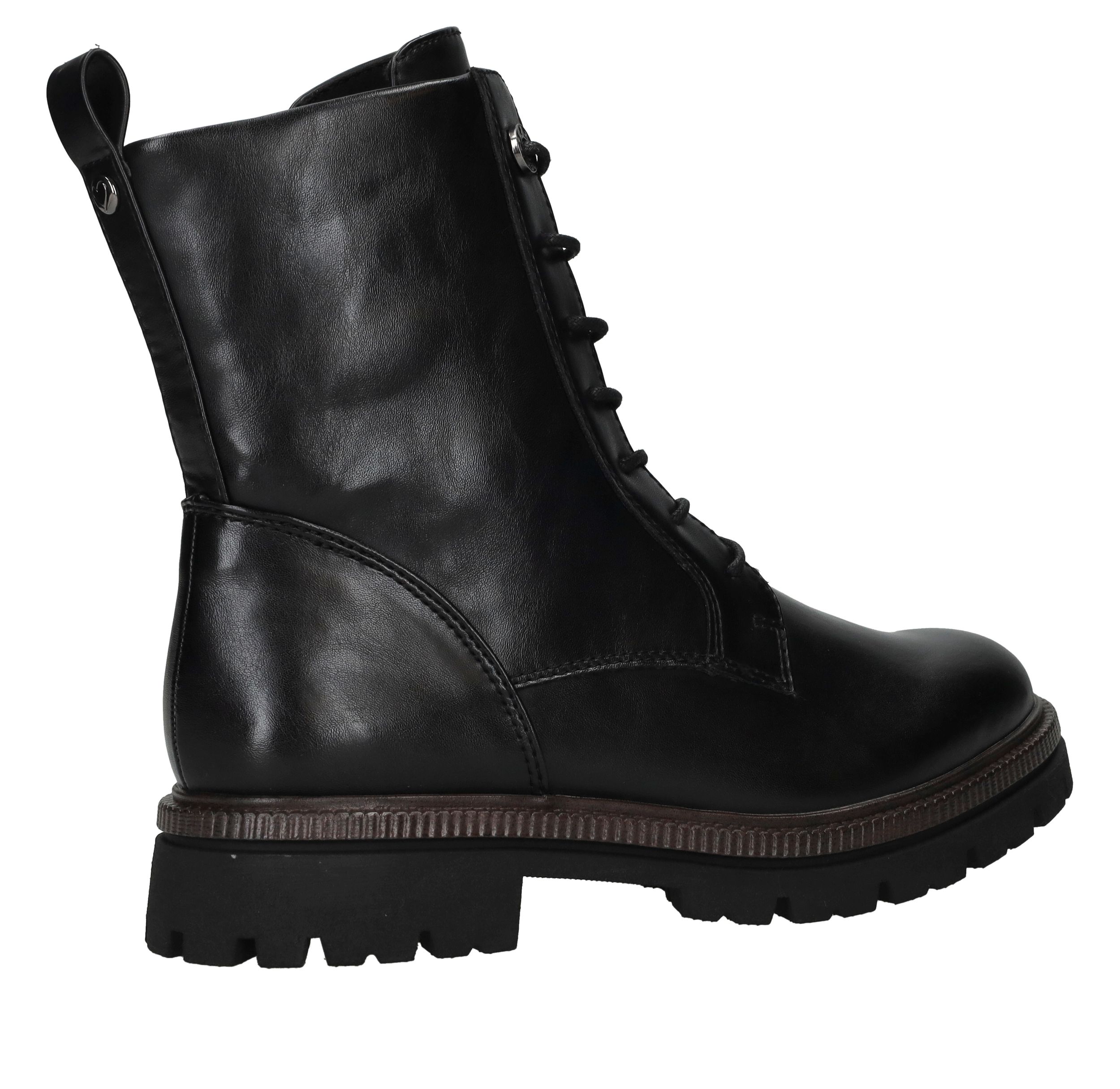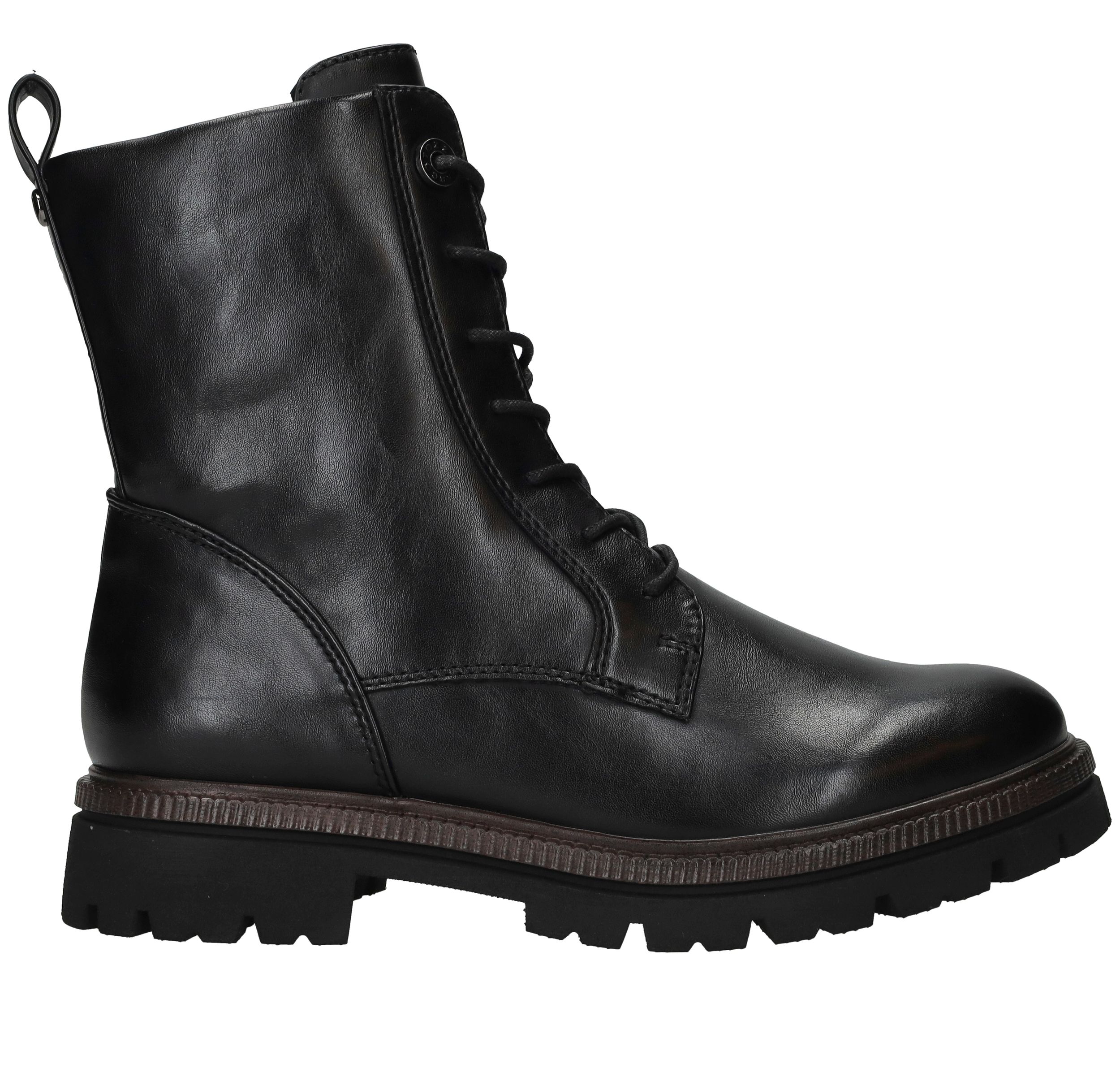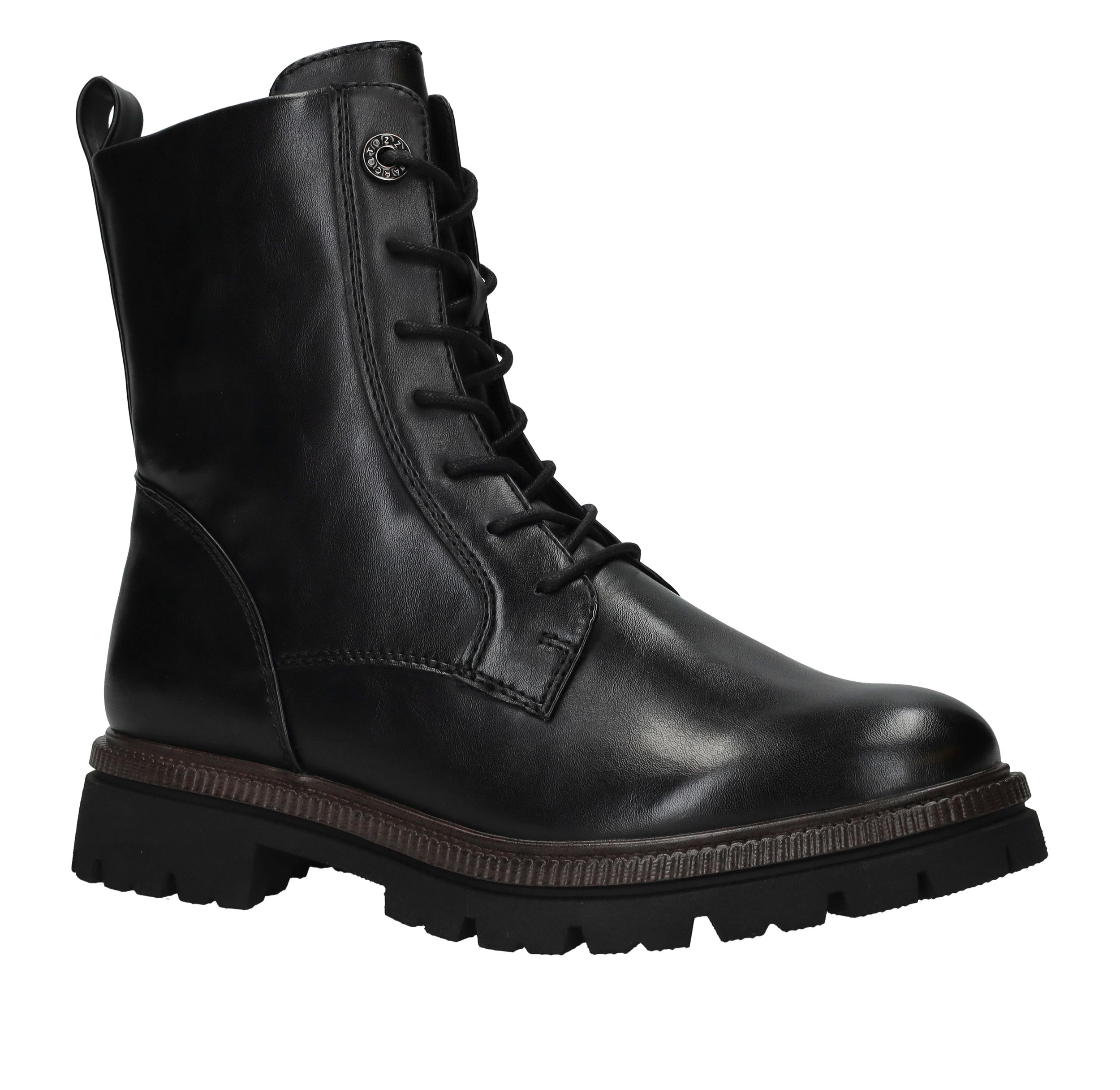 Stoere zwarte MARCO TOZZI veterboot voor dames. De damesschoen is helemaal gemaakt van vegan materiaal..