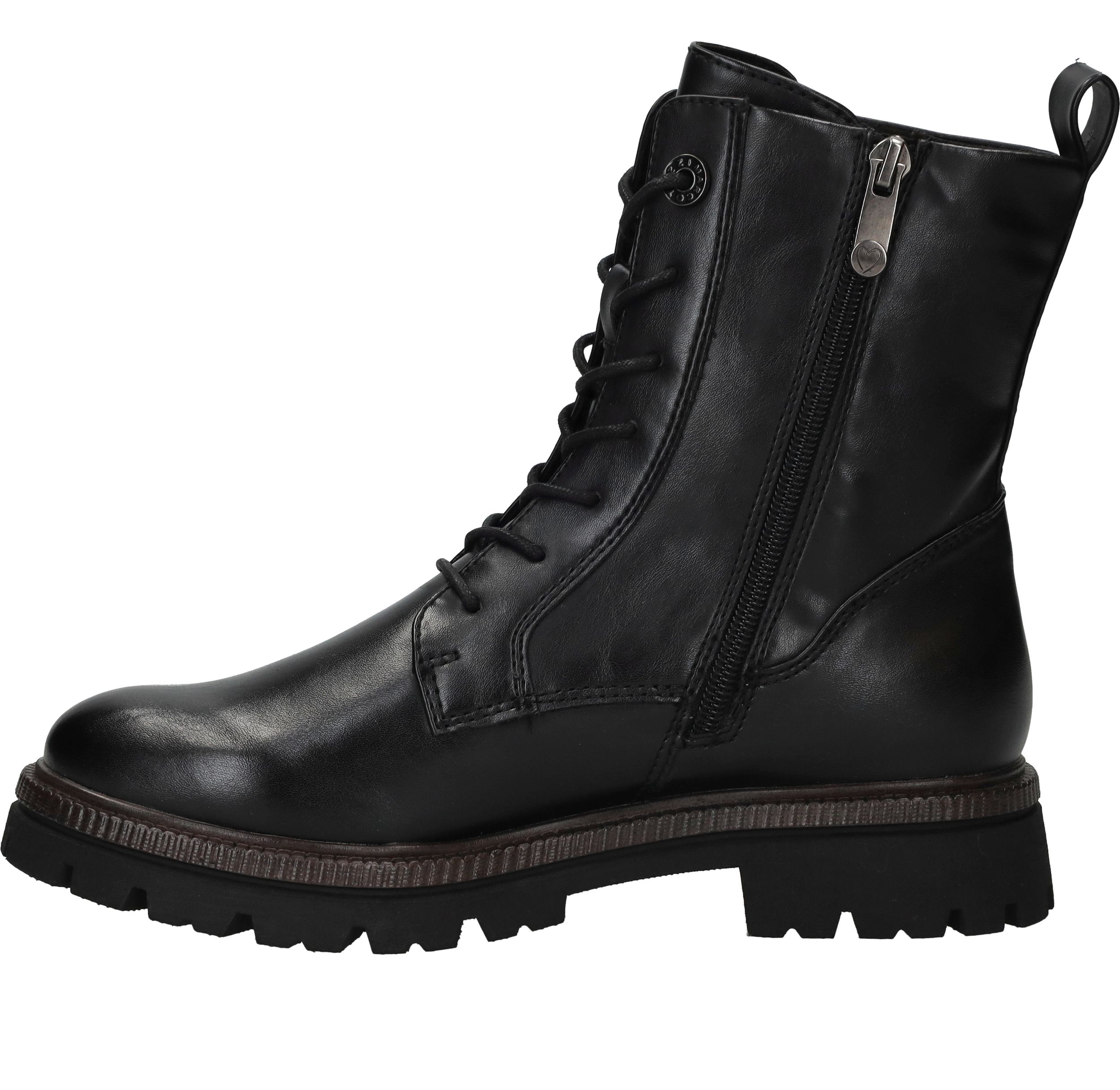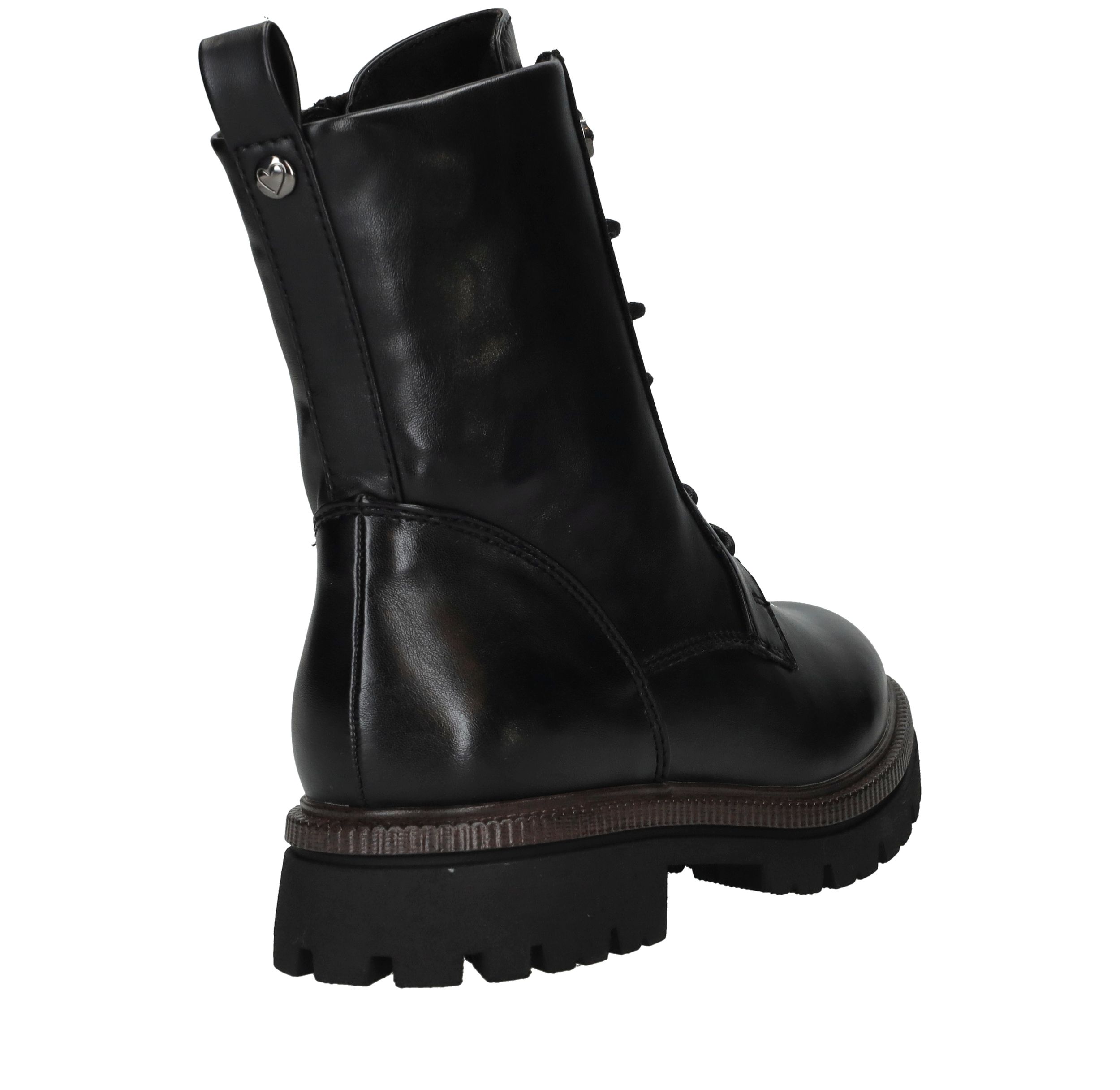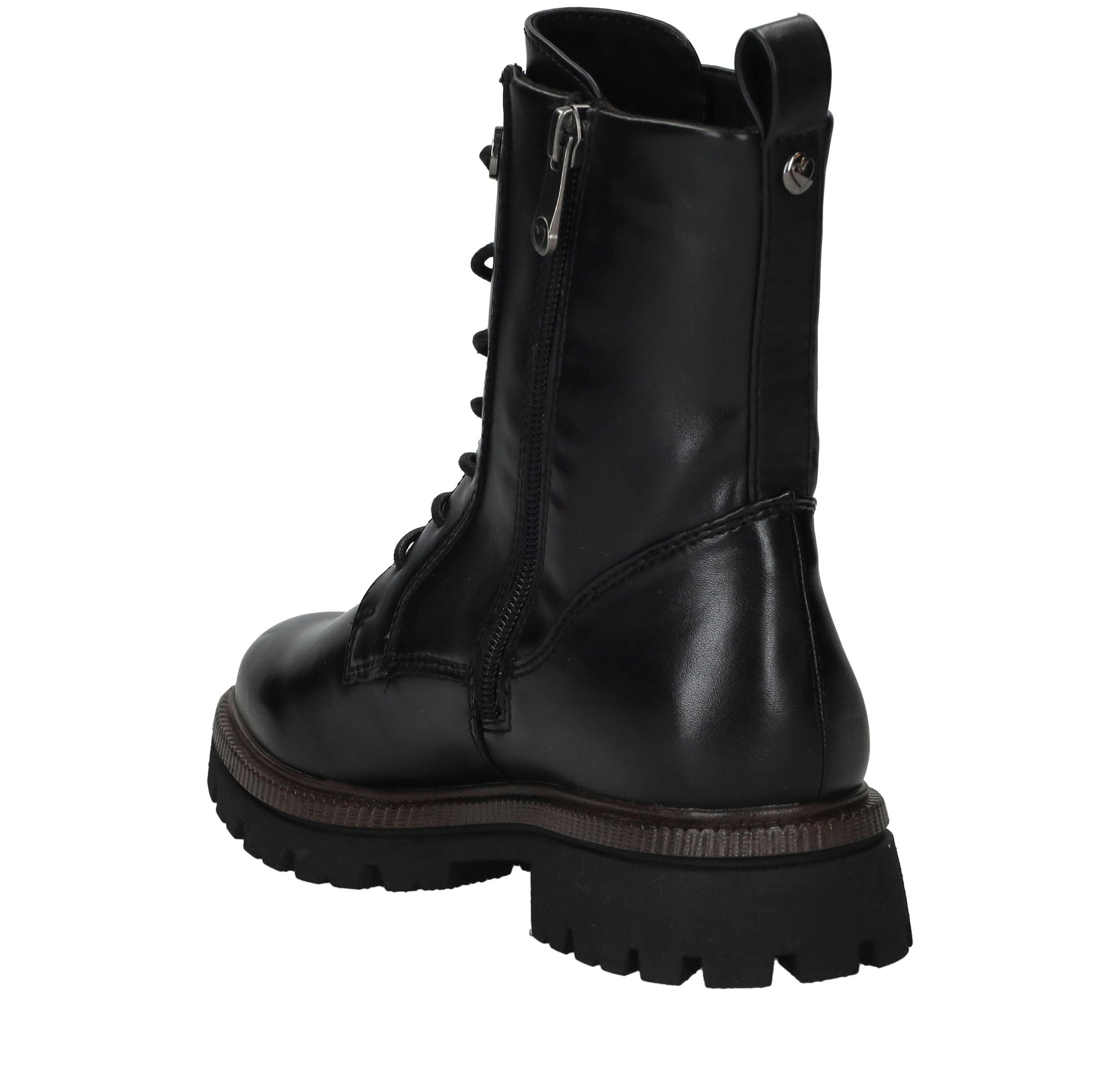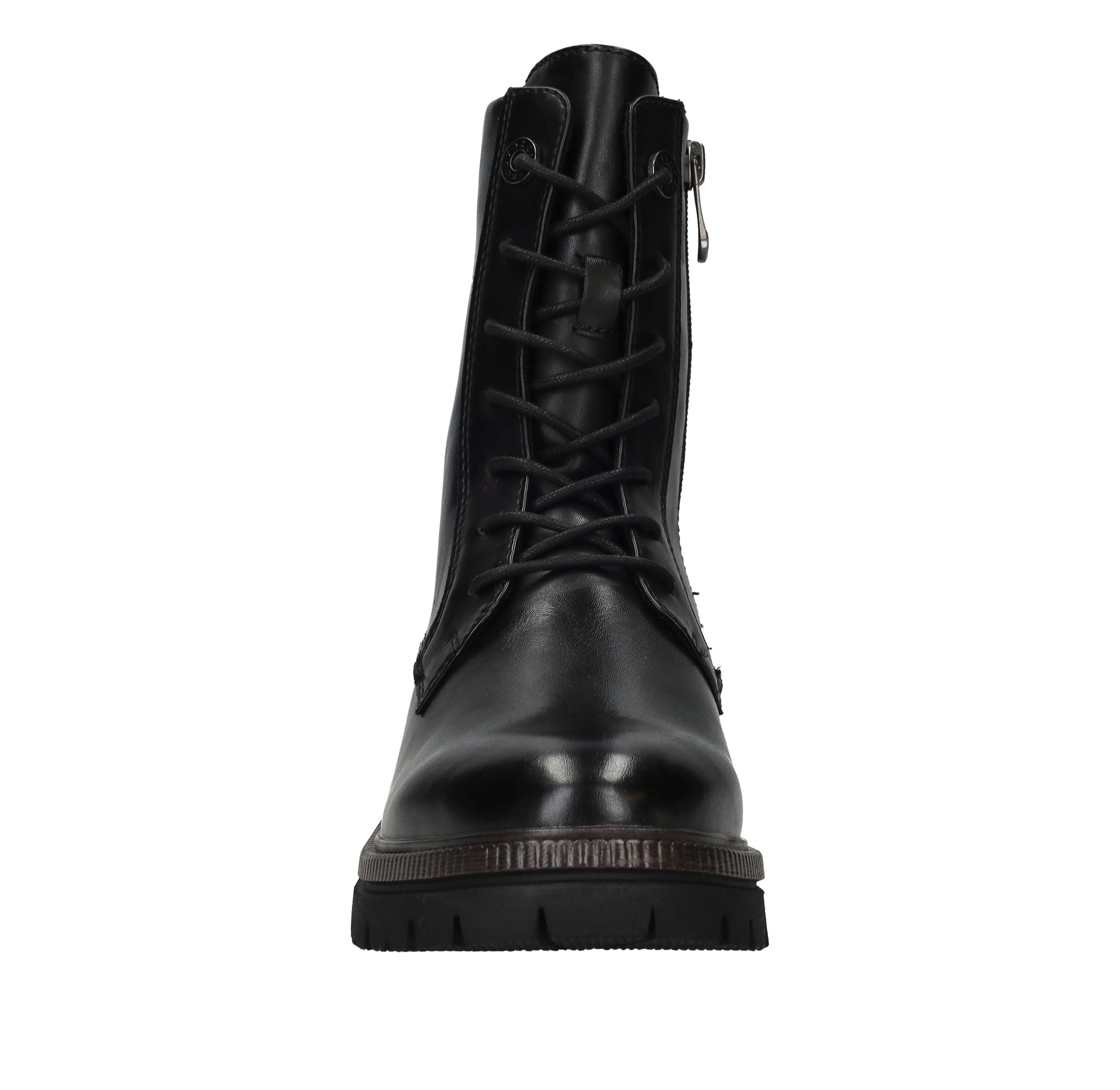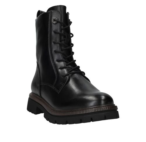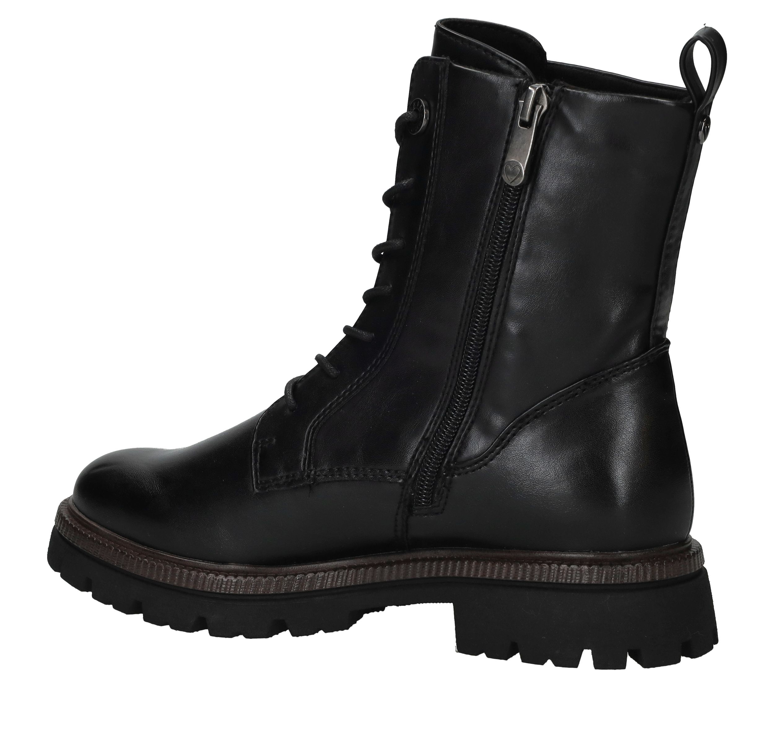 Stoere zwarte MARCO TOZZI veterboot voor dames. De damesschoen is helemaal gemaakt van vegan materiaal..
