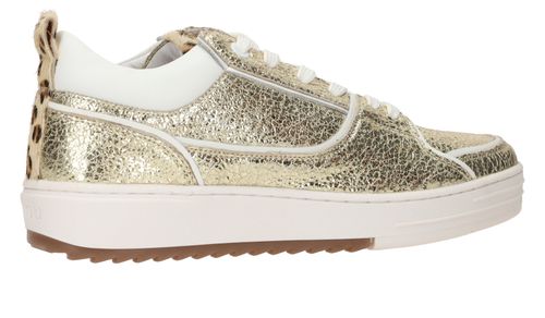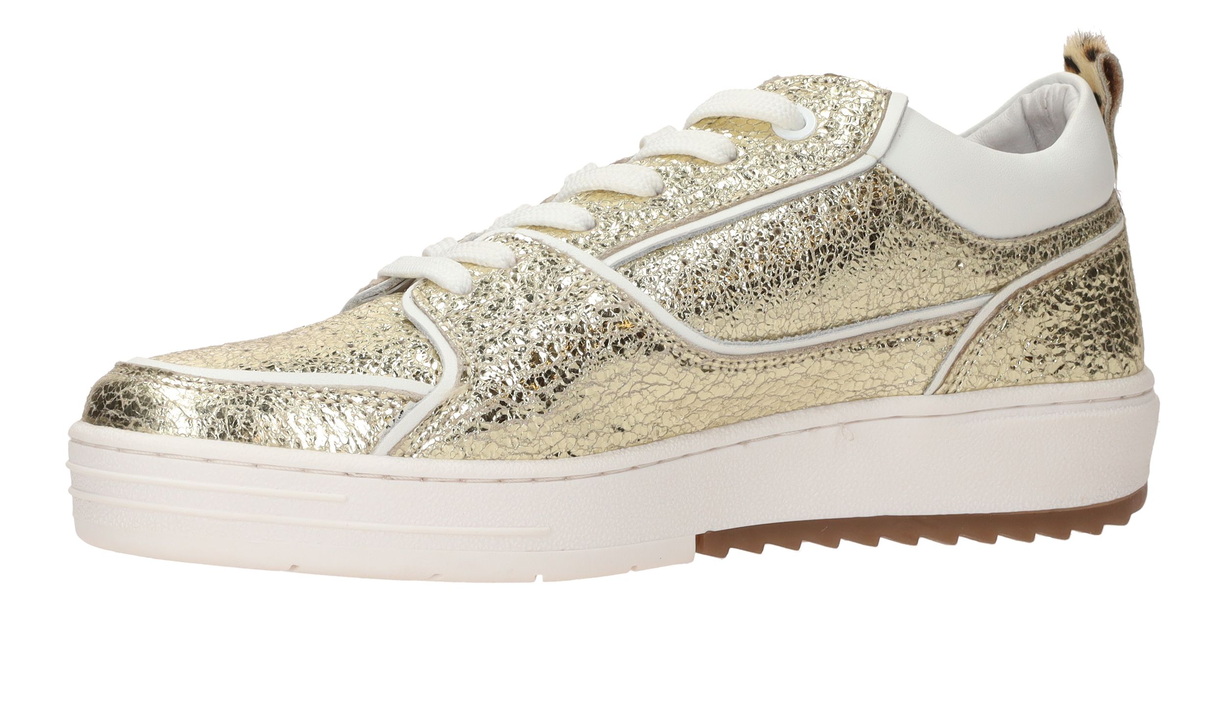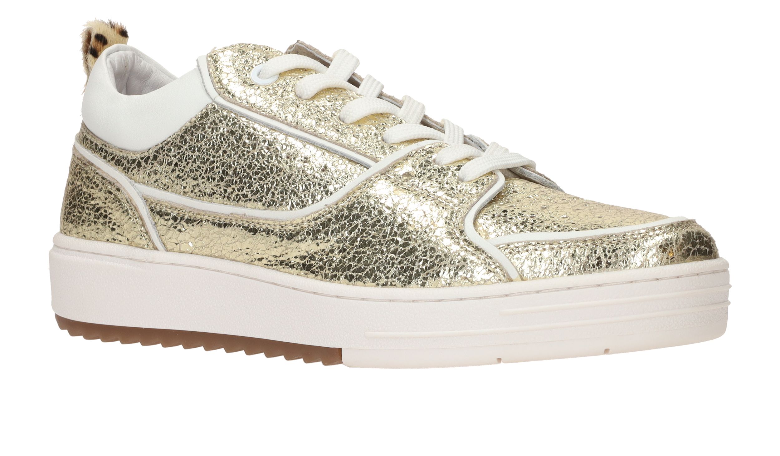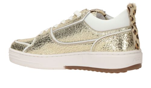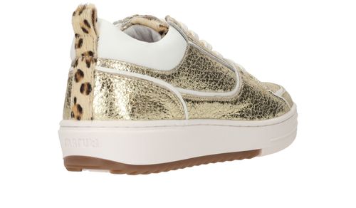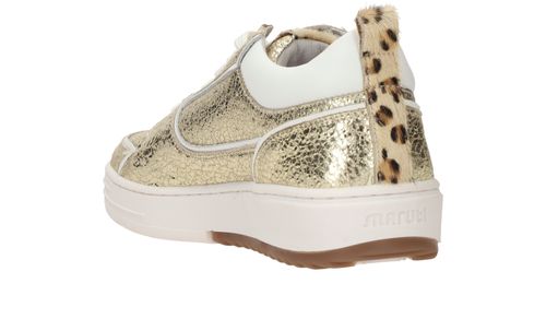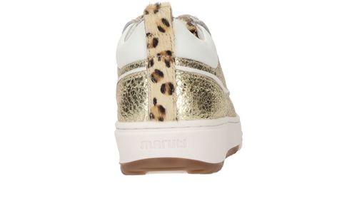 Hoe gaaf is deze Maruti Anna sneaker met een stralende metallic gouden kleur! Deze stevige damessneaker is gemaakt van leer en het leuke dierenprintje maakt deze schoen helemaal af.