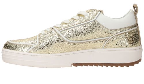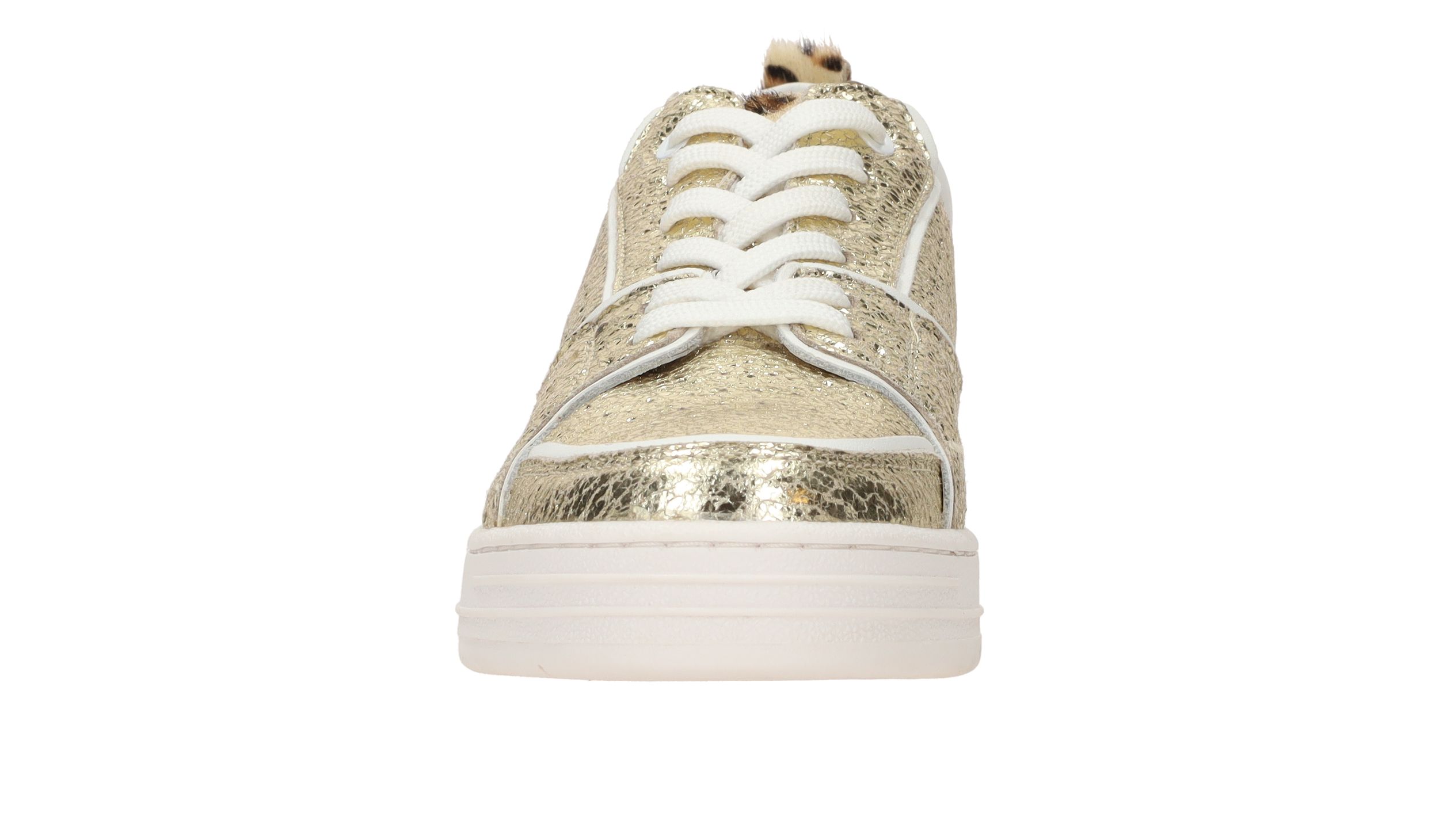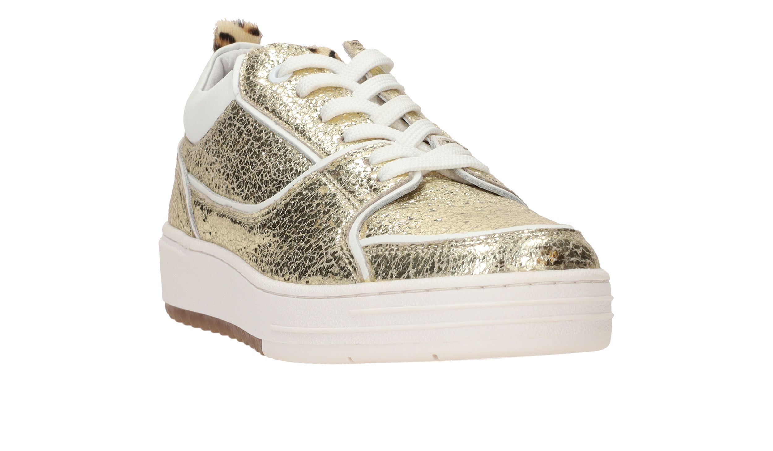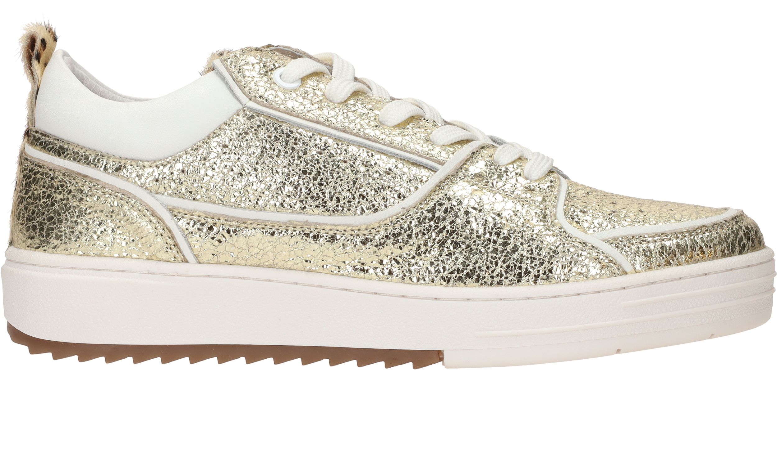 Hoe gaaf is deze Maruti Anna sneaker met een stralende metallic gouden kleur! Deze stevige damessneaker is gemaakt van leer en het leuke dierenprintje maakt deze schoen helemaal af.