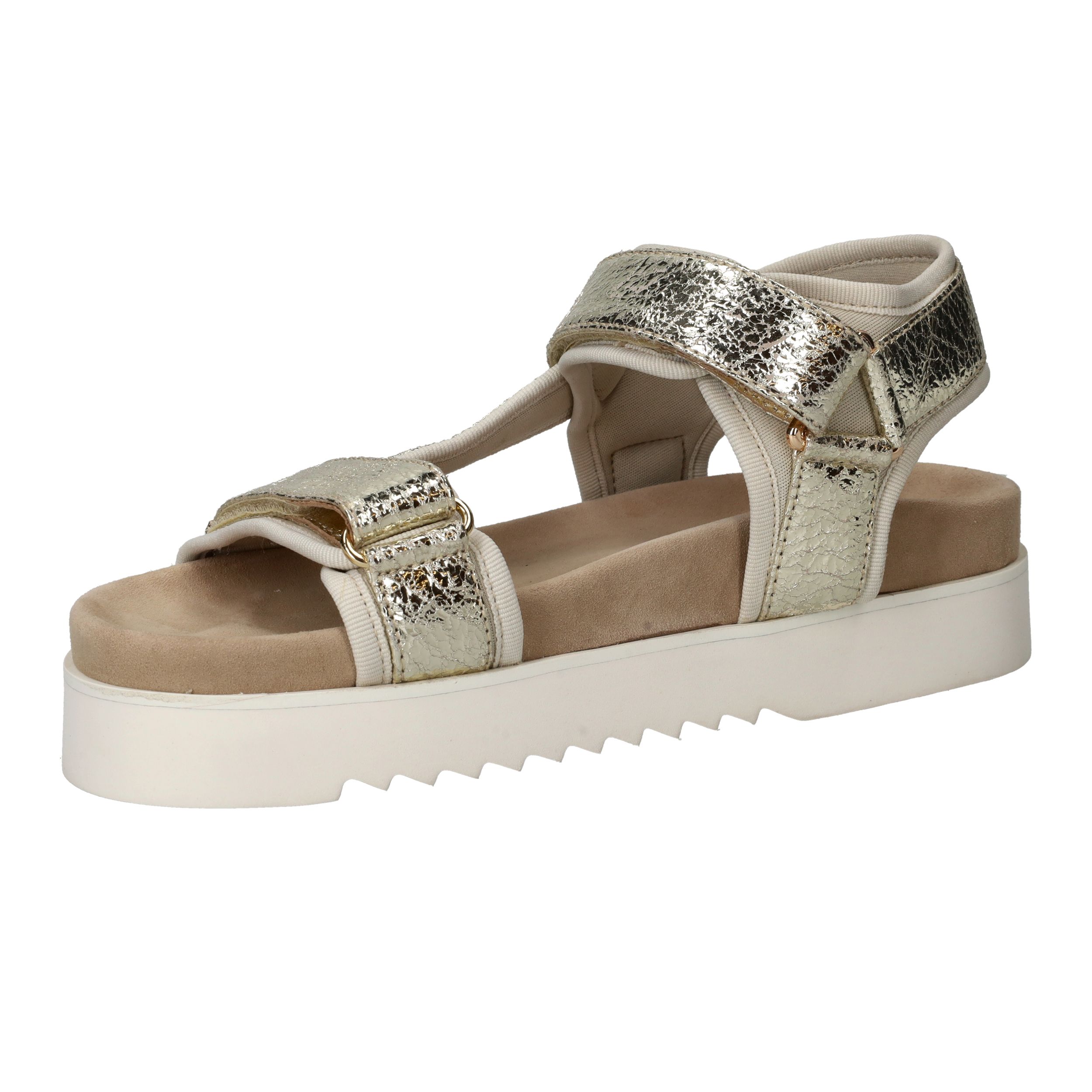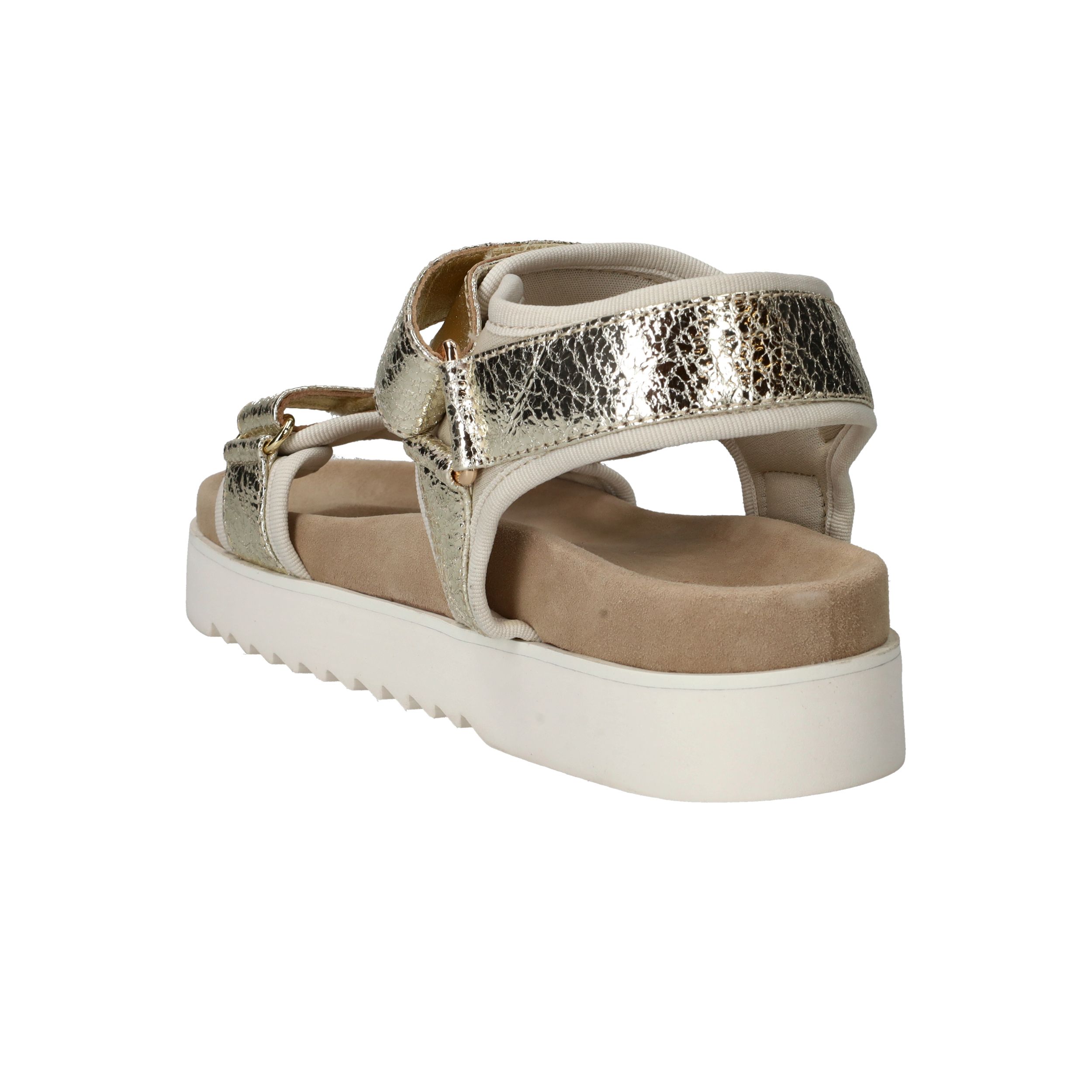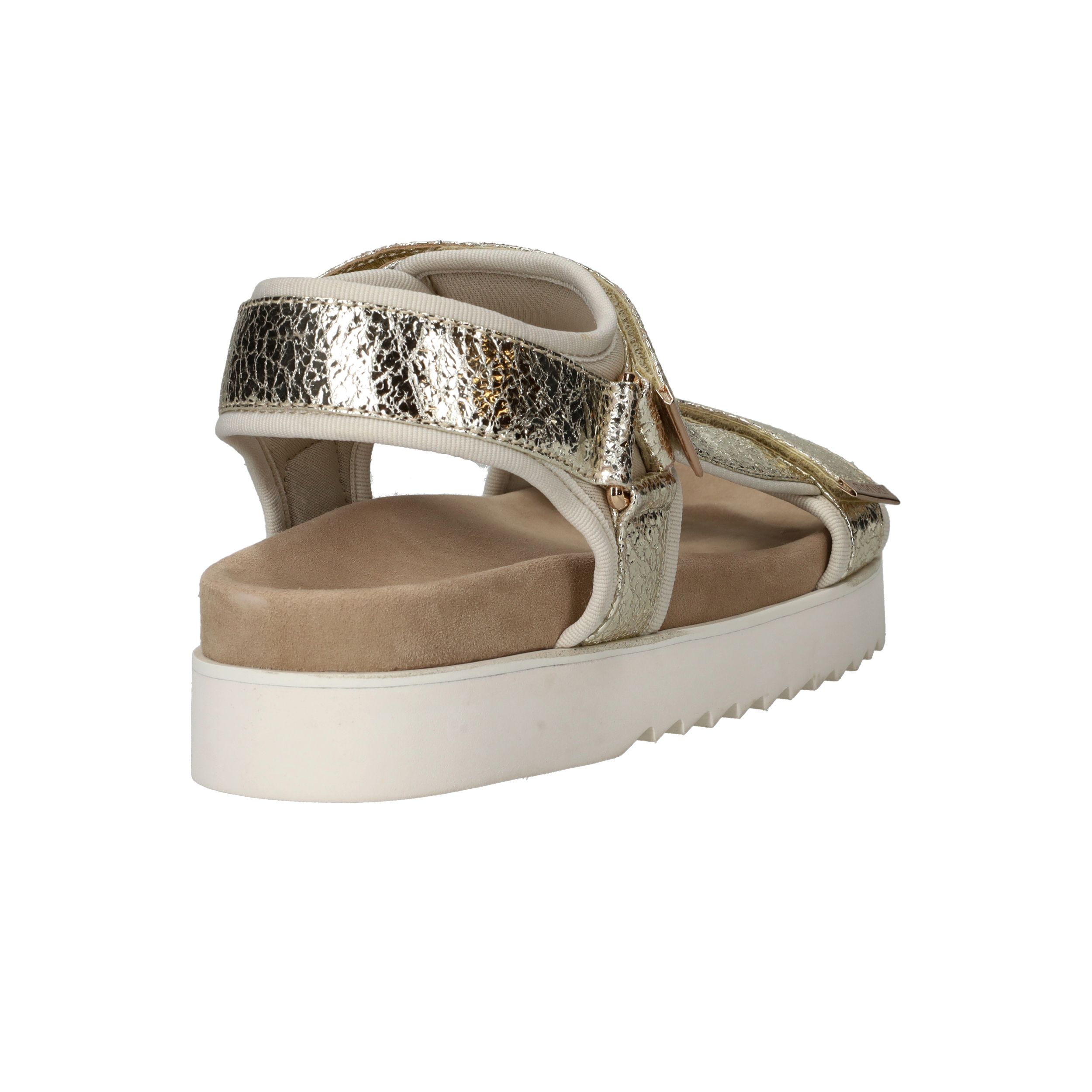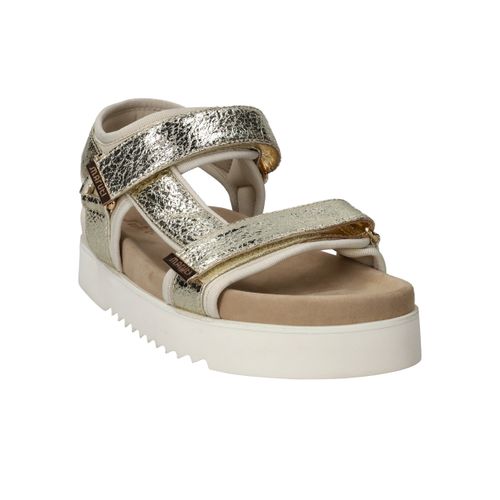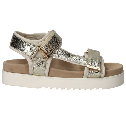 De gouden sandalen Maruti Beau zijn de perfecte mix van luxe en comfort. De glanzende goudkleurige banden geven deze Maruti sandalen een feestelijke uitstraling, terwijl het zachte voetbed en de stevige plateauzool zorgen voor een heerlijk loopgevoel. Een stijlvolle keuze voor zomerse dagen, strandfeestjes of gewoon een casual look met een gouden randje.
