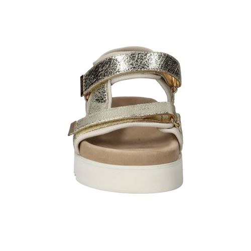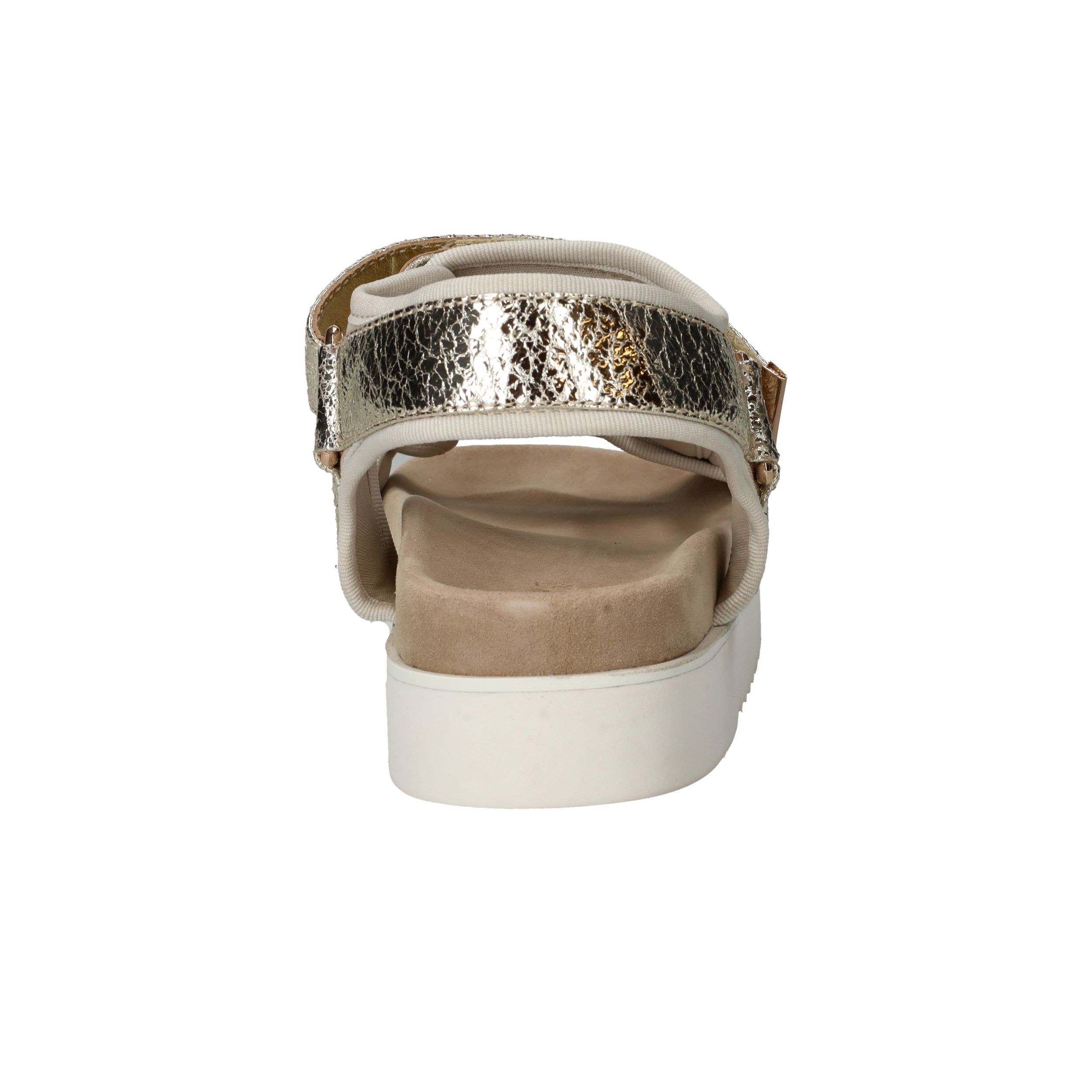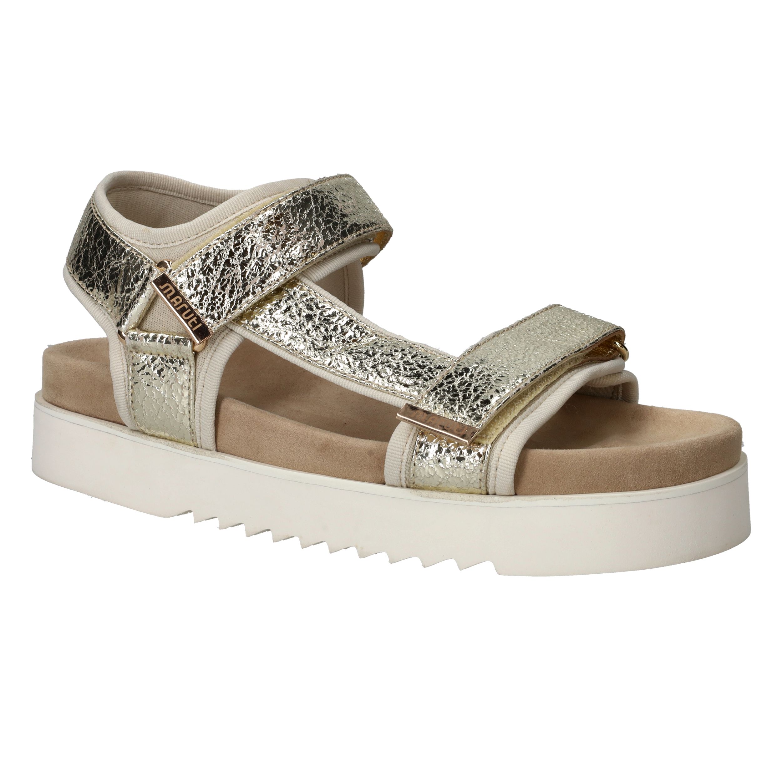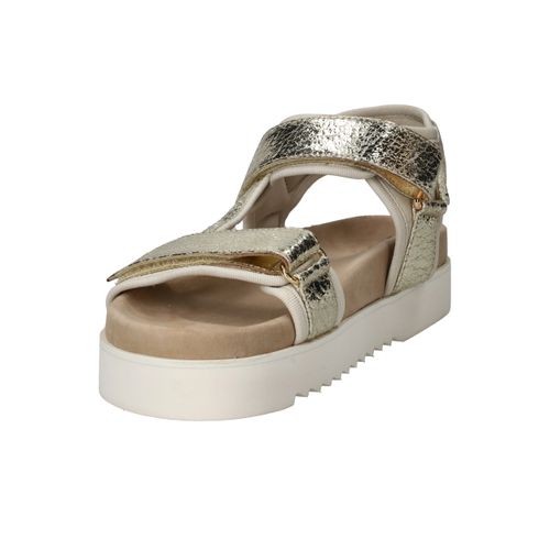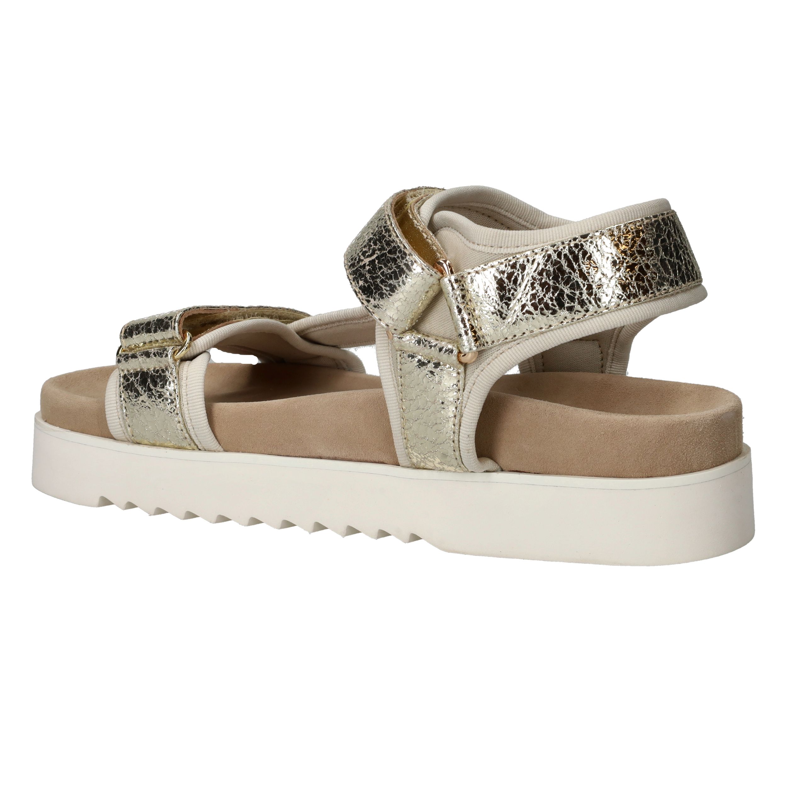 De gouden sandalen Maruti Beau zijn de perfecte mix van luxe en comfort. De glanzende goudkleurige banden geven deze Maruti sandalen een feestelijke uitstraling, terwijl het zachte voetbed en de stevige plateauzool zorgen voor een heerlijk loopgevoel. Een stijlvolle keuze voor zomerse dagen, strandfeestjes of gewoon een casual look met een gouden randje.