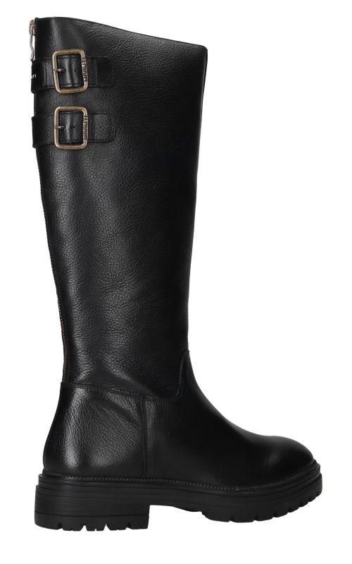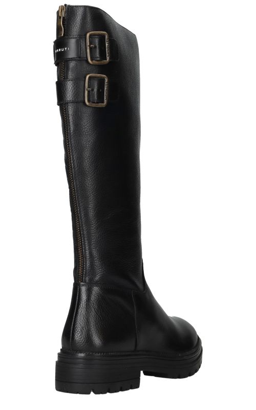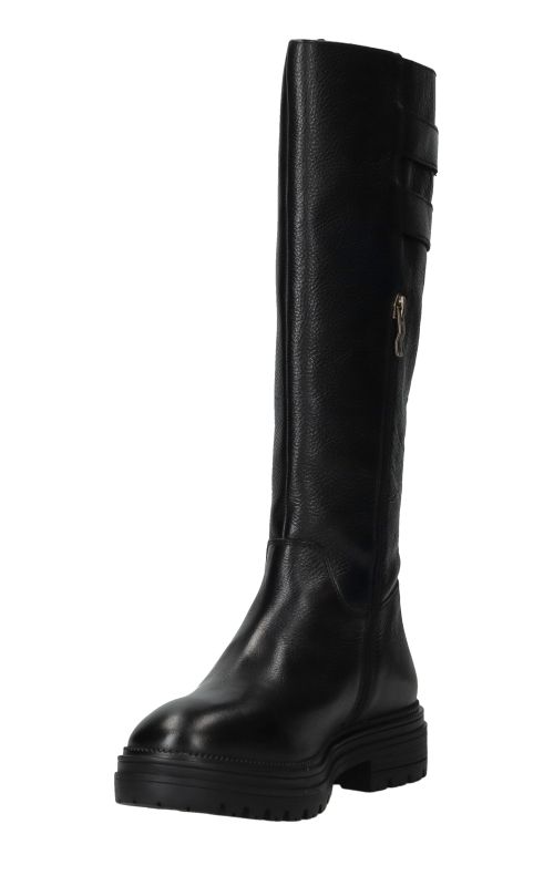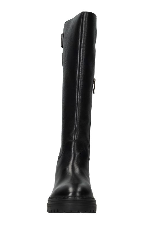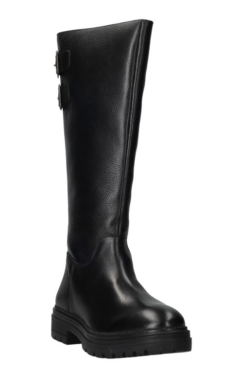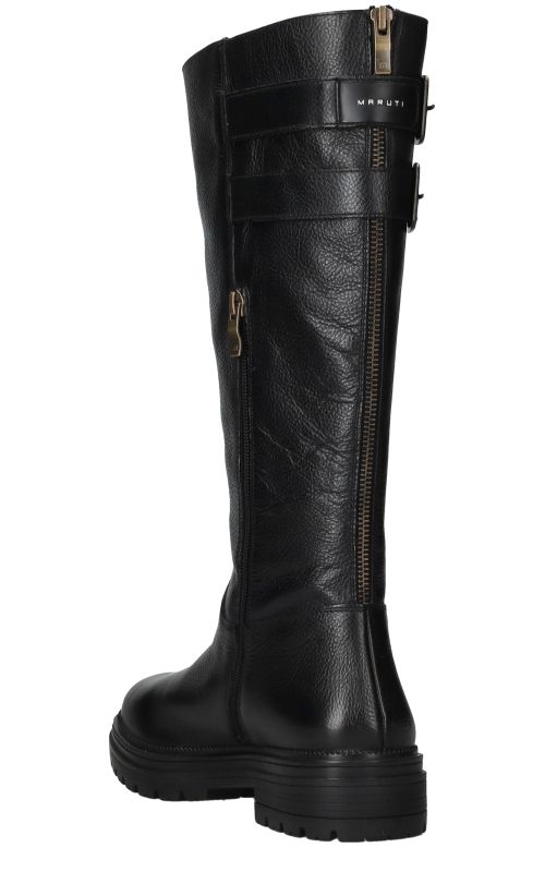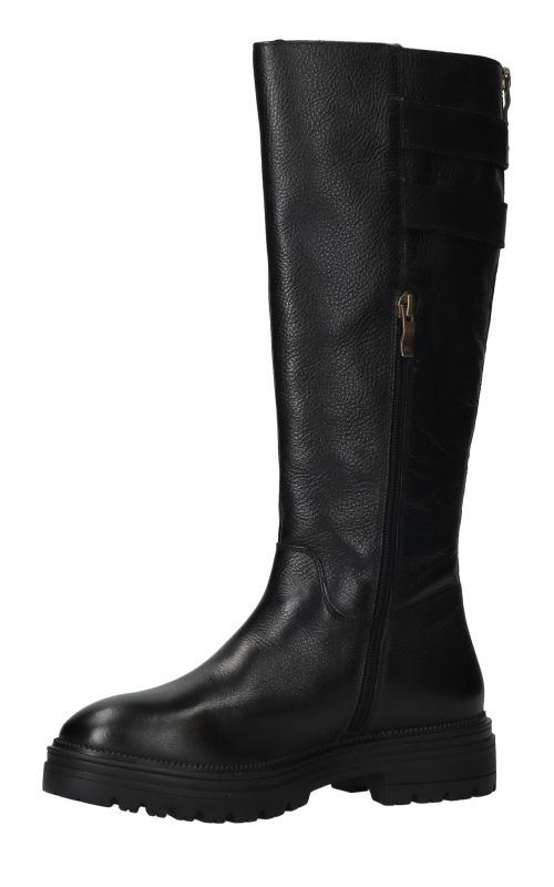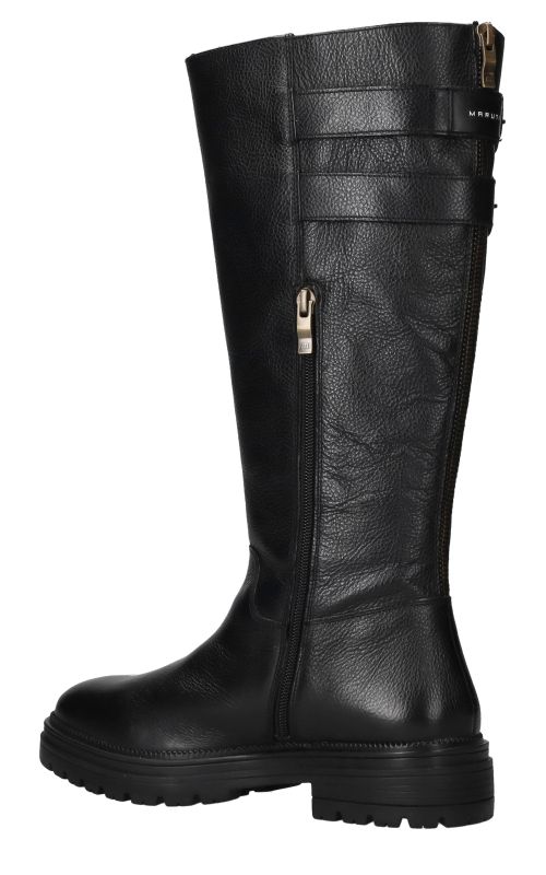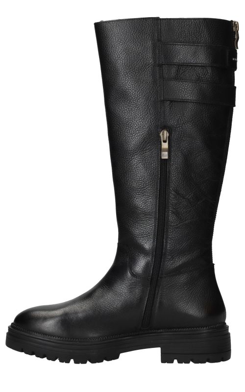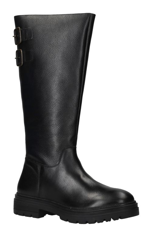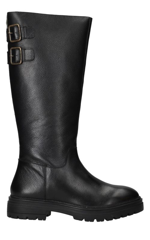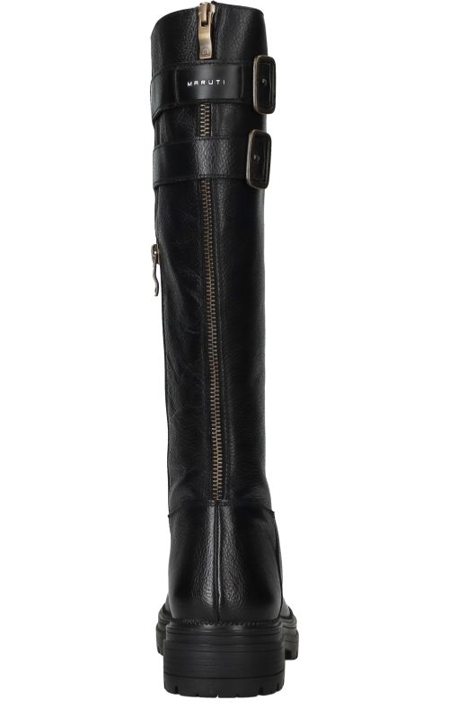 De Maruti Briony is een lange laars uitgevoerd in zwart leer. De robuuste zool en de gespen aan de schacht geven de laars een stoere uitstraling, terwijl het gladde leer zorgt voor een stijlvolle afwerking. Een ideale laars om eindeloos te combineren met zowel casual als nette outfits.