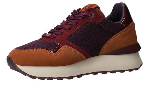 Vrolijke Mexx Juju Humper sneaker met gave platformzool! De paarse en cognac kleuren matchen geweldig samen.