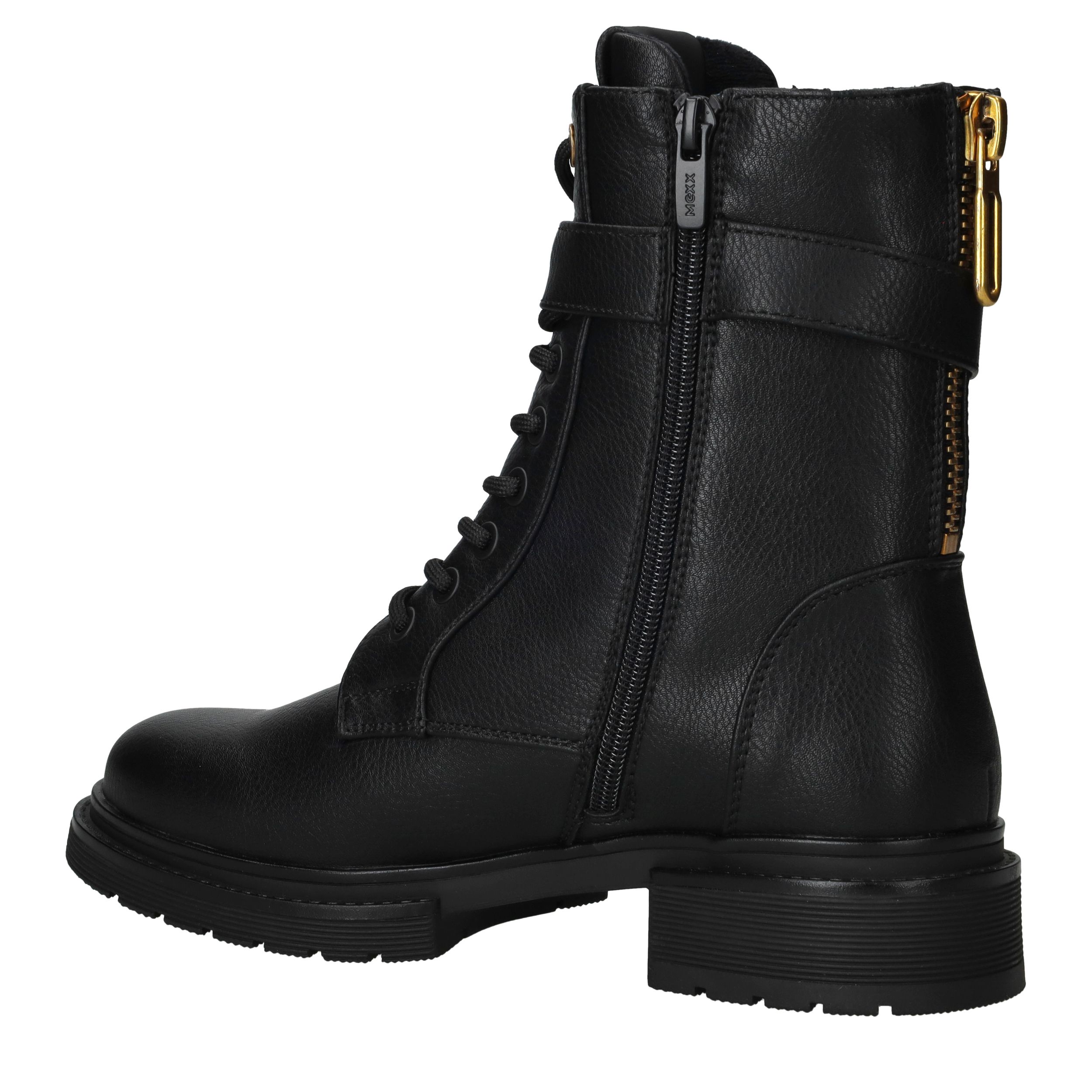 De Mexx Kimberly Glad boots zijn een echte must-have voor dames die houden van stoere en trendy schoenen. Deze zwarte dames boots zijn uitgevoerd in kunstleer en hebben een opvallend gouden M-detail dat de schoen een luxe uitstraling geeft. Dankzij de stevige zool en comfortabele pasvorm zijn ze ideaal voor dagelijks gebruik, of je nu casual of stoer gekleed gaat.