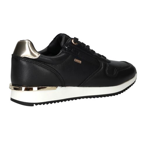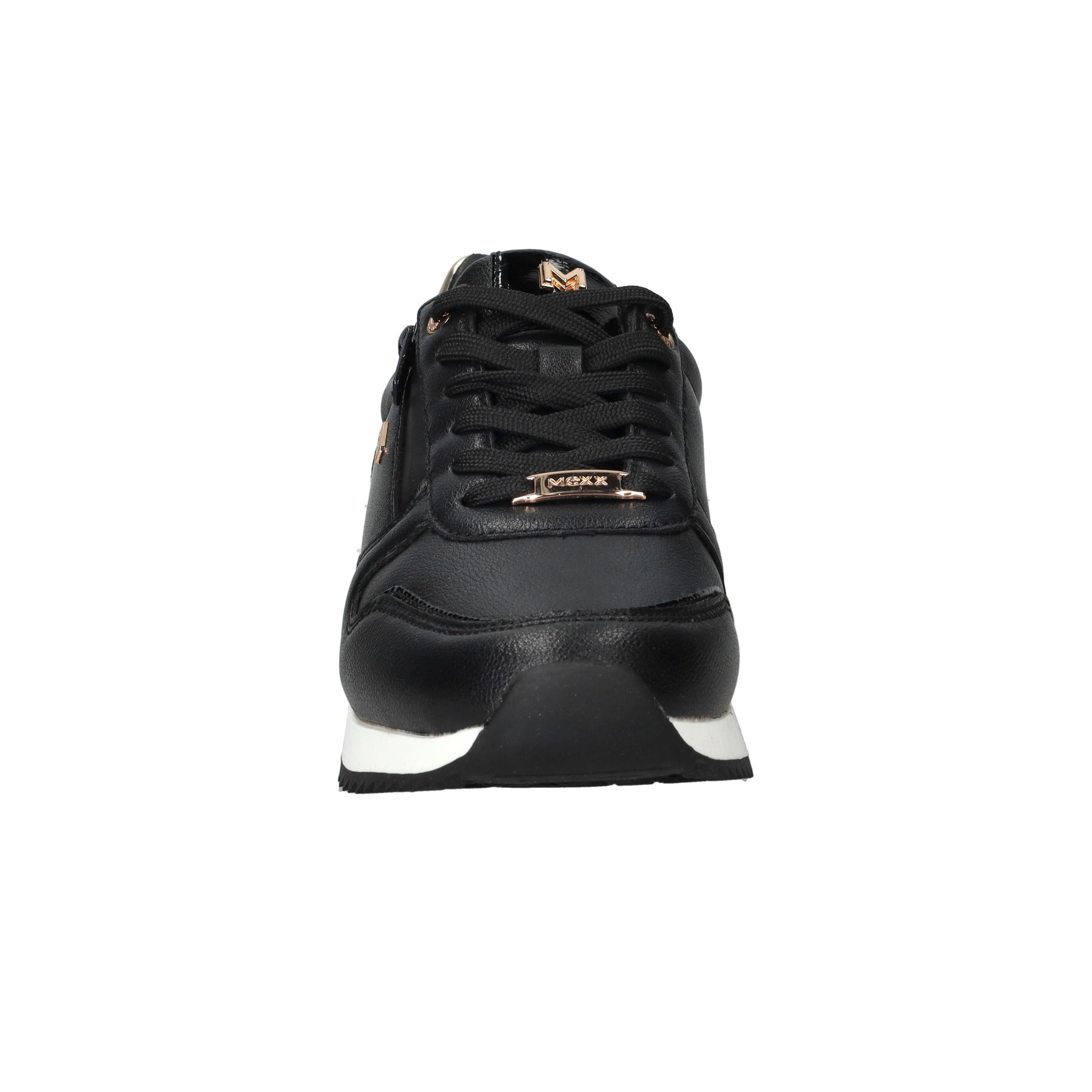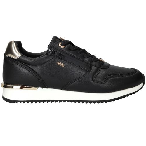 De Mexx Mana Kitch sneaker in het zwart combineert een stijlvolle look met optimaal comfort. Deze sneaker is gemaakt van hoogwaardig kunstleer en is voorzien van een uitneembaar voetbed, waardoor je ook je eigen inlegzolen kunt gebruiken. Dankzij de veter- en ritssluiting trek je de schoen eenvoudig aan en uit.