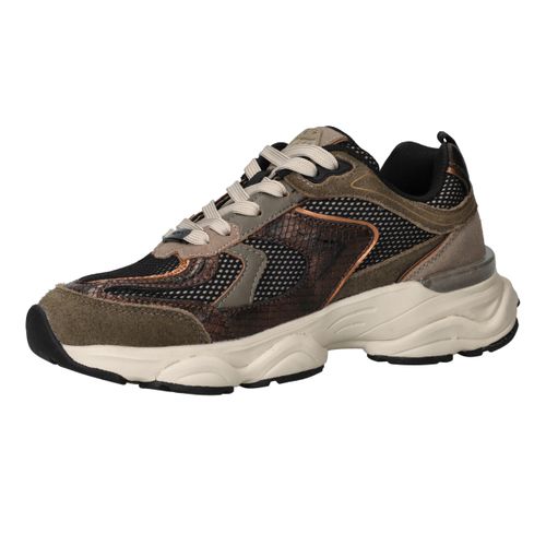 Deze stijlvolle Mexx Norah Komo sneakers combineren sportieve flair met een modieuze twist. Het bovenwerk bestaat uit een verfijnde mix van suède, ademend mesh en een accent in kunstleer. De zachte textielen voering zorgt voor een prettig draagcomfort, perfect voor dames die op zoek zijn naar een combinatie van mode en functionaliteit in een sneaker.
