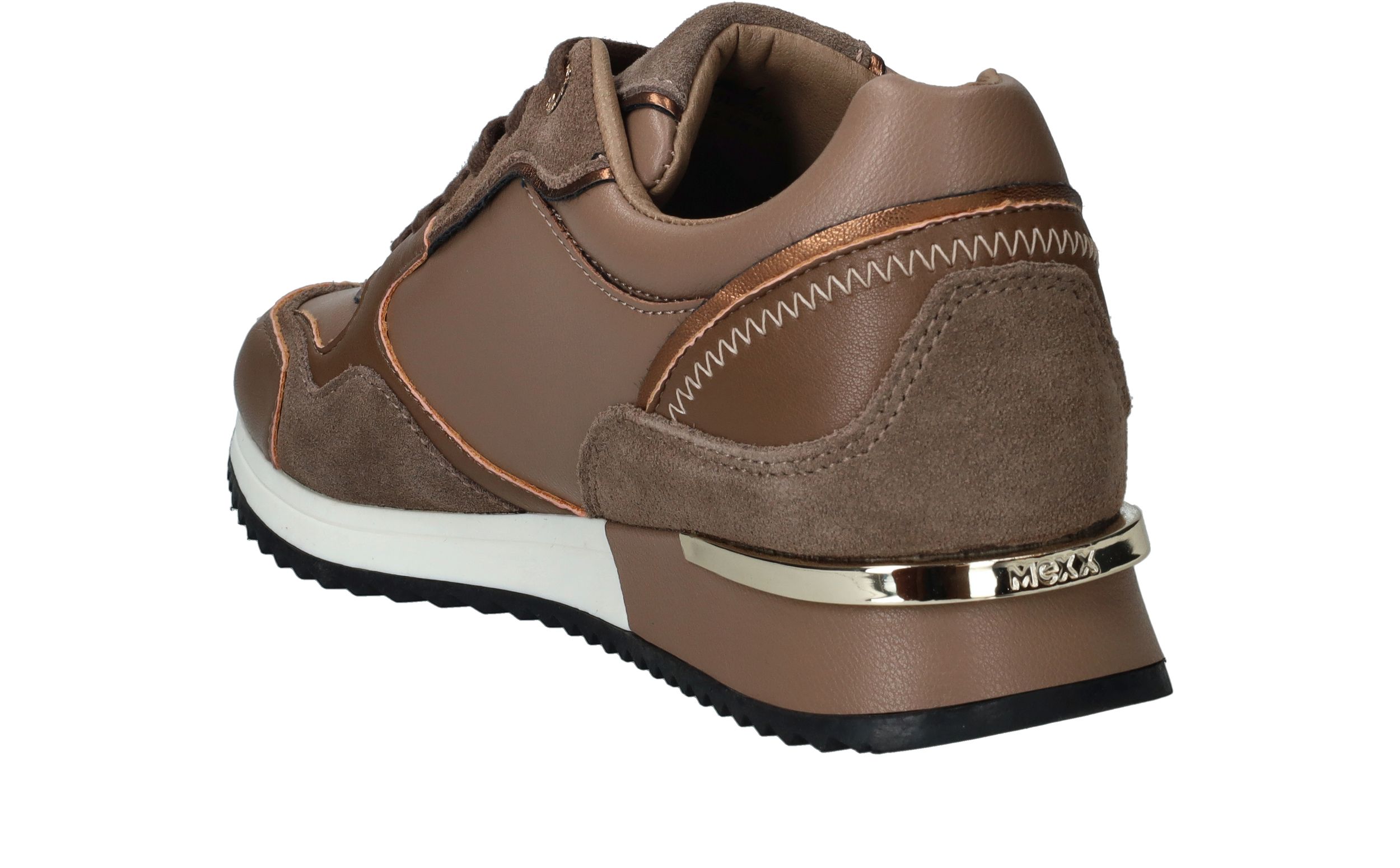 Deze Mexx Plixy Ellen sneaker heeft een zachte taupe kleur en is daarom geschikt om het hele jaar door te dragen. De damessneaker is afgewerkt met bronzen en gouden details.