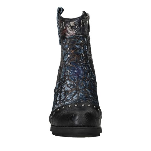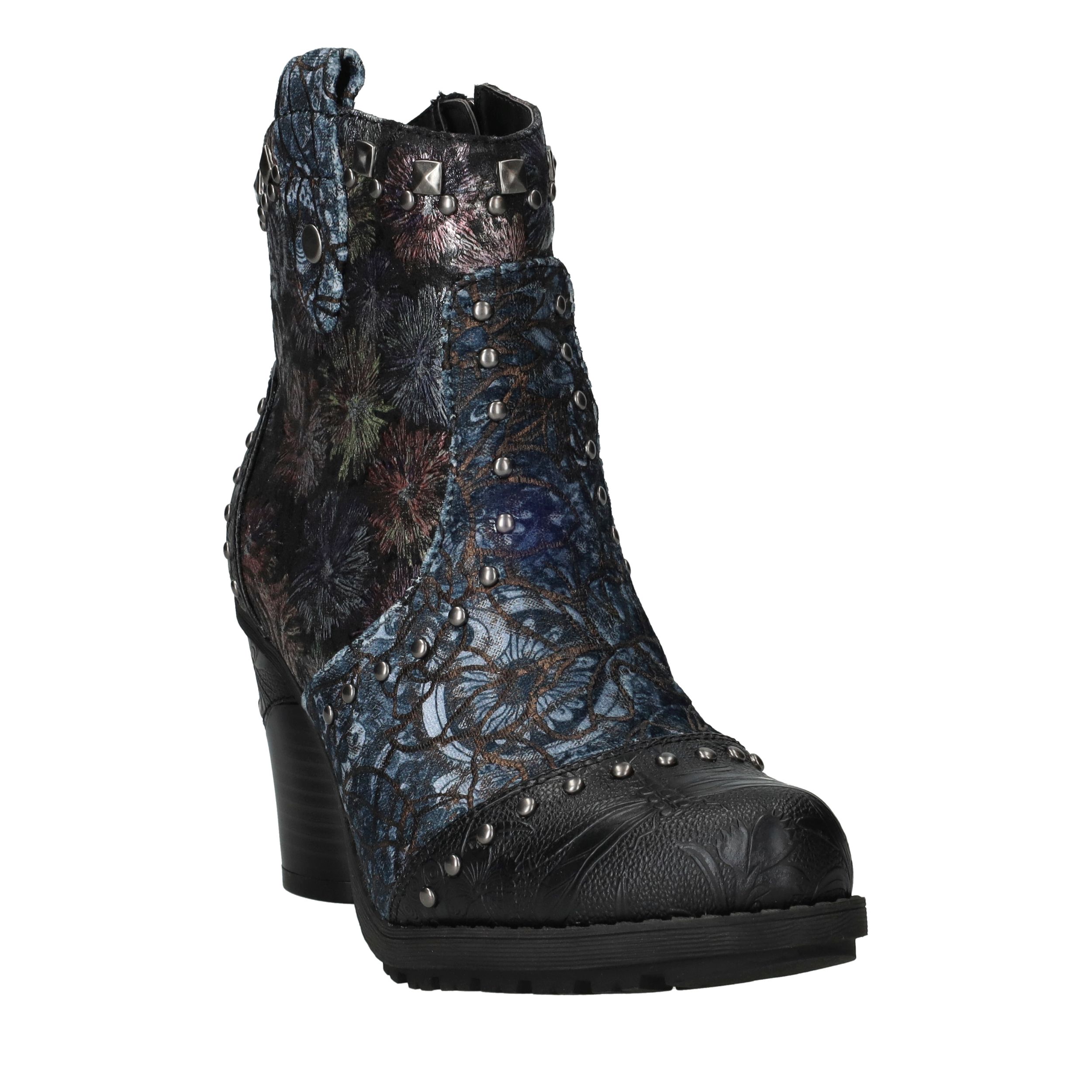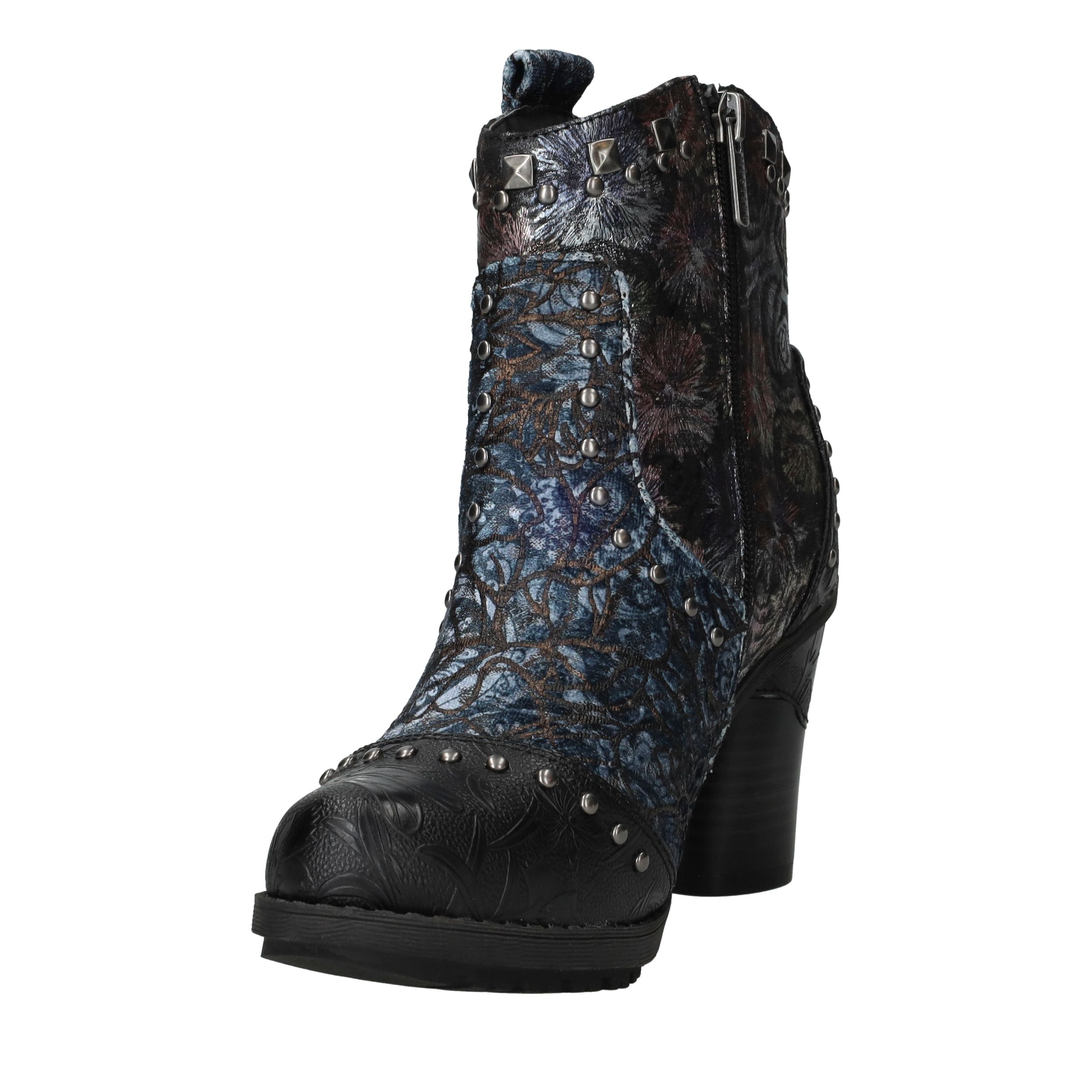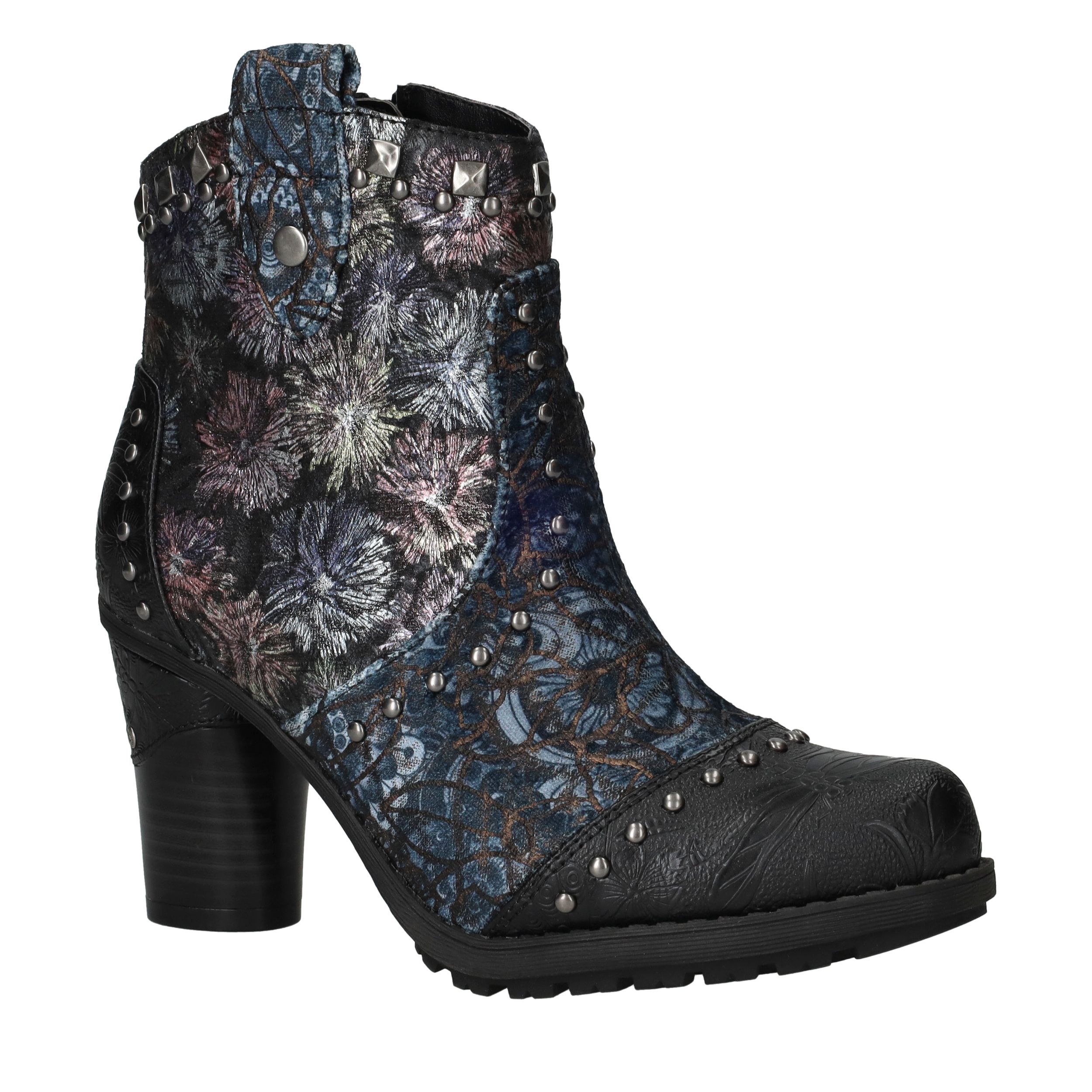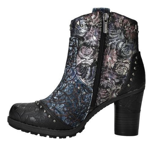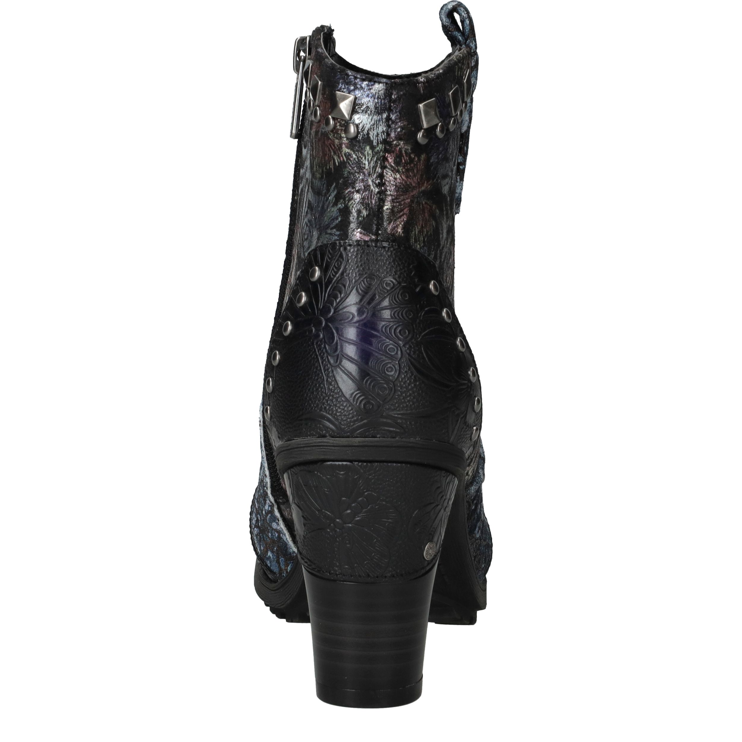 Deze unieke Mustang enkellaarsjes zijn een echte eyecatcher. Het gebruik van kunstleer en textiel geeft de laarsjes een bijzondere uitstraling met veel diepte en detail. De donkergekleurde bloemenprint gecombineerd met stoere studs en een stevige hak maakt ze perfect voor modebewuste dames. Dankzij de comfortabele voetbreedte G geniet je bovendien van een prettige pasvorm.