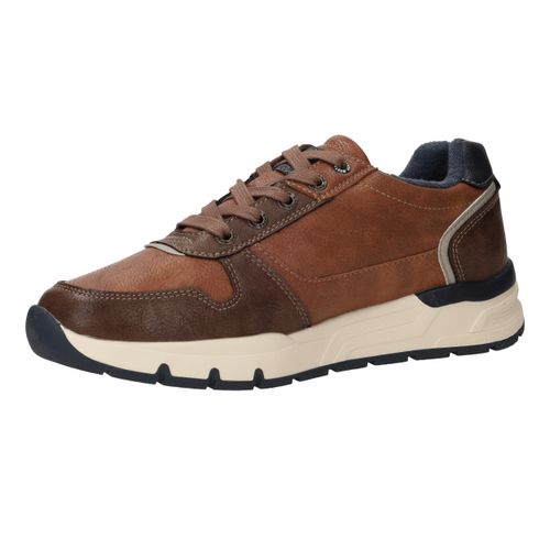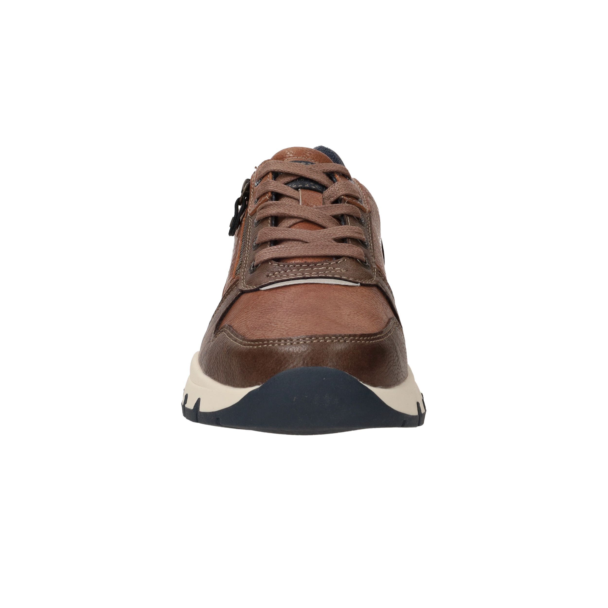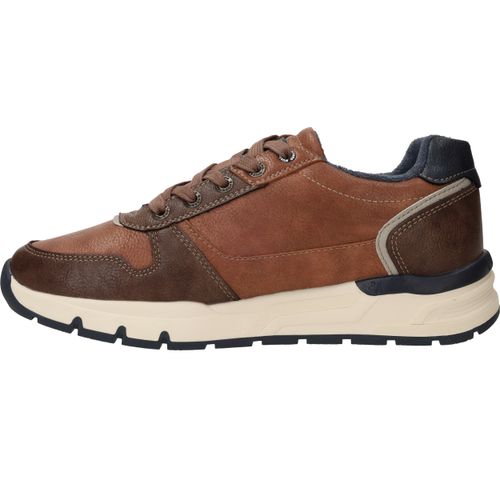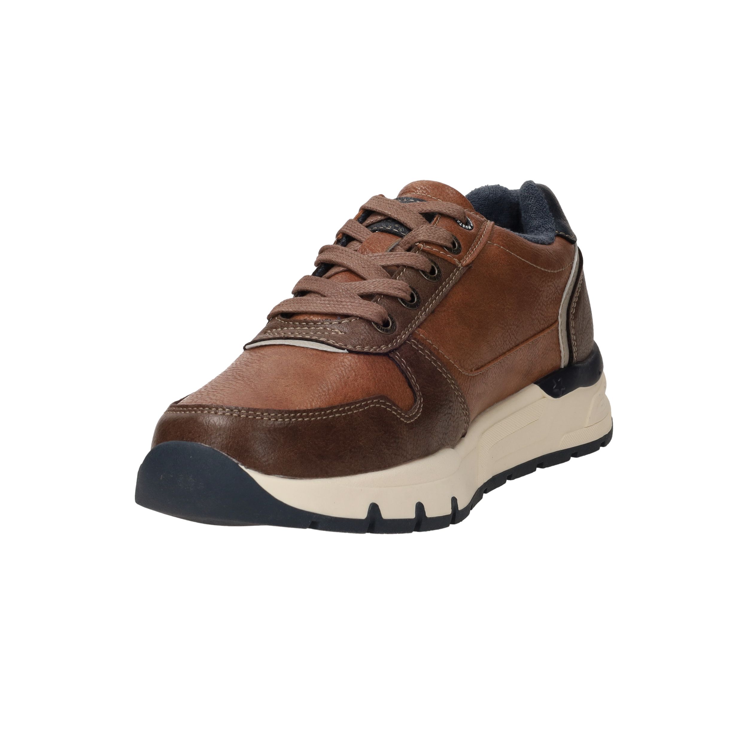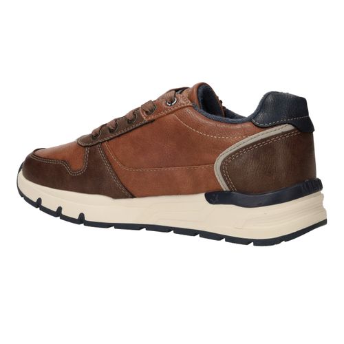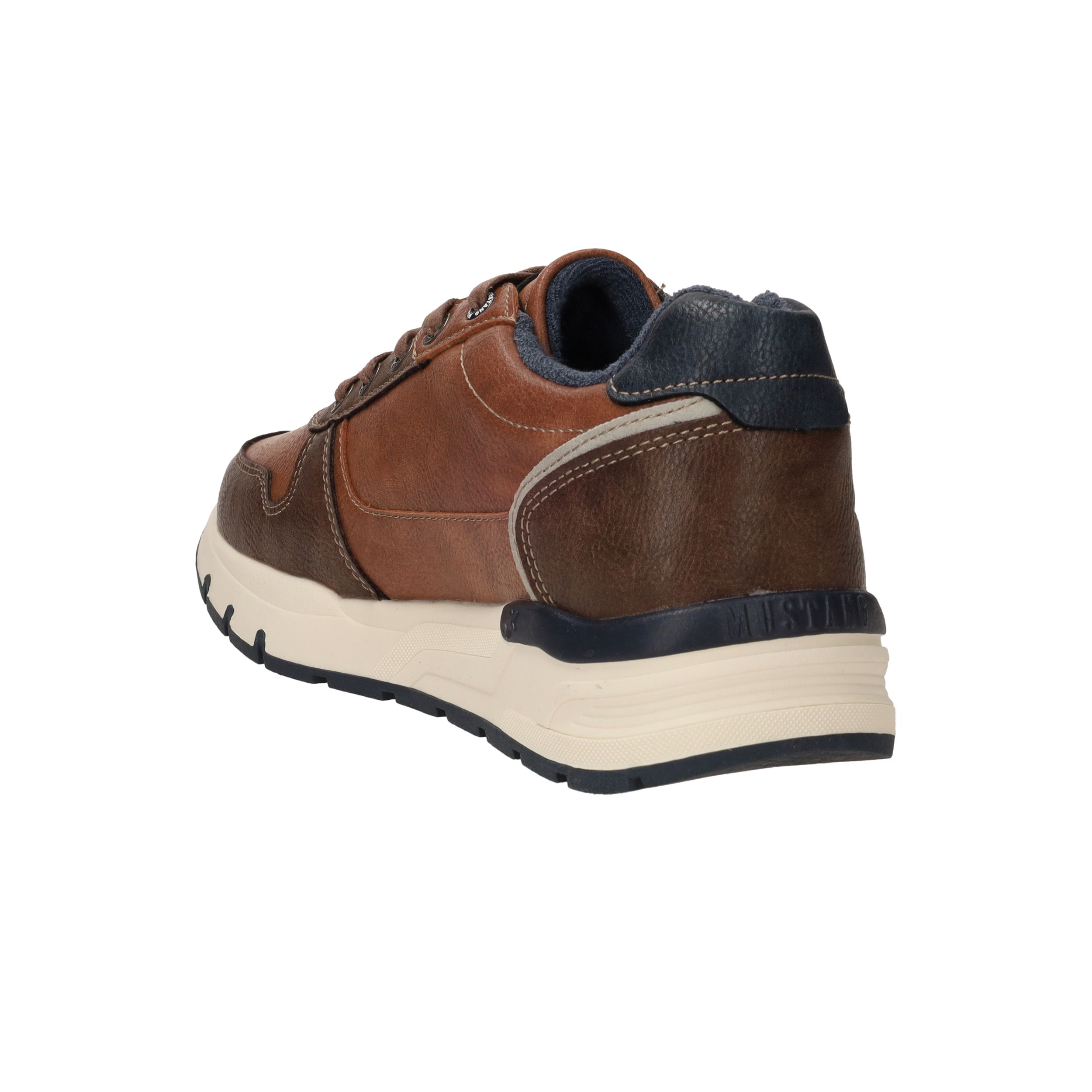Deze sportieve Mustang sneakers in bruin kunstleer combineren stijl met comfort. De donkerblauwe accenten en de stevige witte zool geven de schoenen een moderne uitstraling. Dankzij de comfortabele voetbreedte G zitten ze perfect, ook bij dagelijks gebruik. Ideaal voor heren die houden van een casual maar verzorgde look.