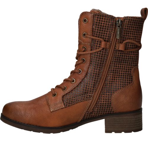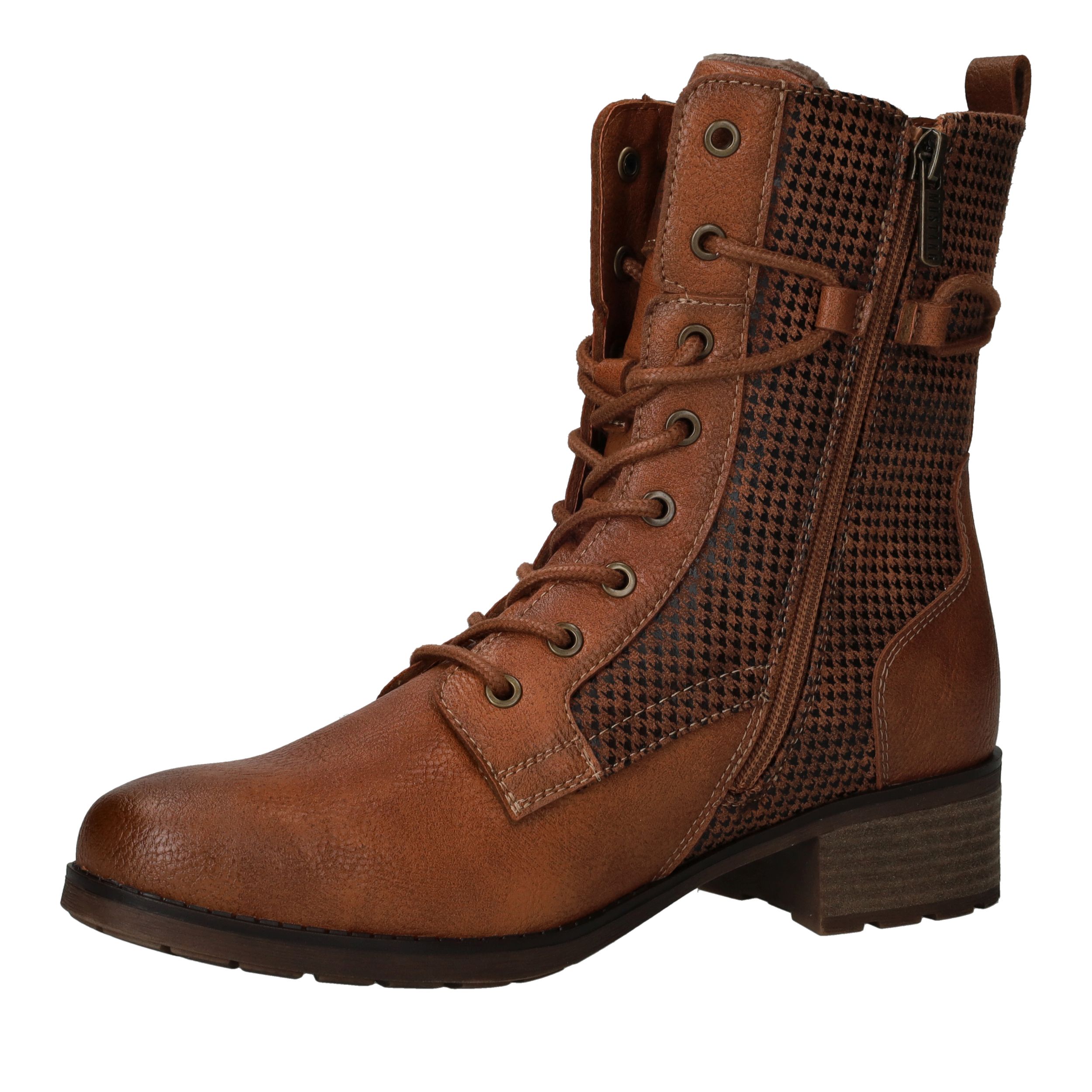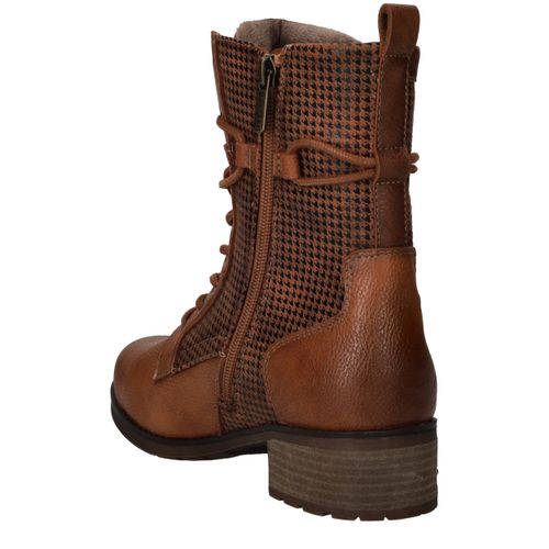 Deze stoere Mustang veterboot voor dames combineert een trendy look met praktisch draagcomfort. Het bovenwerk is vervaardigd uit hoogwaardig kunstleer in combinatie met stevig textiel, wat de schoen een moderne en eigentijdse uitstraling geeft. De warme textielen voering zorgt ervoor dat je voeten behaaglijk warm blijven tijdens koude dagen, waardoor deze boots ideaal zijn voor het najaar en de winter.