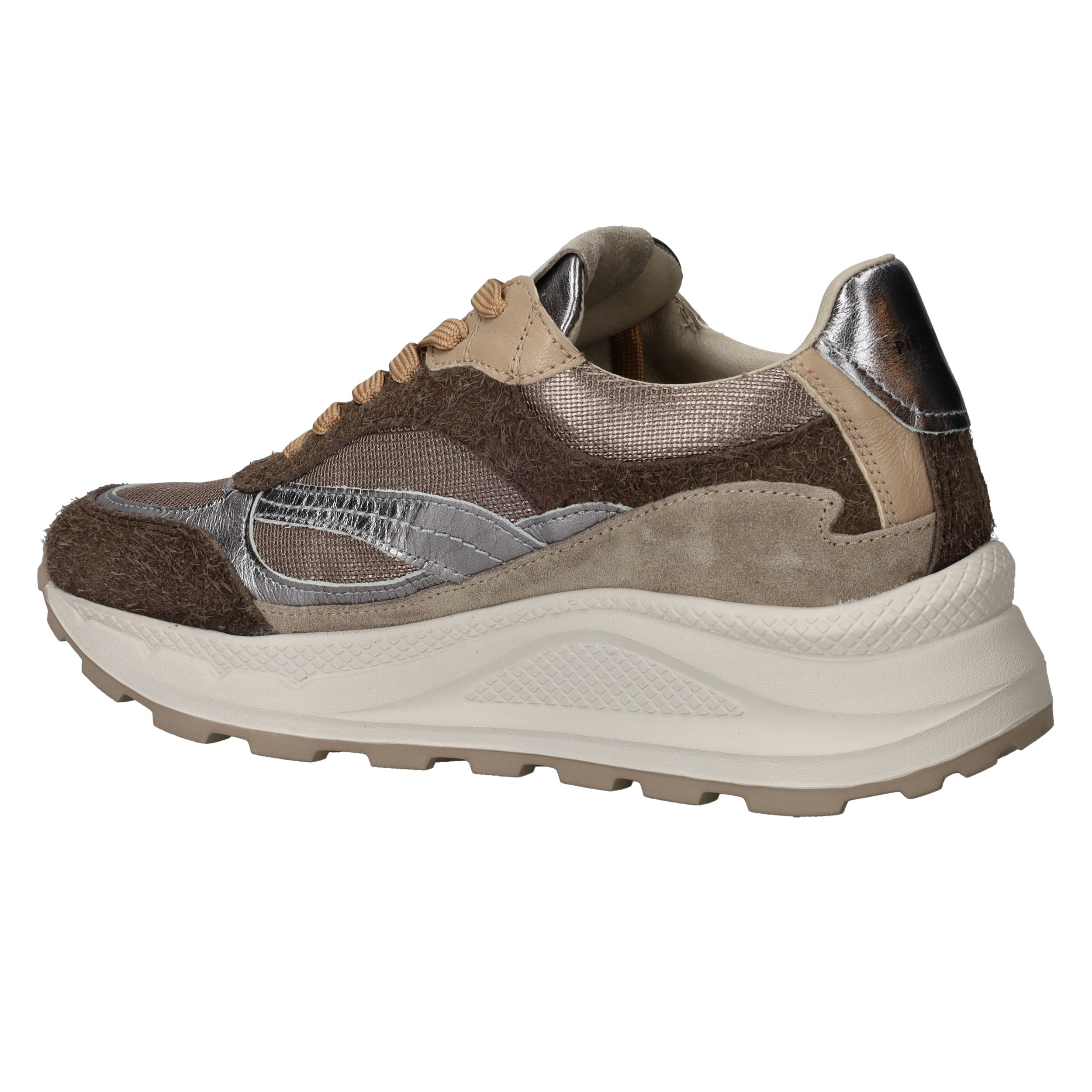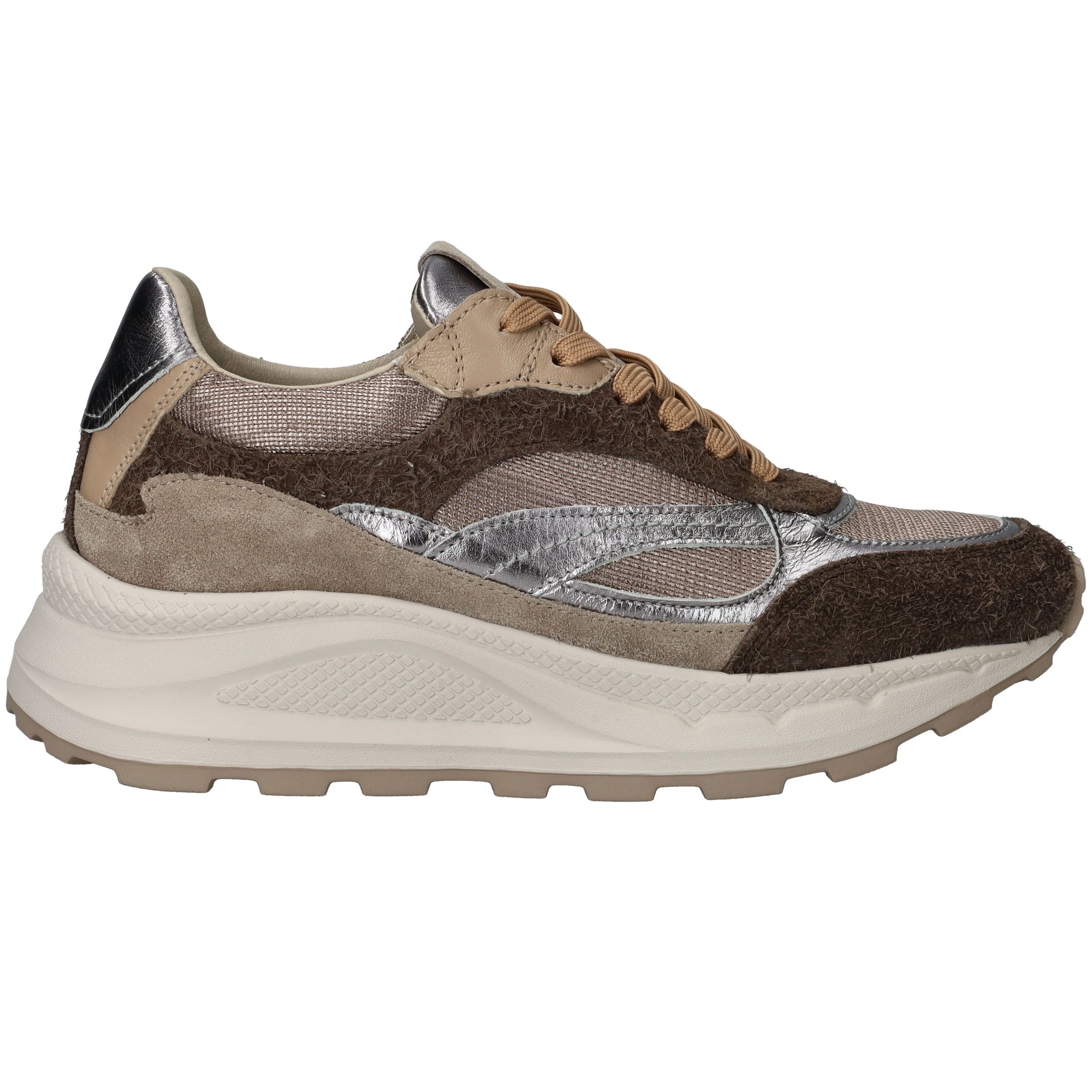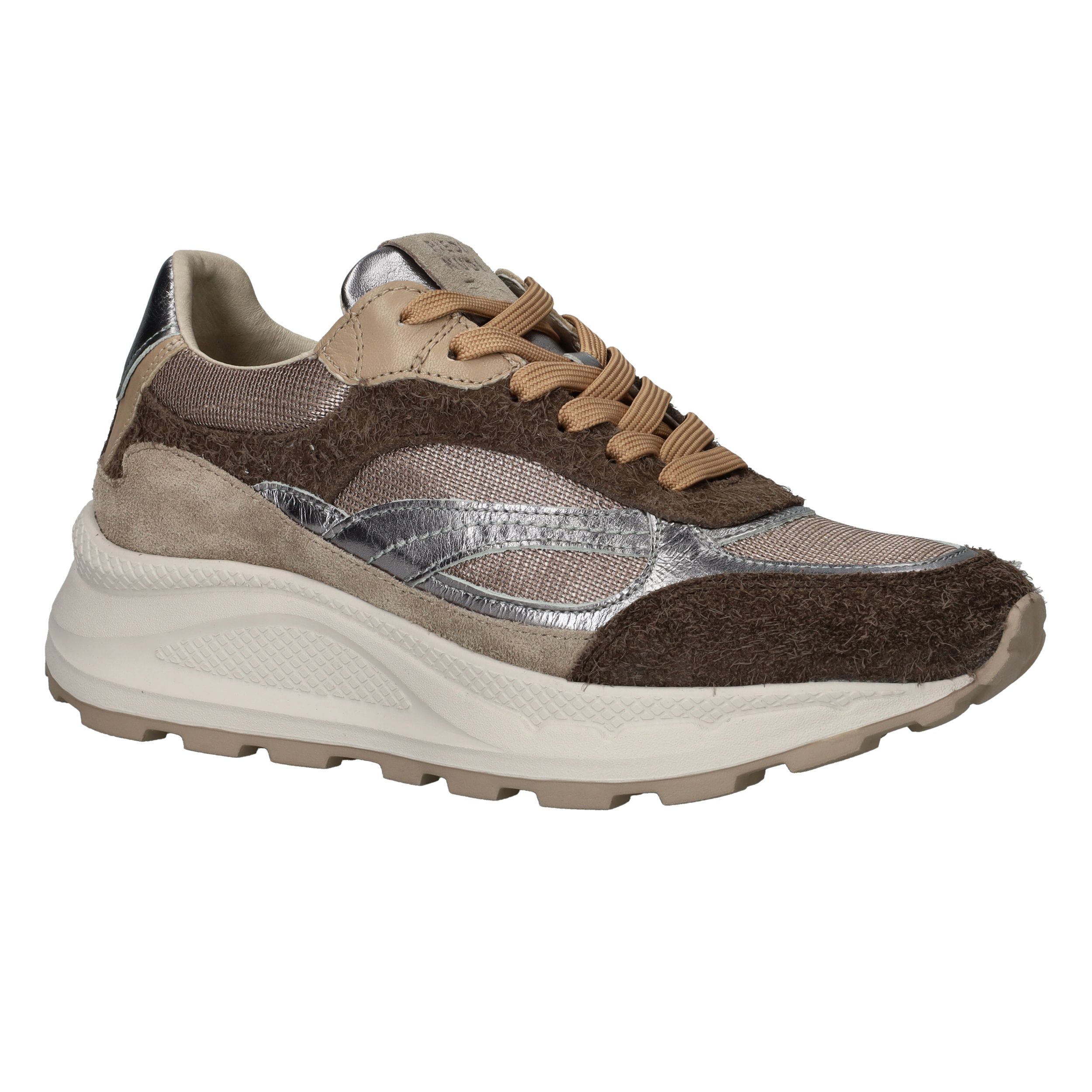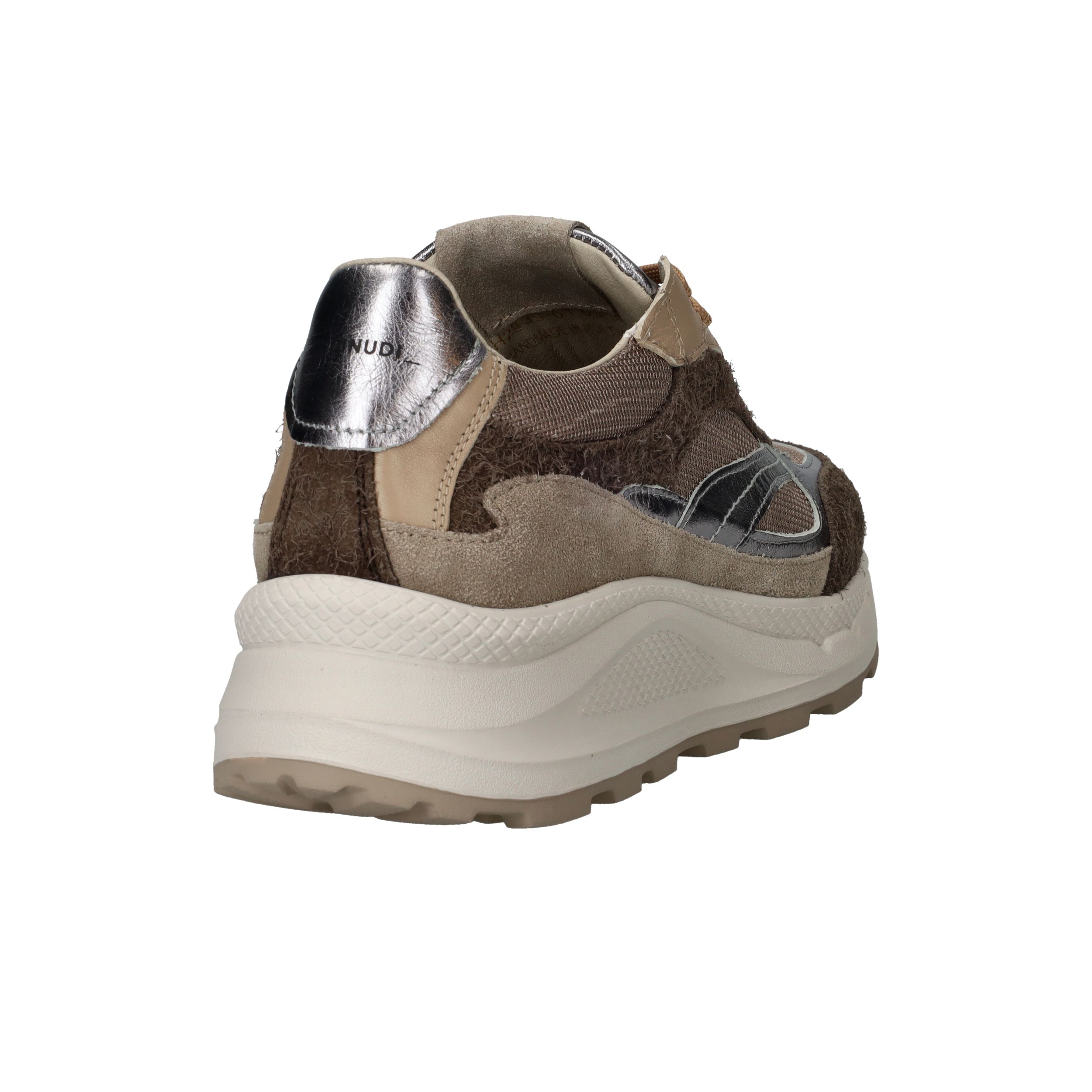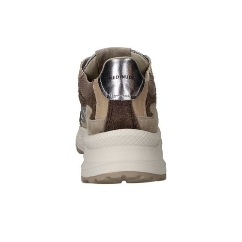 Deze Piedi Nudi damessneaker is uitgevoerd in beige met accenten van suède, metallic en textiel. De sneaker heeft voetwijdte H en is voorzien van een uitneembaar voetbed. Ideaal te combineren met een sportieve of casual outfit.