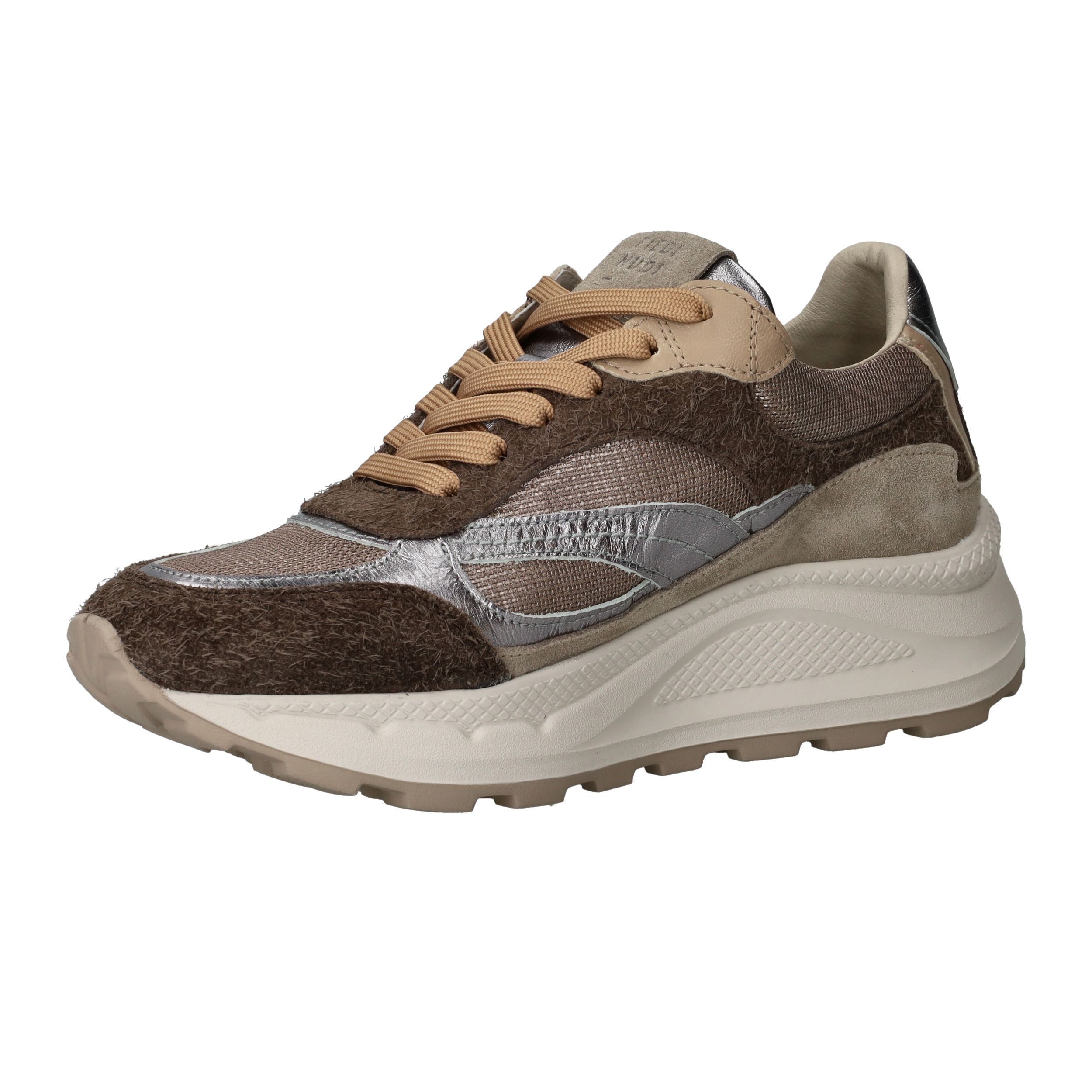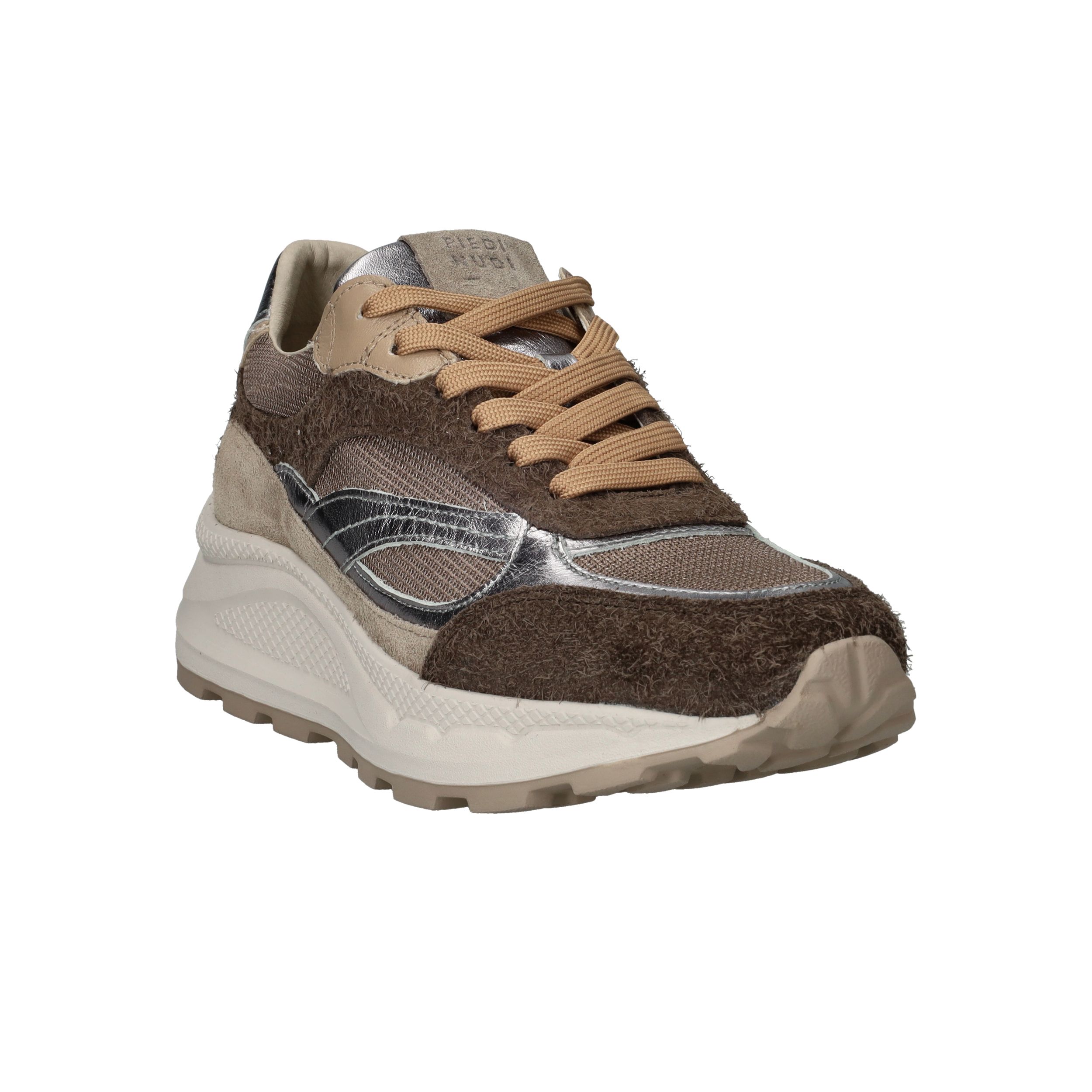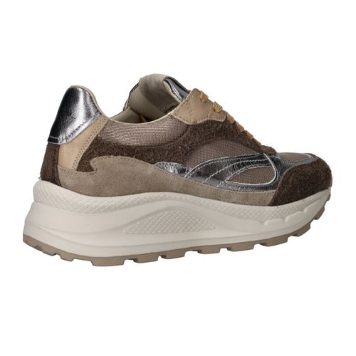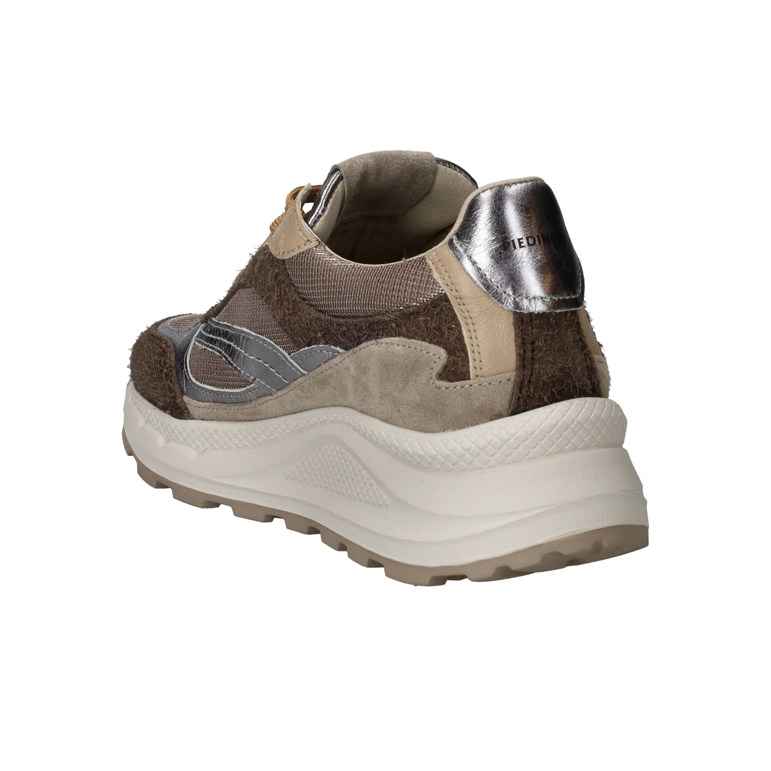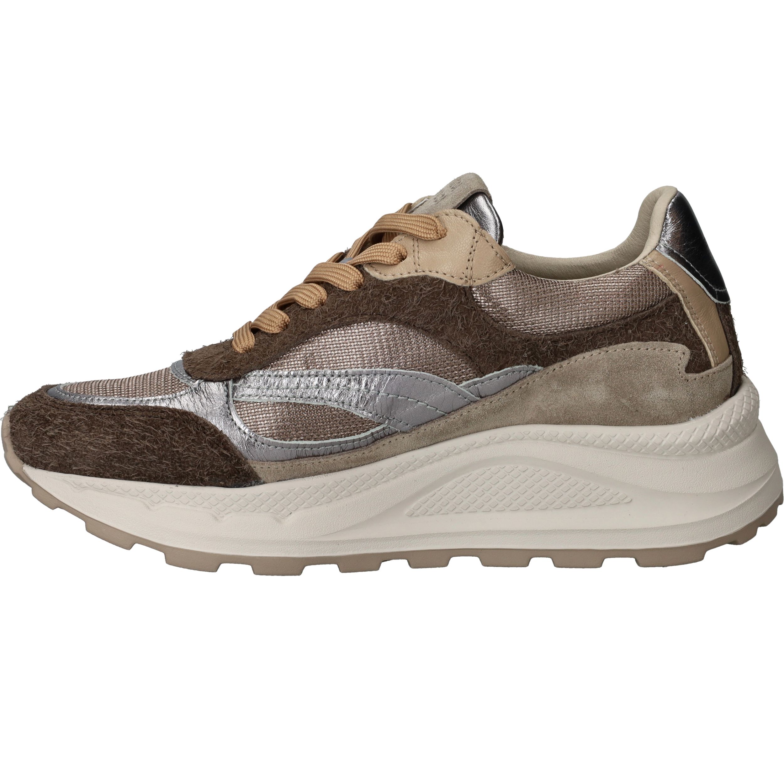 Deze Piedi Nudi damessneaker is uitgevoerd in beige met accenten van suède, metallic en textiel. De sneaker heeft voetwijdte H en is voorzien van een uitneembaar voetbed. Ideaal te combineren met een sportieve of casual outfit.