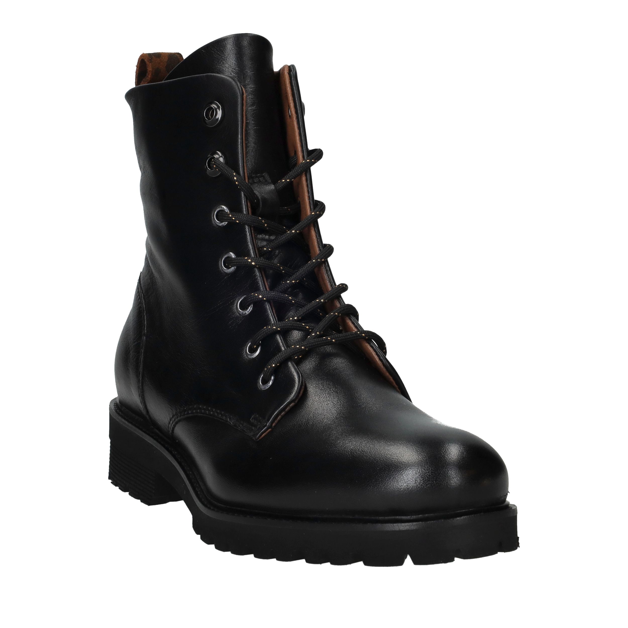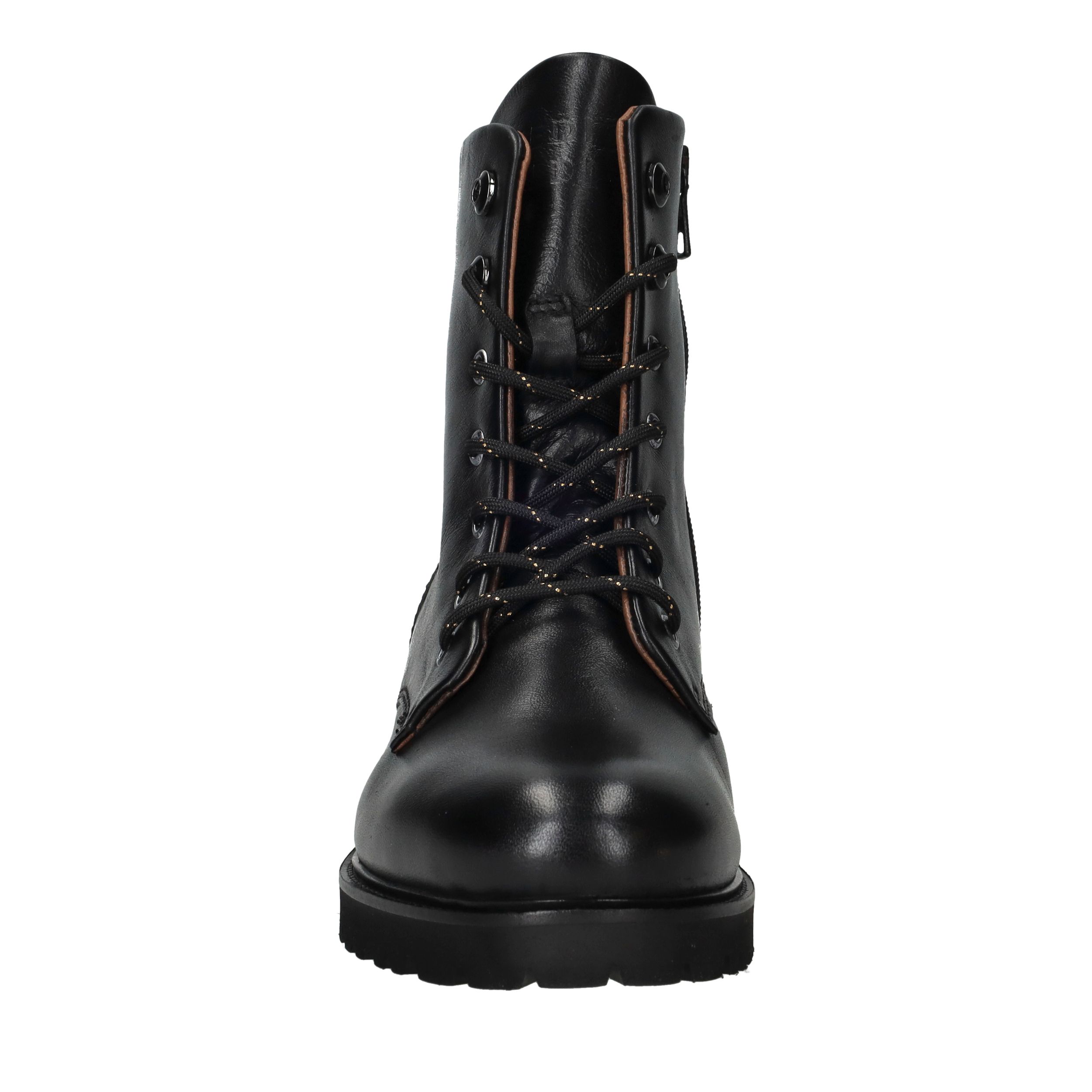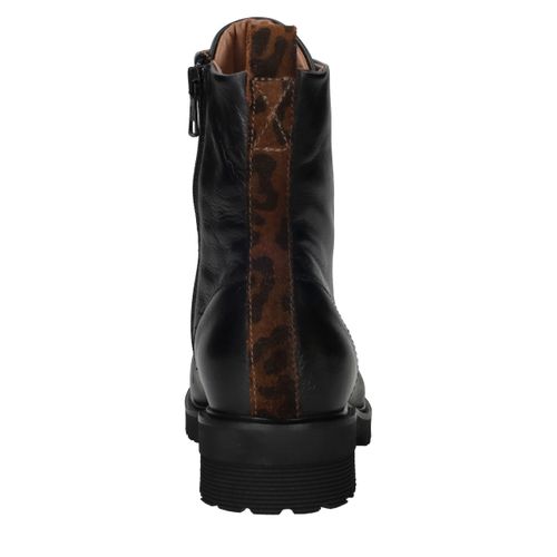 Deze Piedi Nudi veterboot is volledig uitgevoerd in zwart glad leer. Dankzij de combinatie van veters én rits trek je de boot makkelijk aan en uit. De H-wijdte en het voorgevormde, uitneembare voetbed zorgen voor extra draagcomfort, ook als je eigen inlegzolen wilt gebruiken.