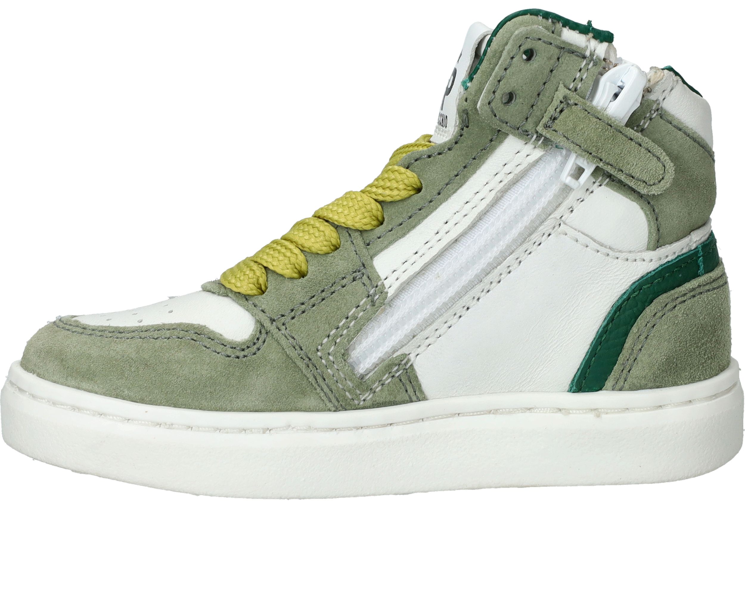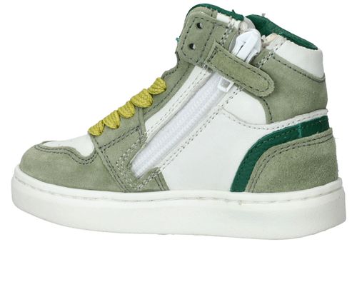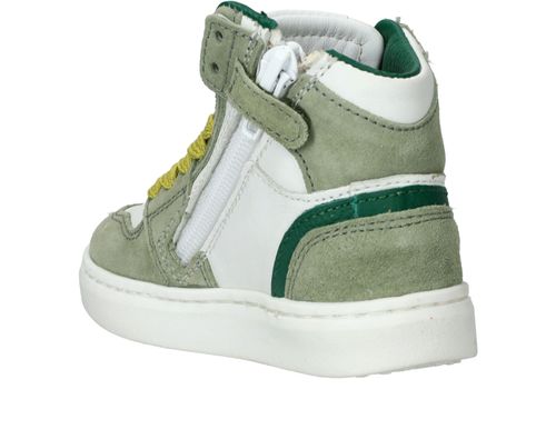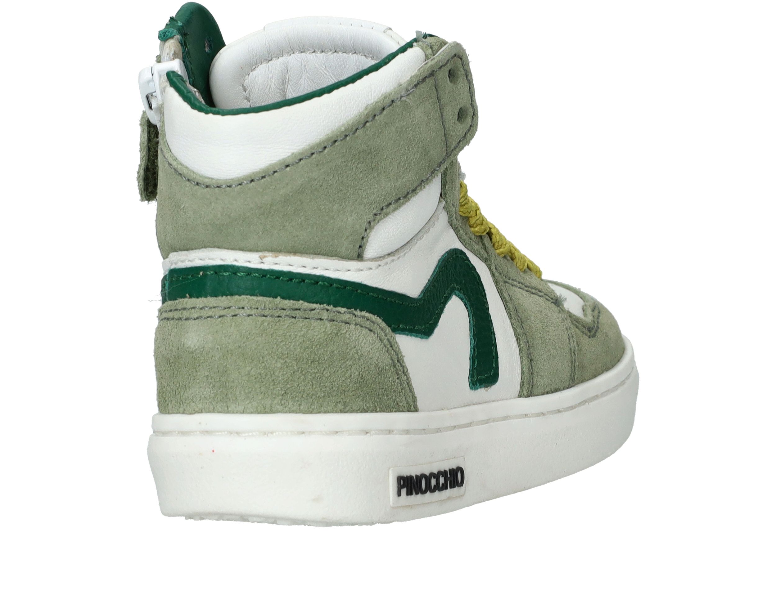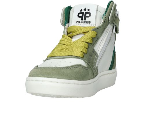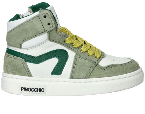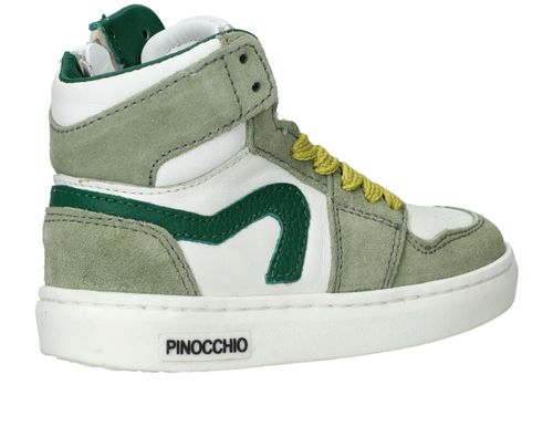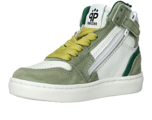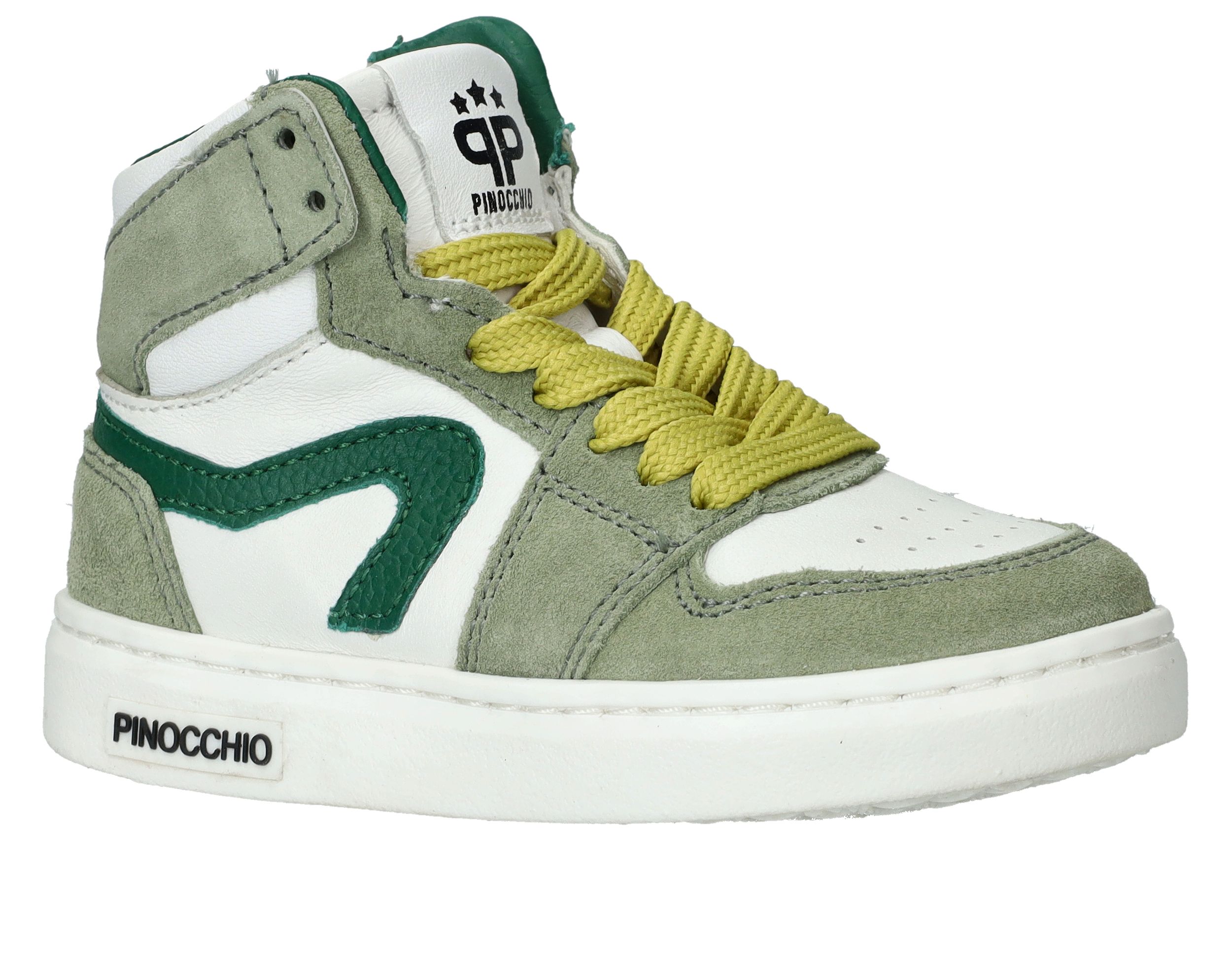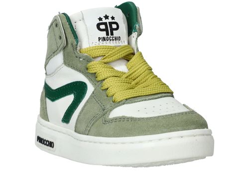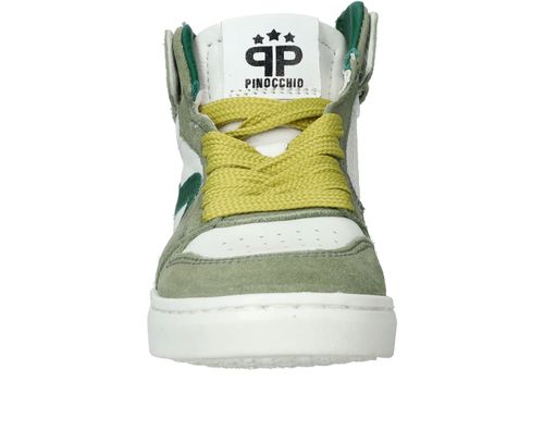 Dit stevige Pinocchio veterschoentje is helemaal gemaakt van leer. De witte sneaker voor jongens heeft mooie groene accenten en een toffe groene veter.