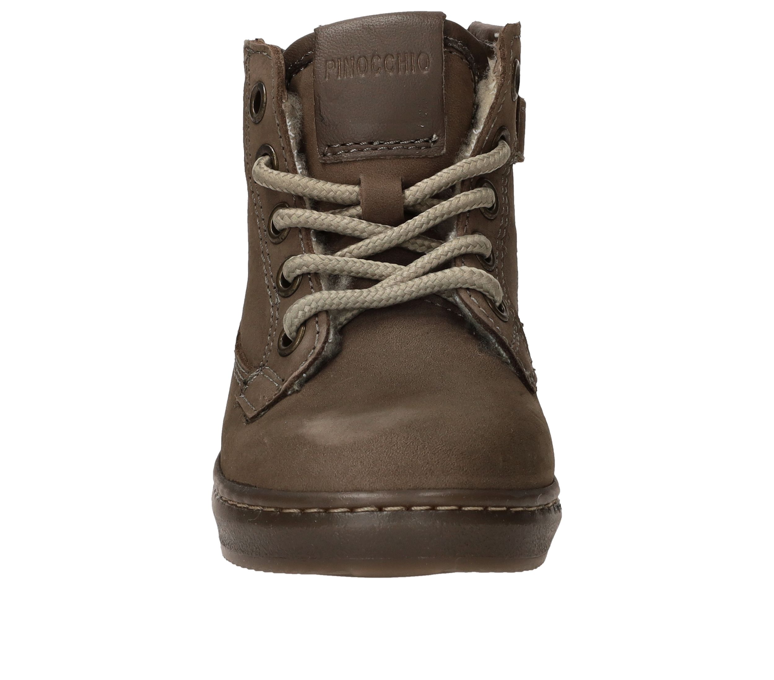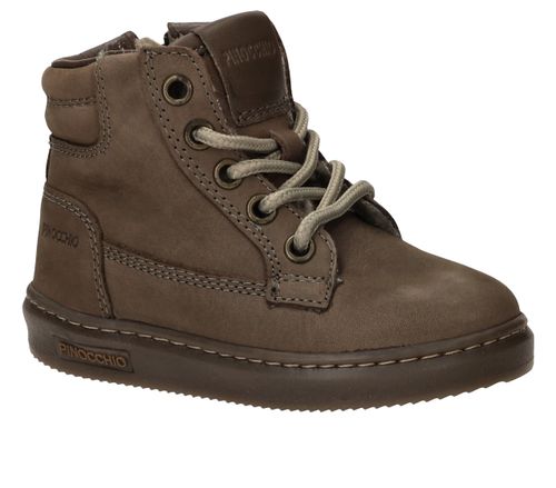 Zoek je een stevige warmgevoerde veterboot? Ga dan voor deze Pinocchio jongensschoen in een mooie khaki groene kleur en helemaal gemaakt van leer.
