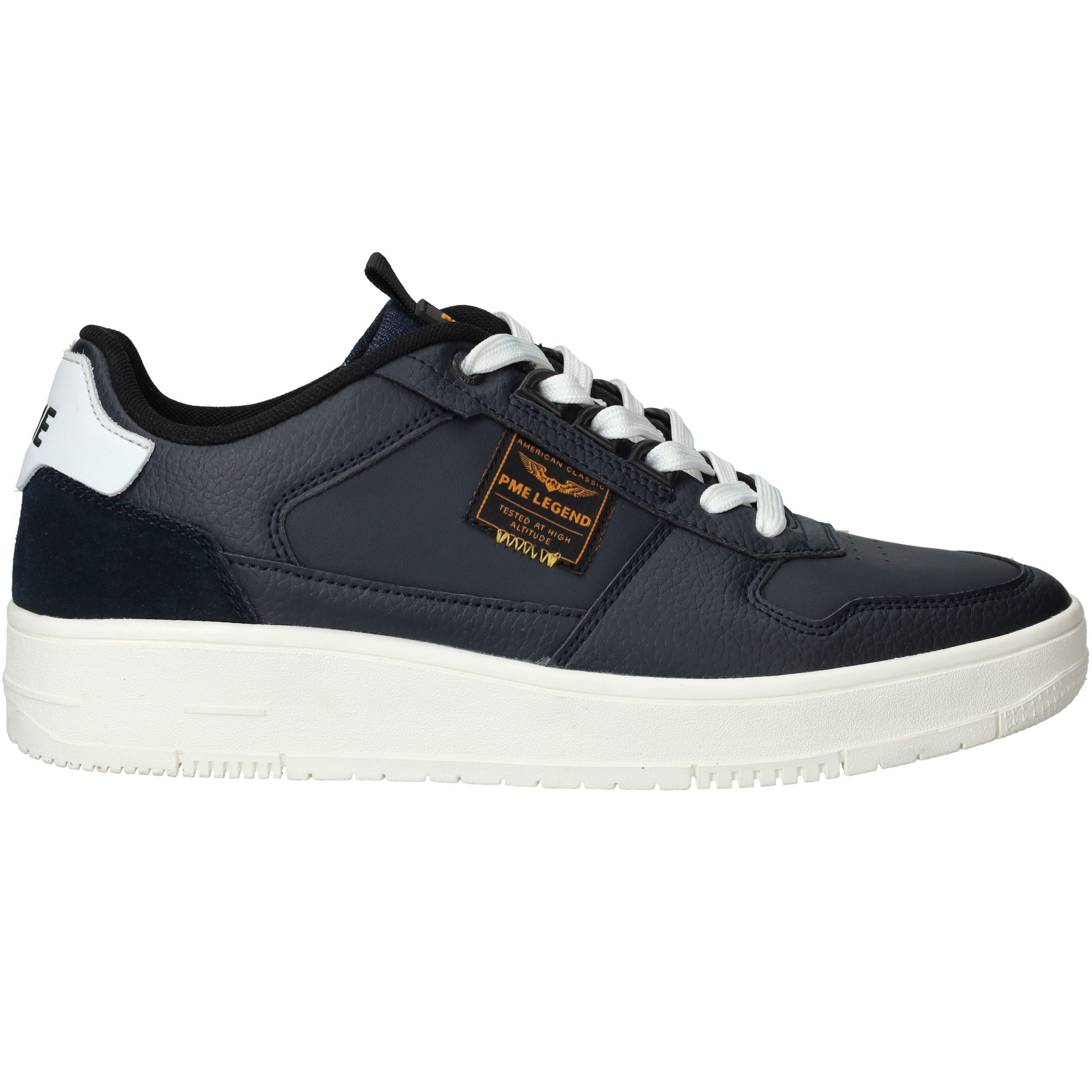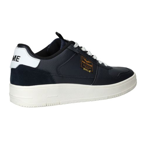 Deze stoere heren sneakers van PME Legend zijn een must-have voor liefhebbers van sportieve stijl met een robuuste uitstraling. De Gobbler is uitgevoerd in donkerblauw leer en heeft een stevige witte zool voor een modern contrast. Dankzij de textiele voering en normale voetbreedte G zit deze sneaker comfortabel vanaf het eerste moment.