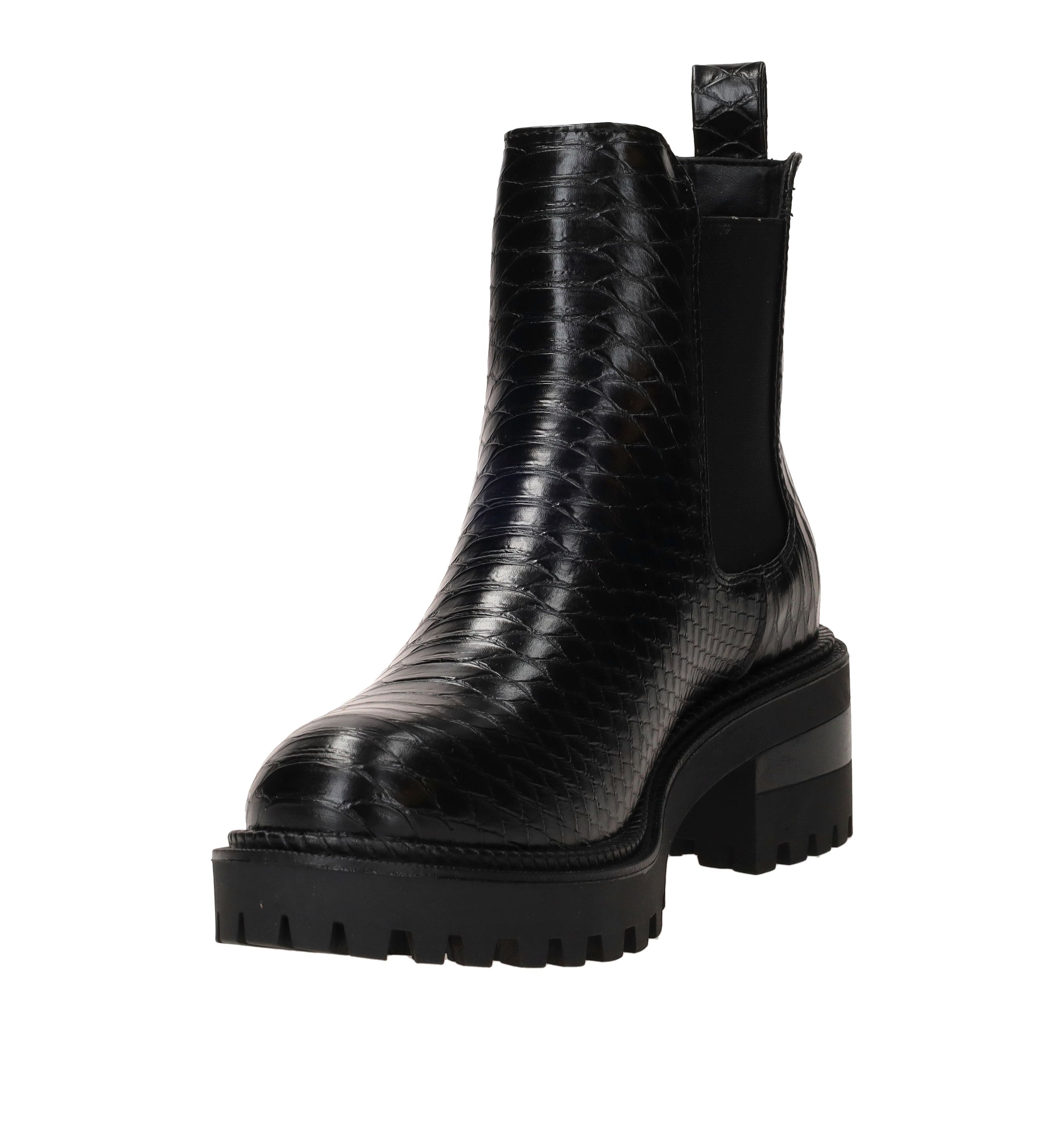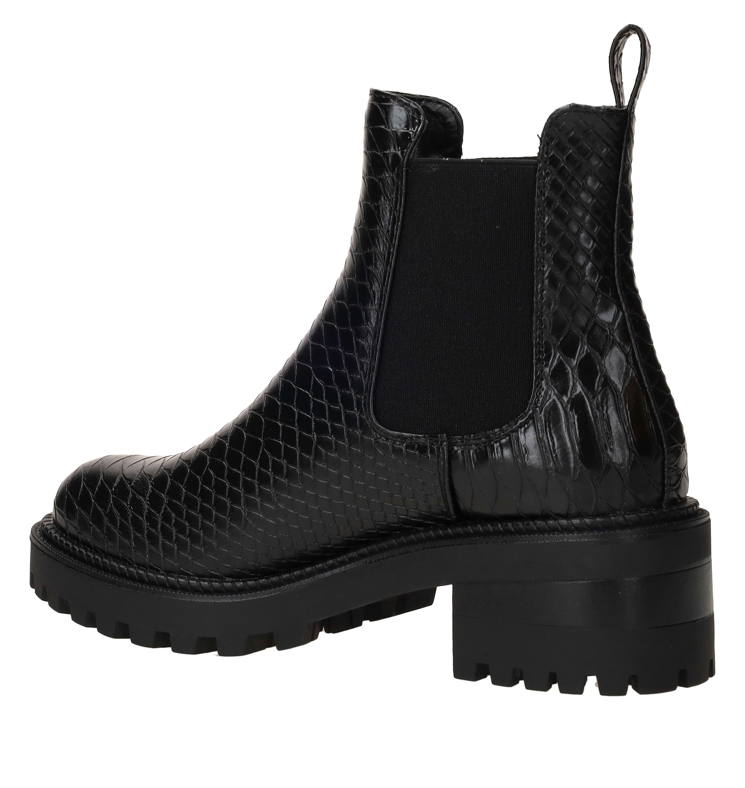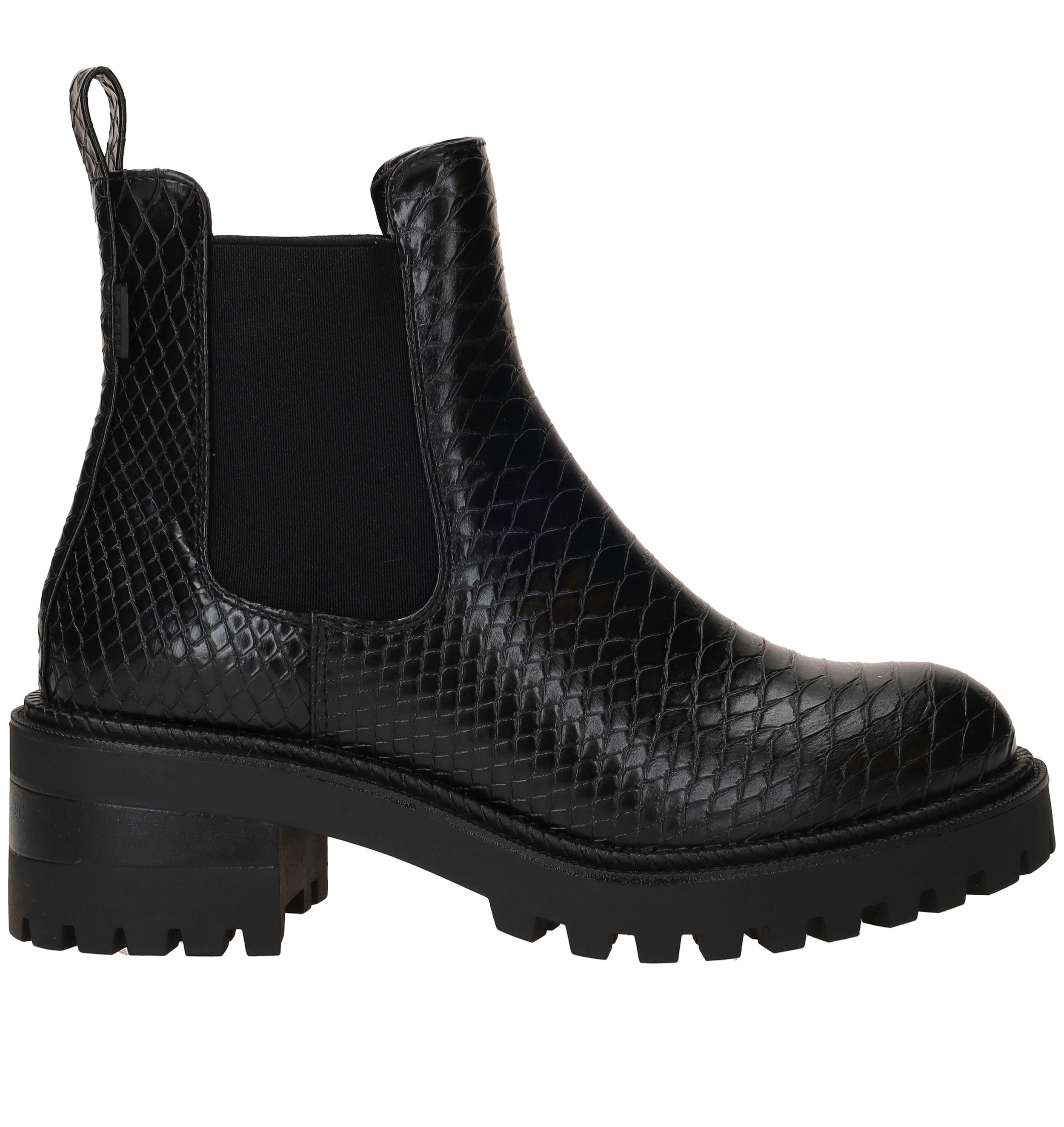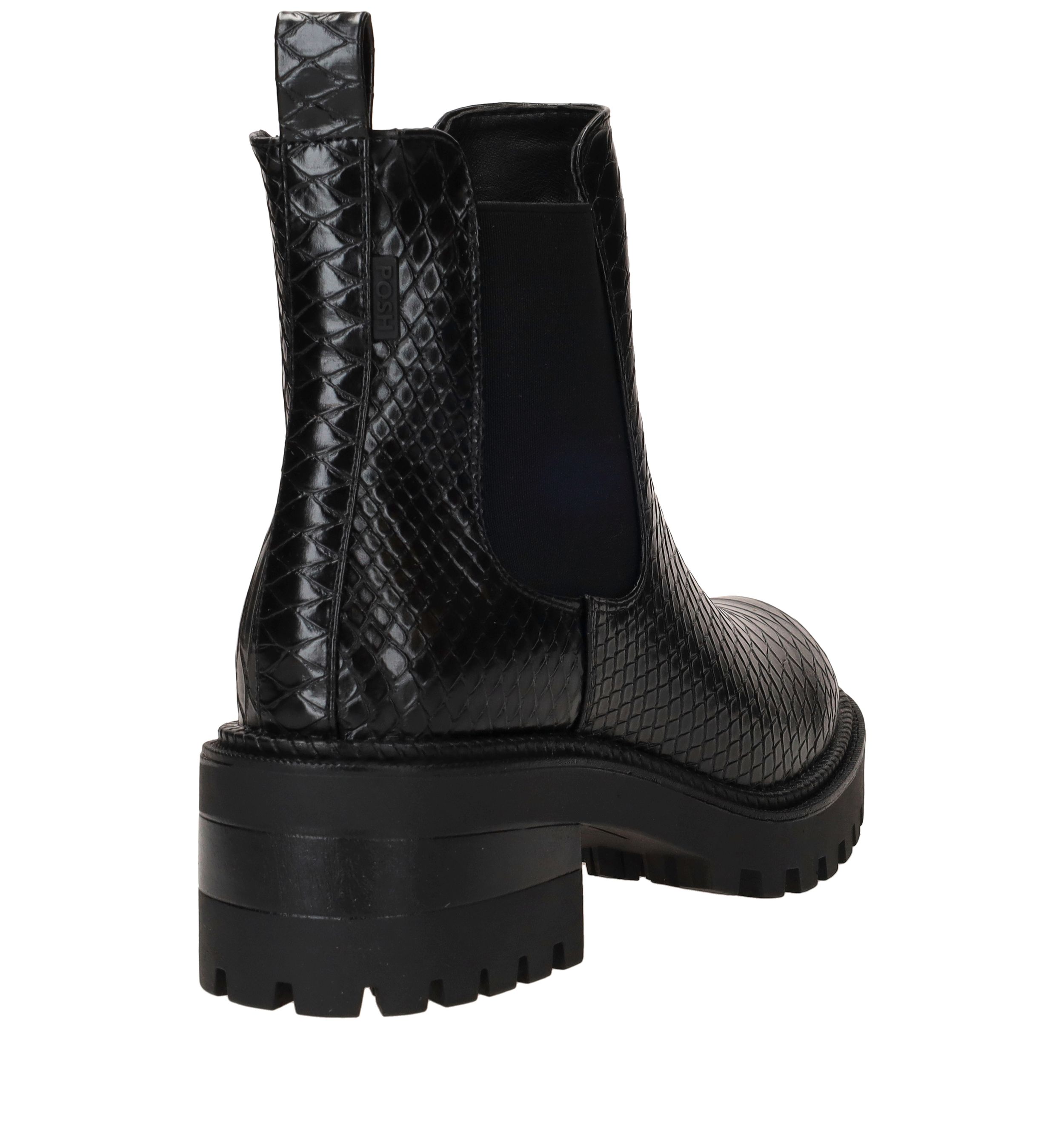 Gave zwarte POSH By Poelman chelseaboot voor dames. De chelseaboot heeft een dierenprint en robuuste zool.