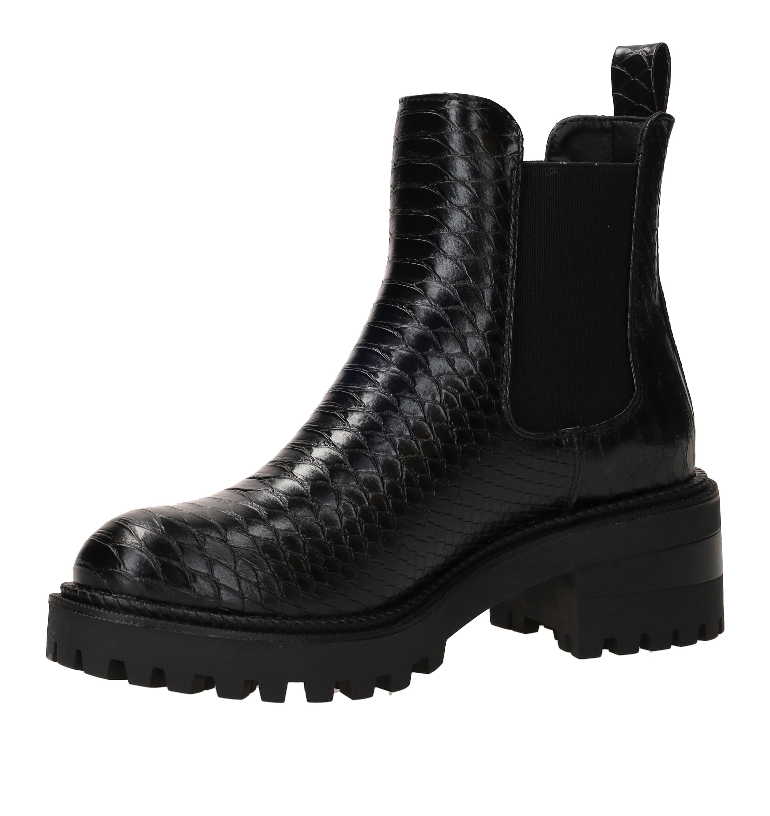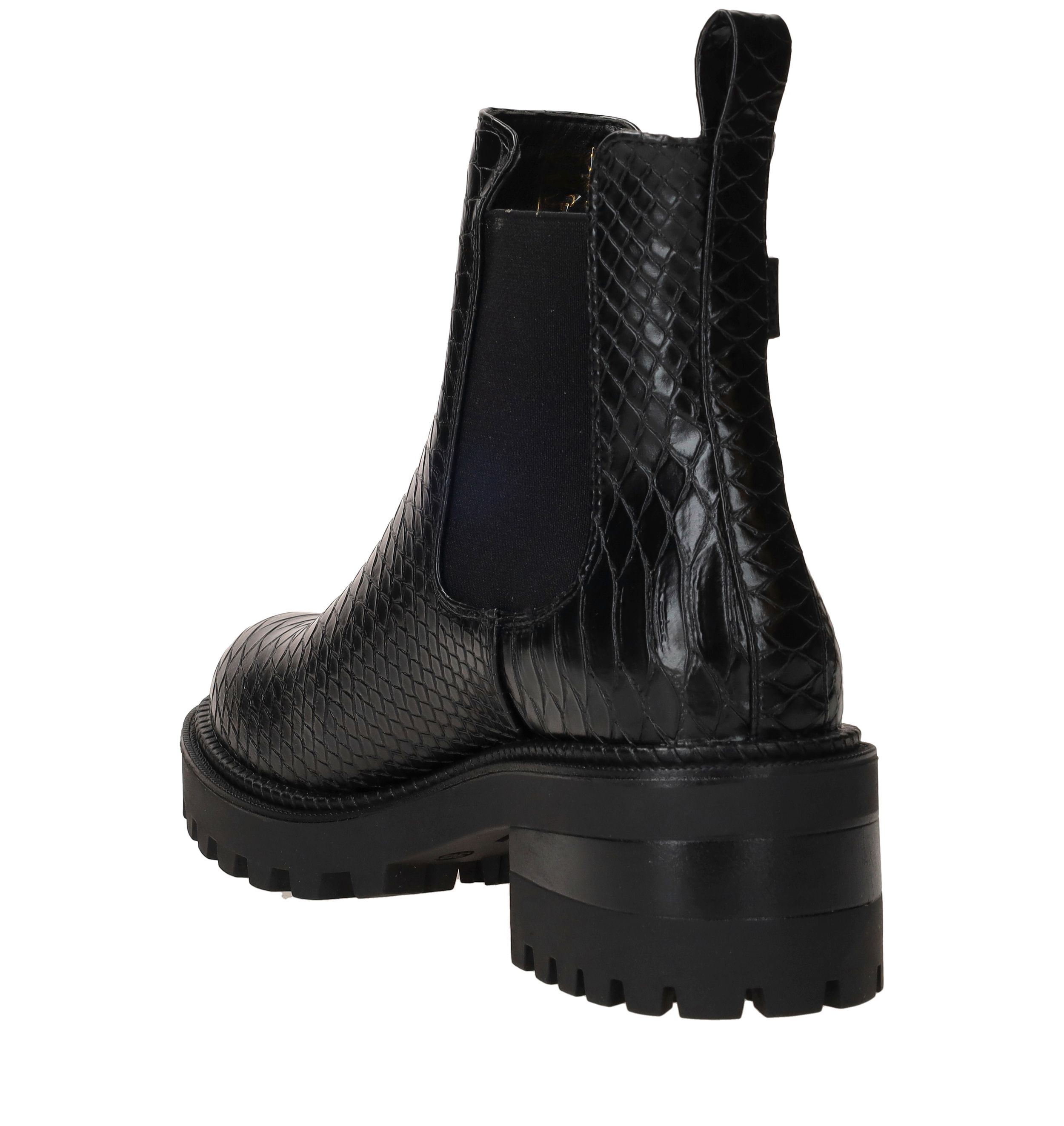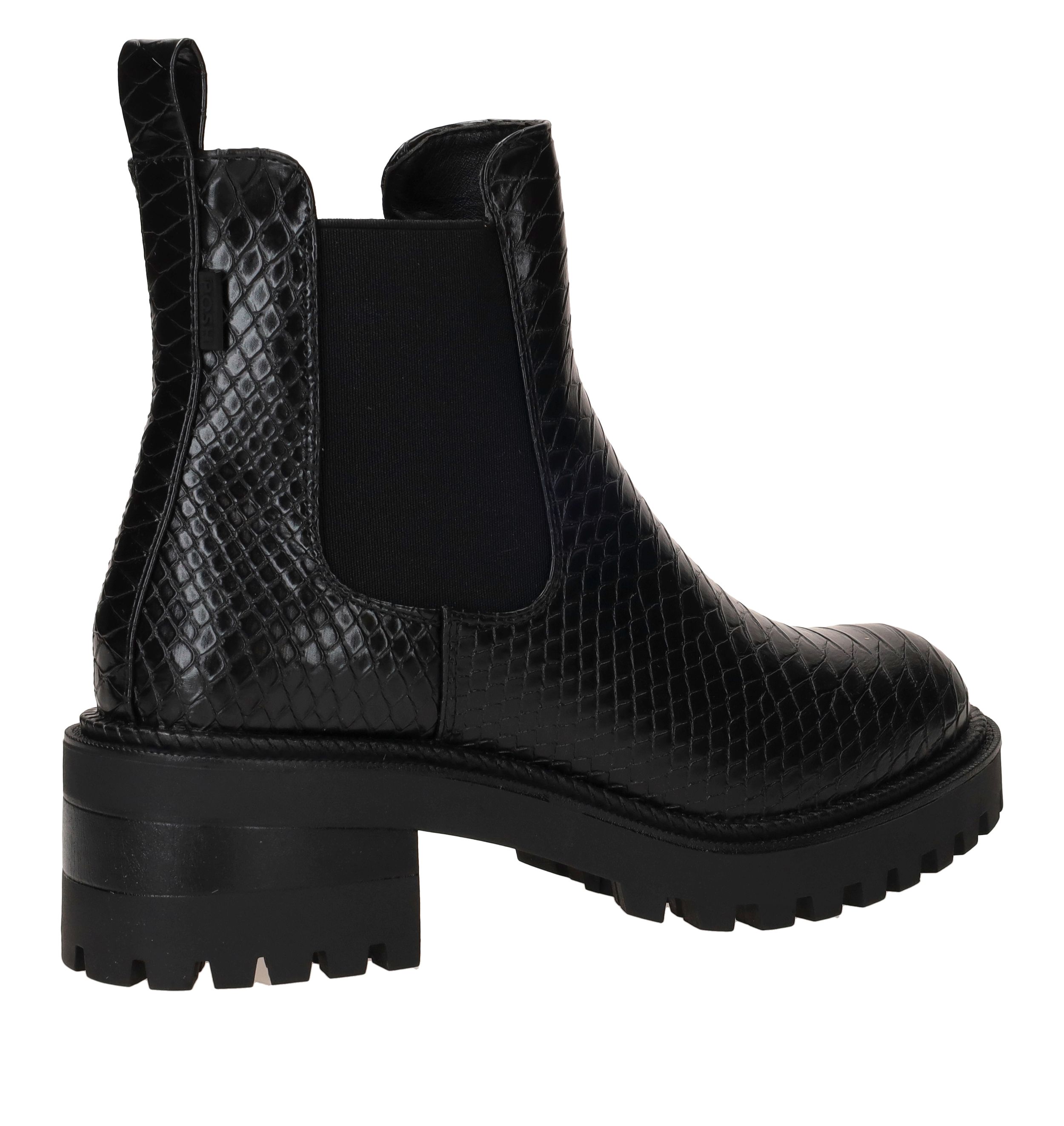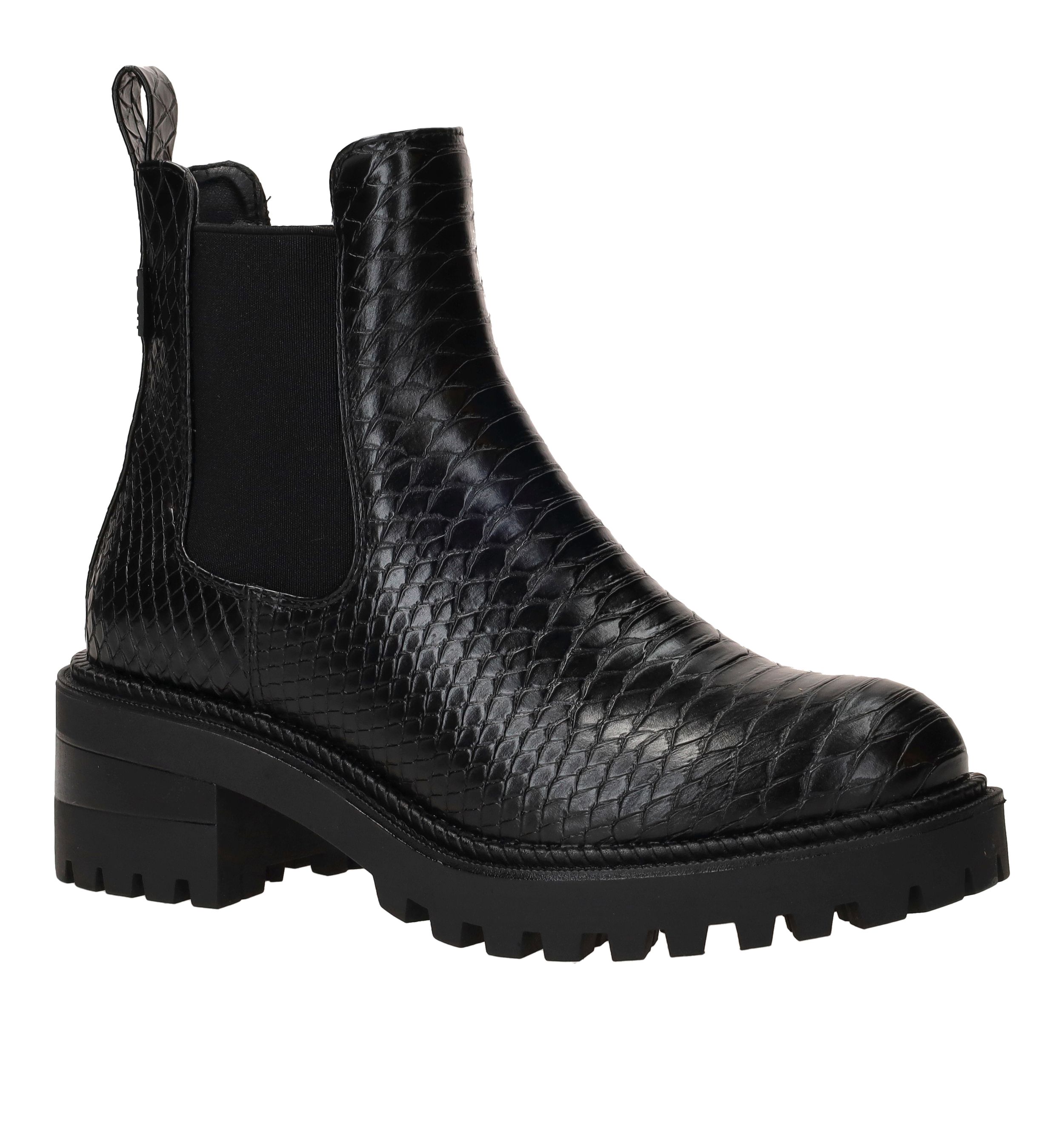 Gave zwarte POSH By Poelman chelseaboot voor dames. De chelseaboot heeft een dierenprint en robuuste zool.