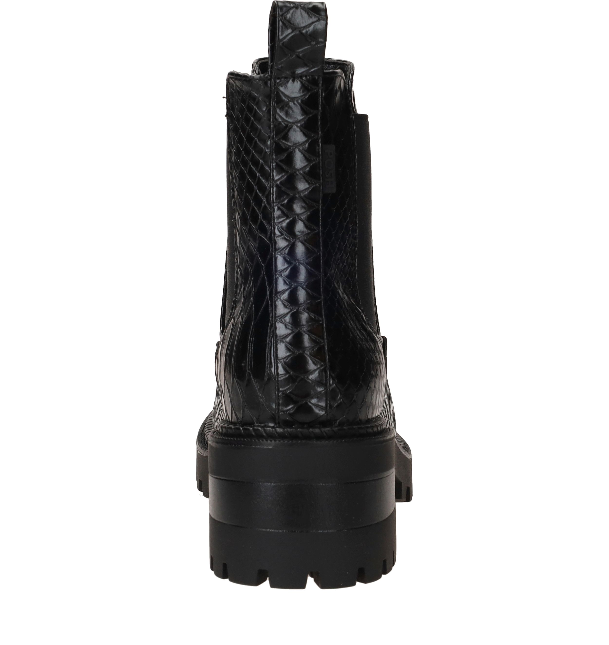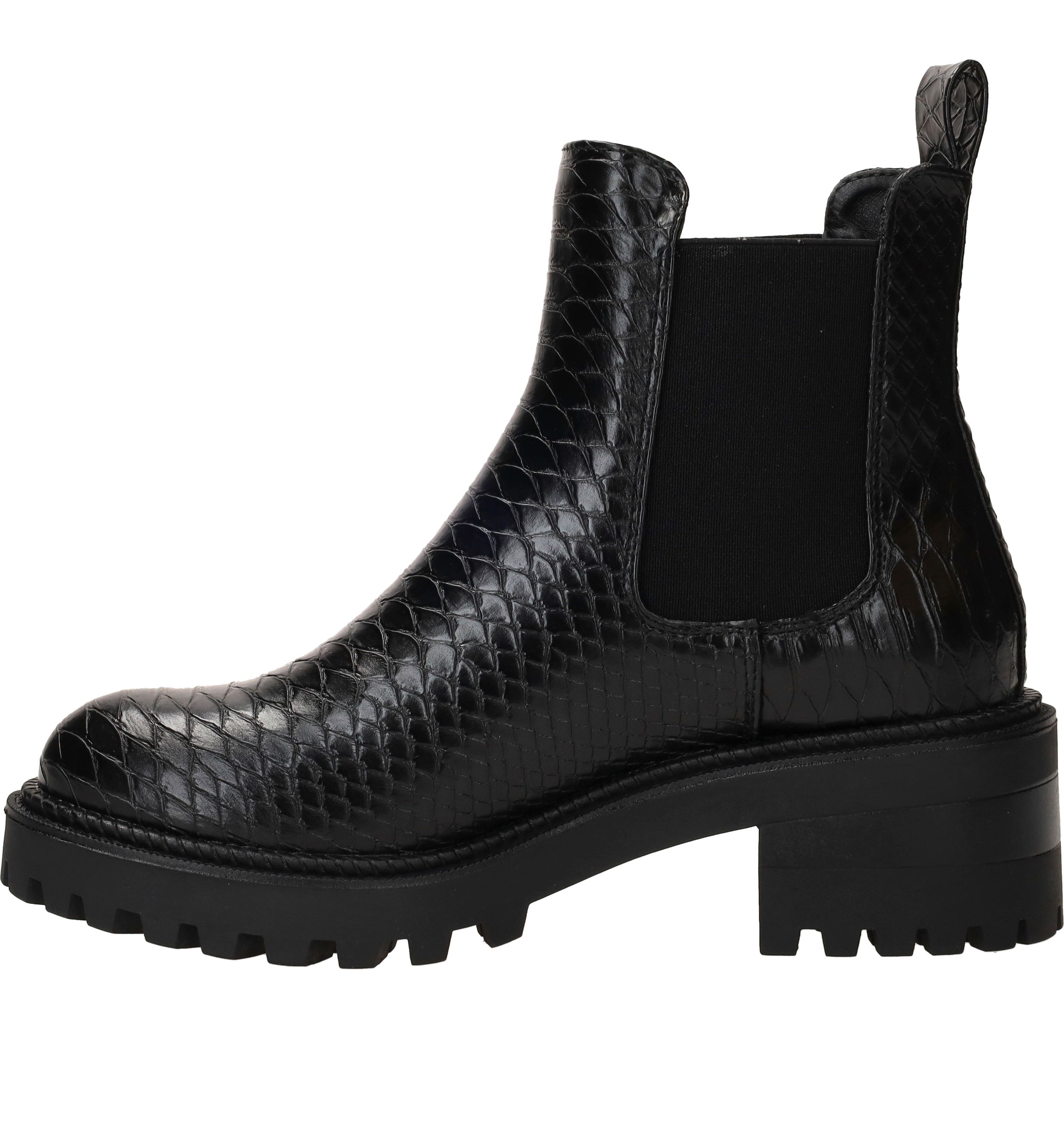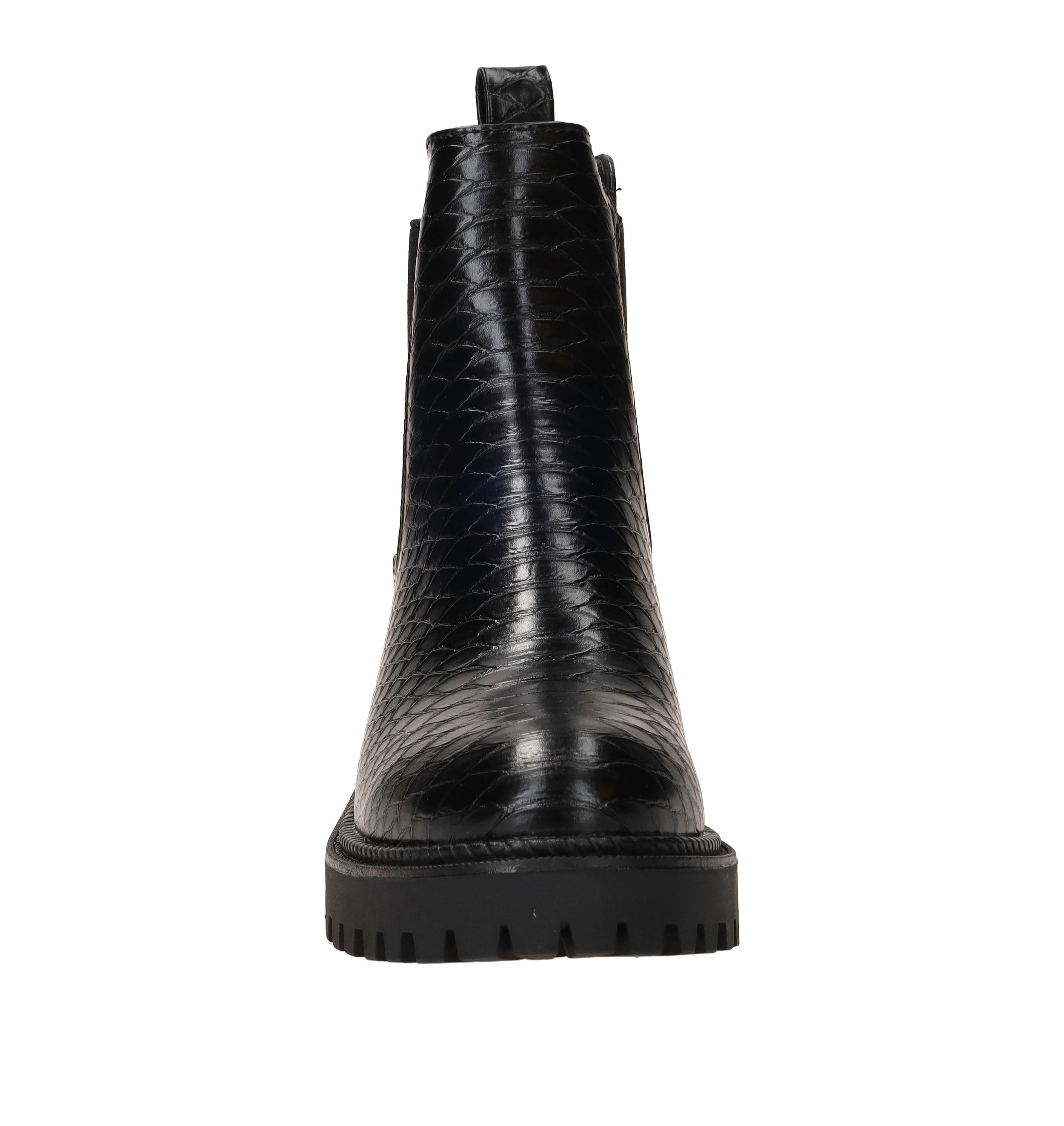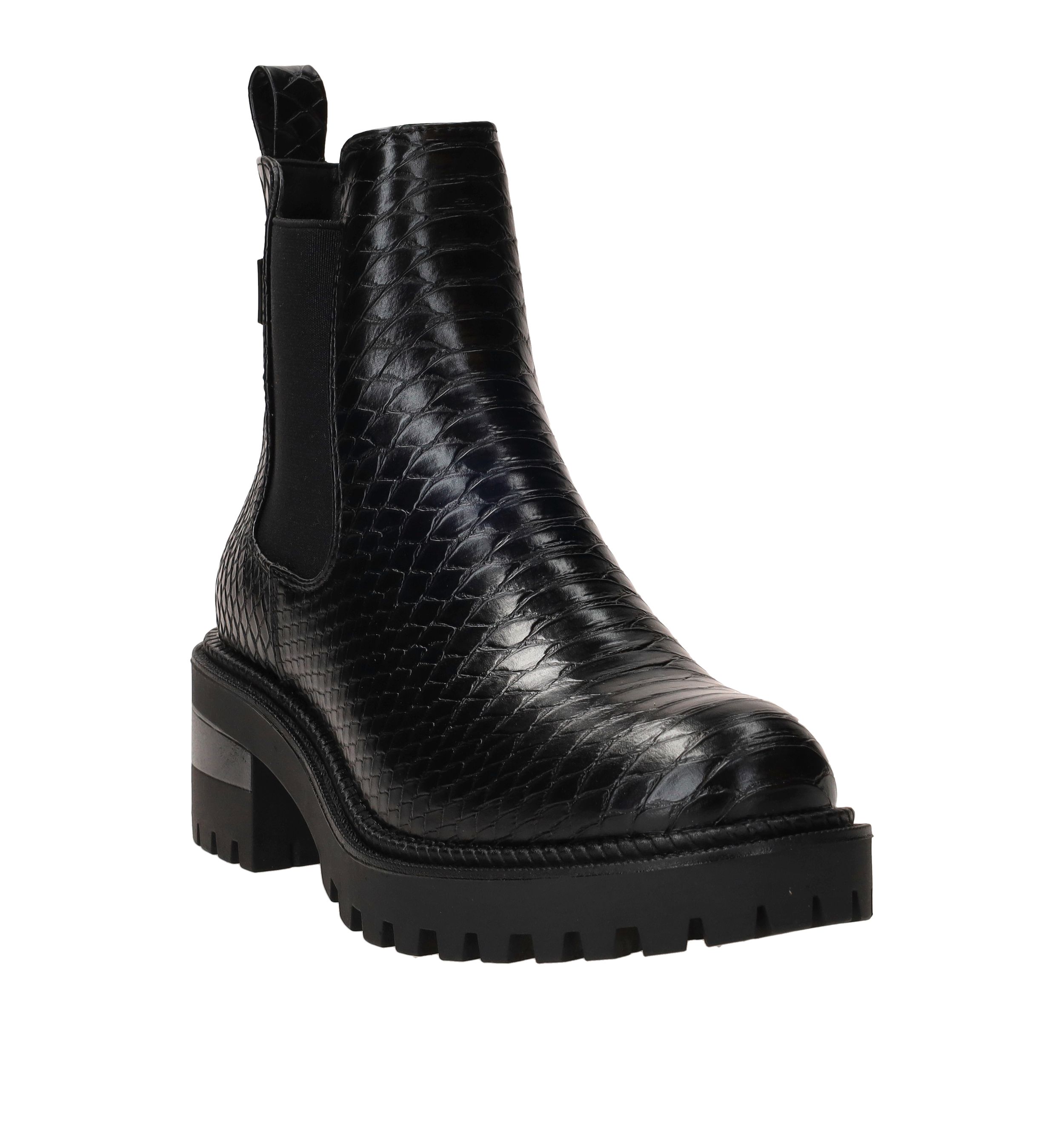 Gave zwarte POSH By Poelman chelseaboot voor dames. De chelseaboot heeft een dierenprint en robuuste zool.