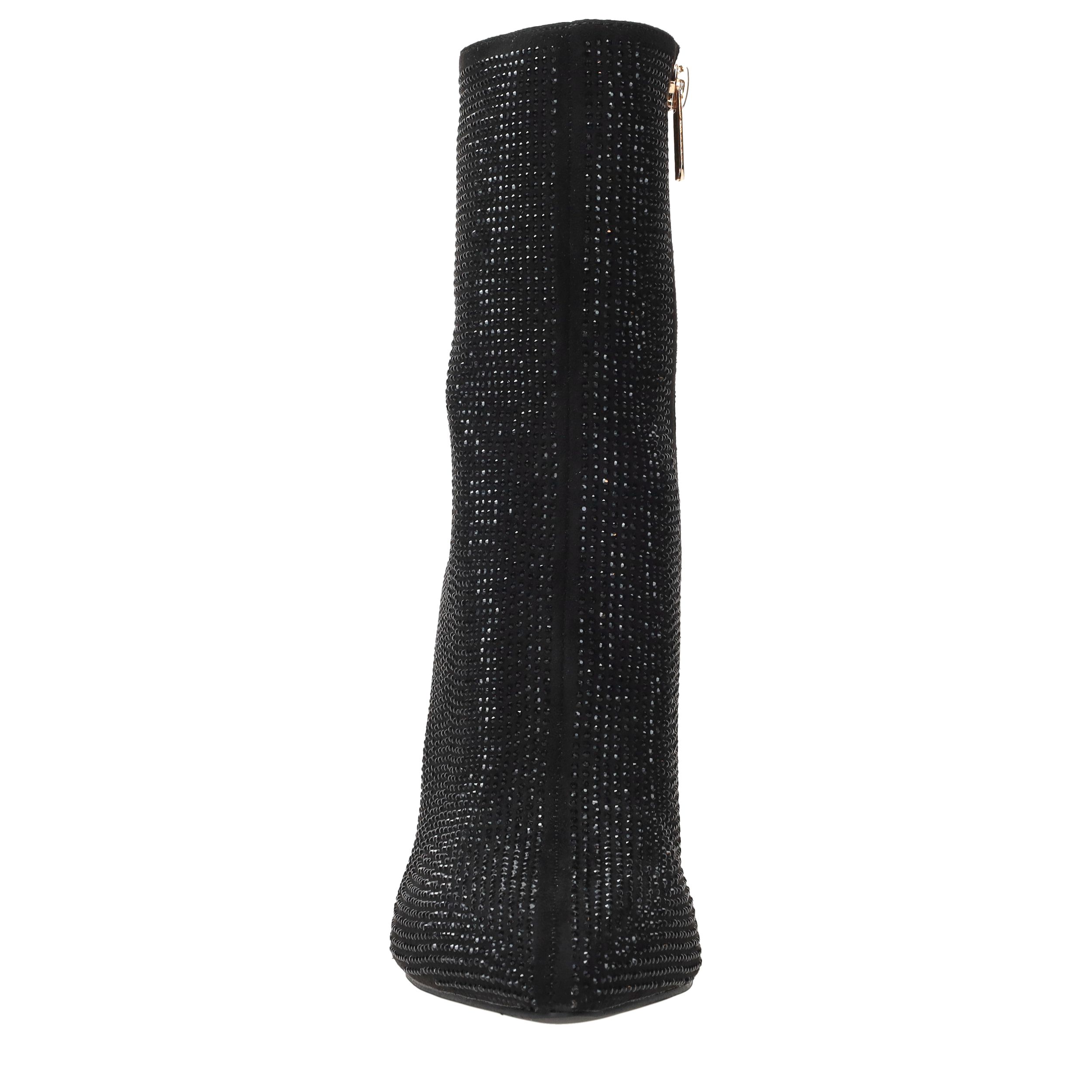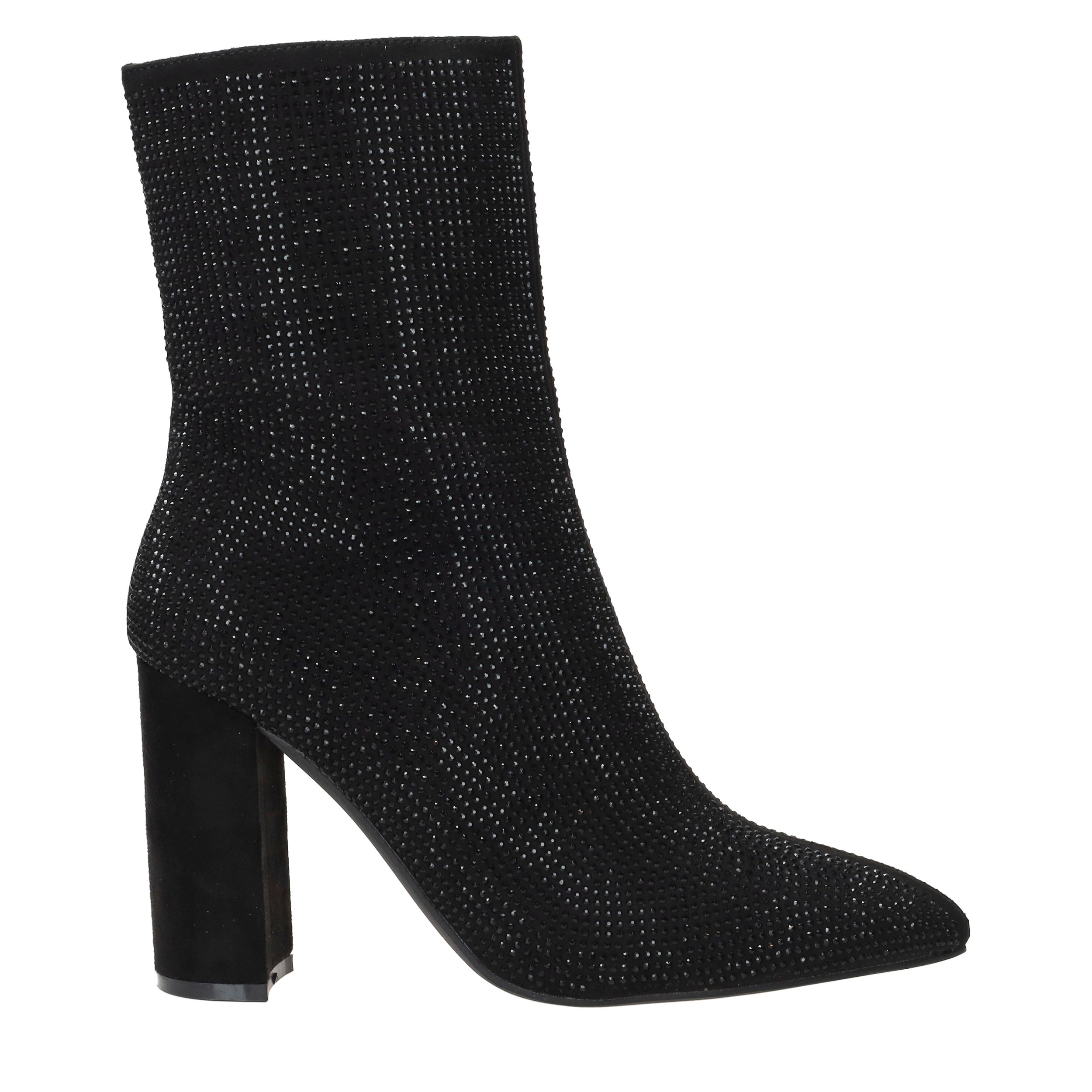 Deze stijlvolle enkellaars van POSH by Poelman is een echte must-have voor dames die elegantie en klasse willen combineren. De laars is uitgevoerd in diep zwart met een subtiele glans in het textiel, wat zorgt voor een luxueuze uitstraling. De binnenkant is gevoerd met textiel en kunstleer voor een comfortabel gevoel, terwijl de stevige blokhak stabiliteit biedt bij elke stap. Perfect voor zowel feestelijke gelegenheden als een stijlvolle dagelijkse look.
