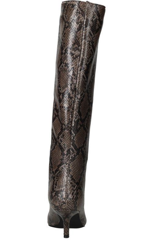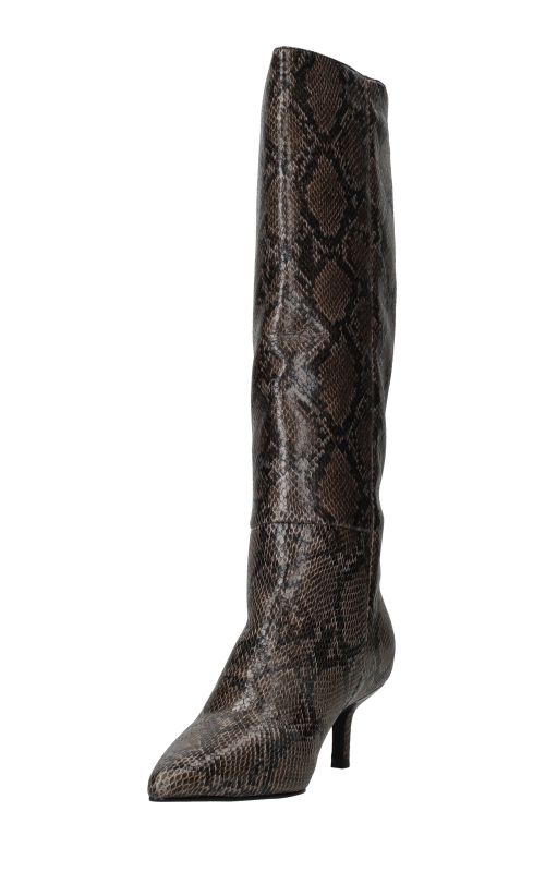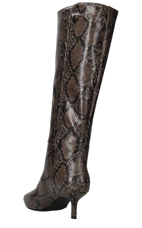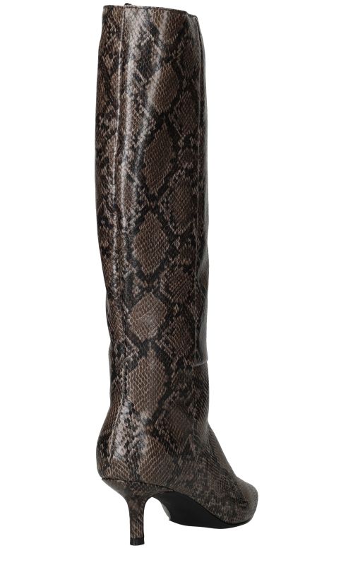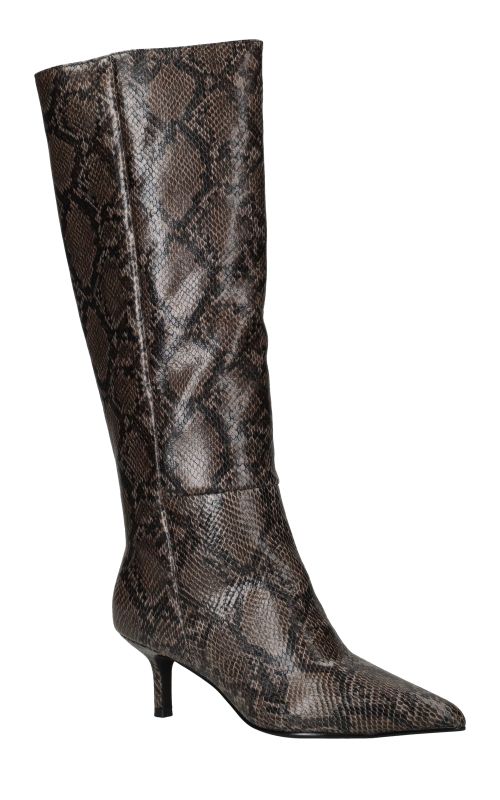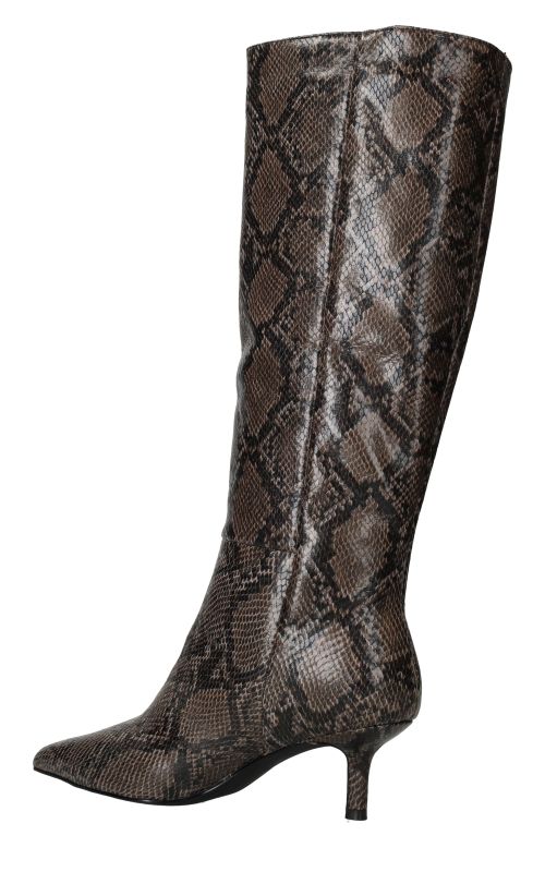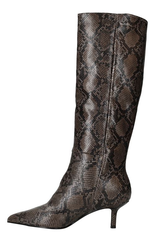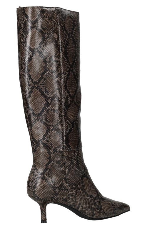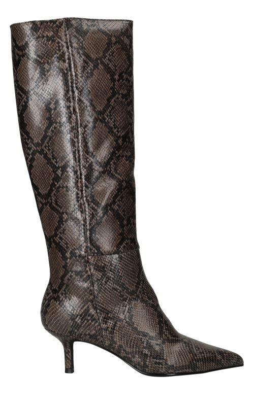 - Belangrijke kenmerken zijn de hoge schacht, de trendy slangenprint en de smalle hak die zorgen voor een verfijnde uitstraling.