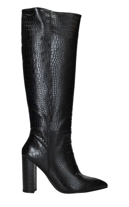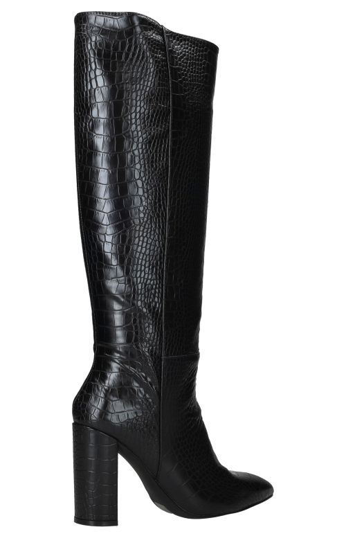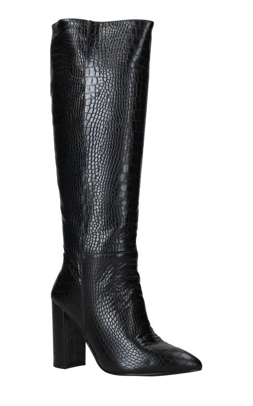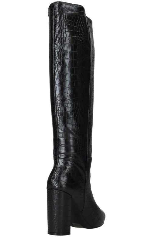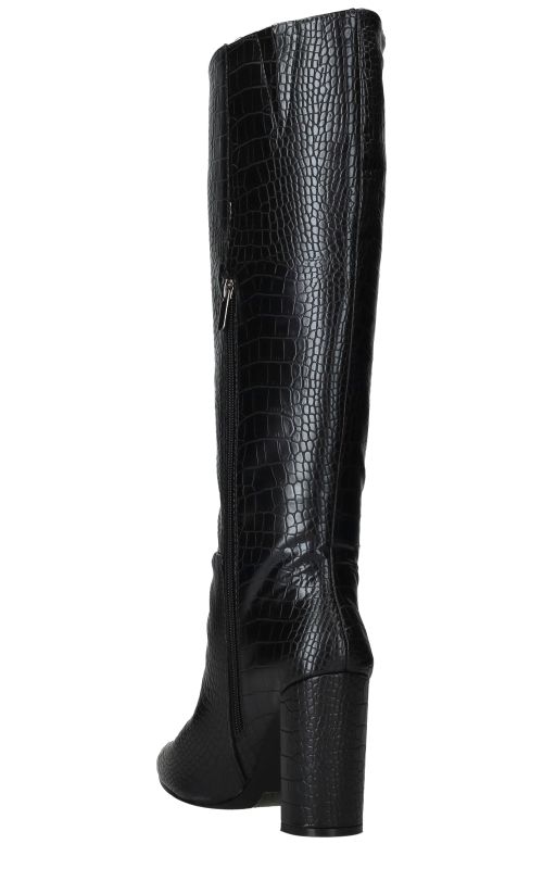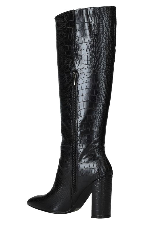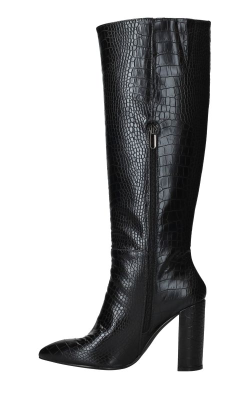 - Belangrijke kenmerken zijn de hoge schacht, de stevige hak en de modieuze krokodillenstructuur.