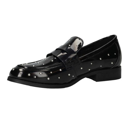 Deze elegante POSH by Poelman loafers geven elke outfit een chique en moderne touch. Deze zwarte dames instappers zijn uitgevoerd in kunstleer en textiel en afgewerkt met subtiele studs voor een trendy accent. Dankzij de G-voetbreedte en de comfortabele zool draag je ze moeiteloos de hele dag. Perfect voor dames die stijl en comfort willen combineren.
