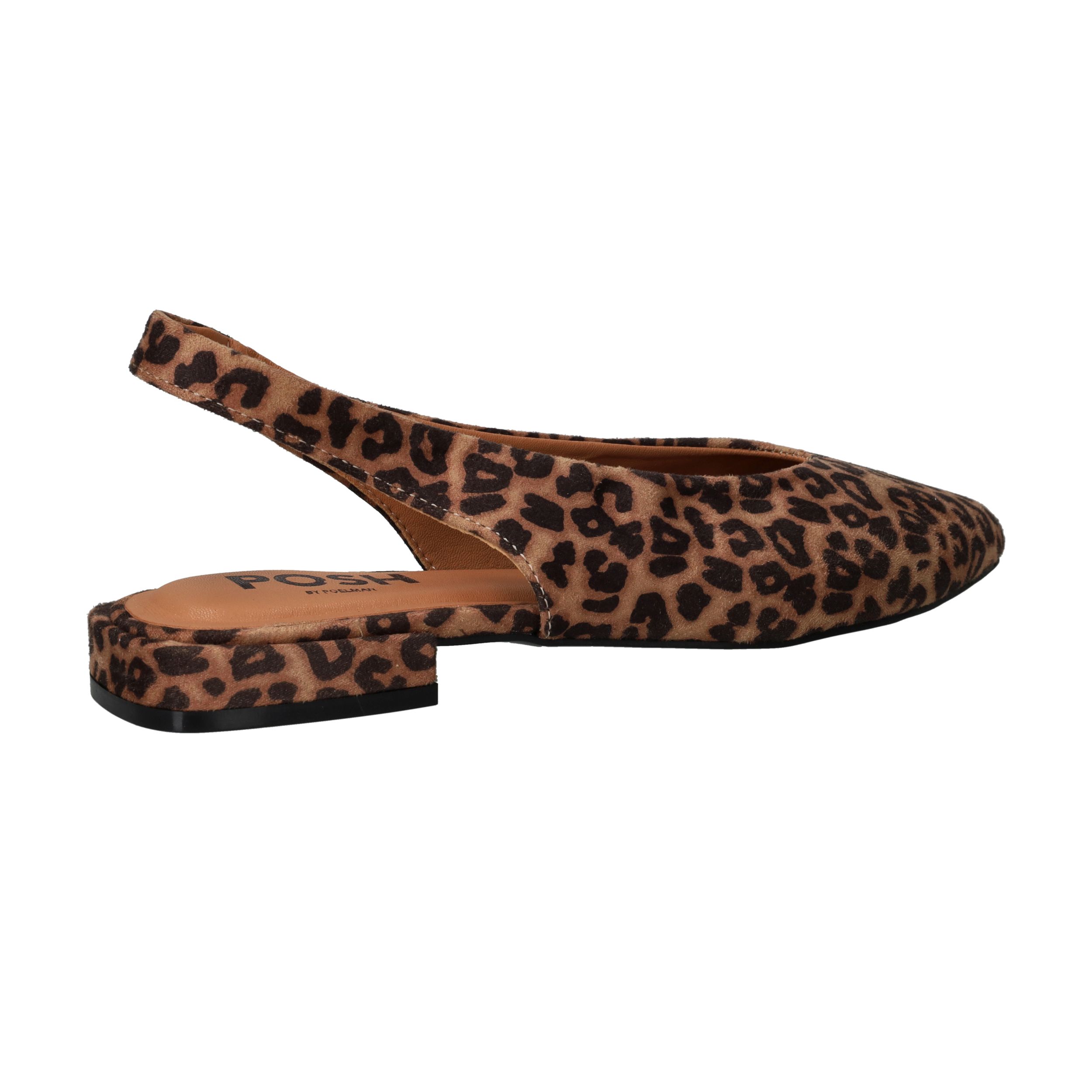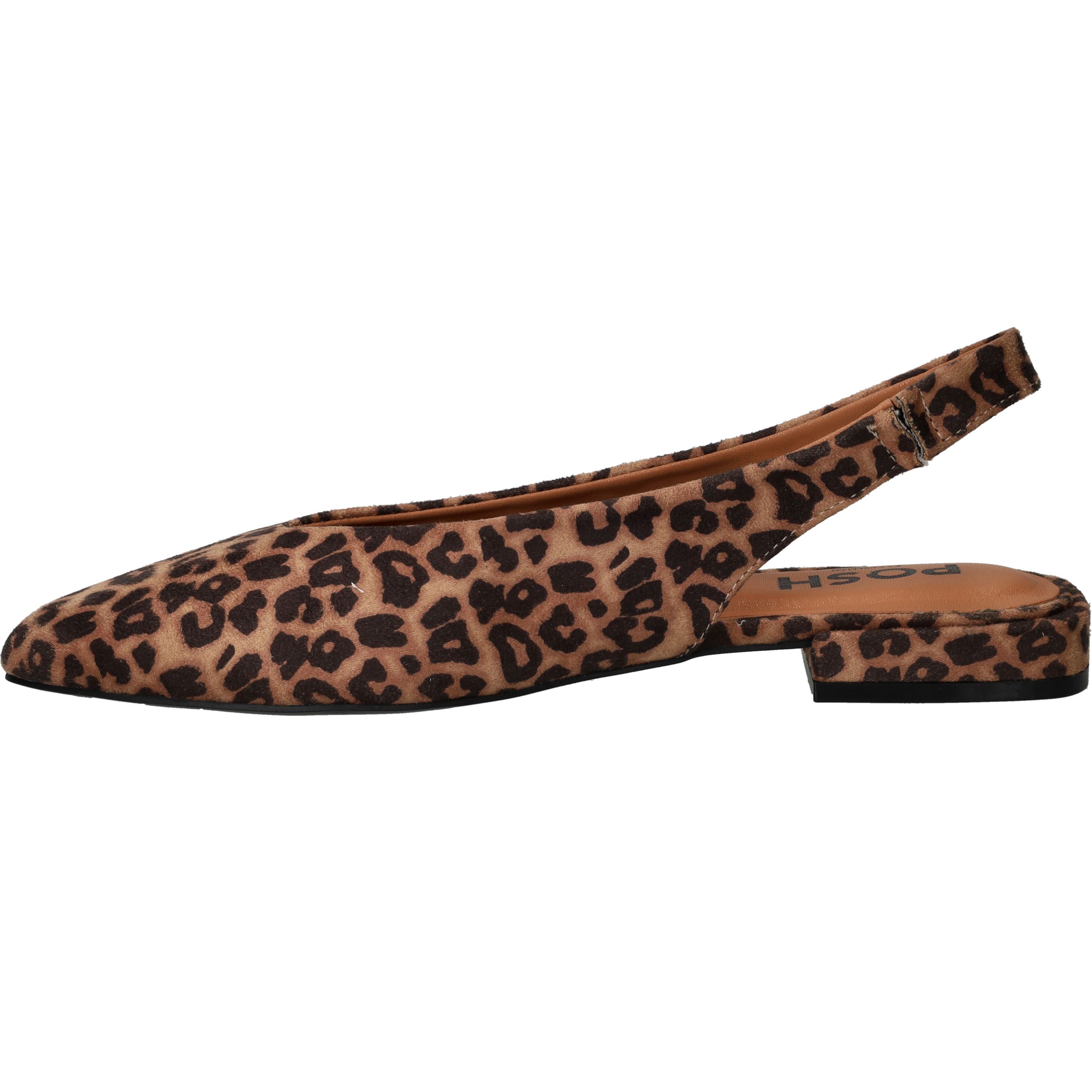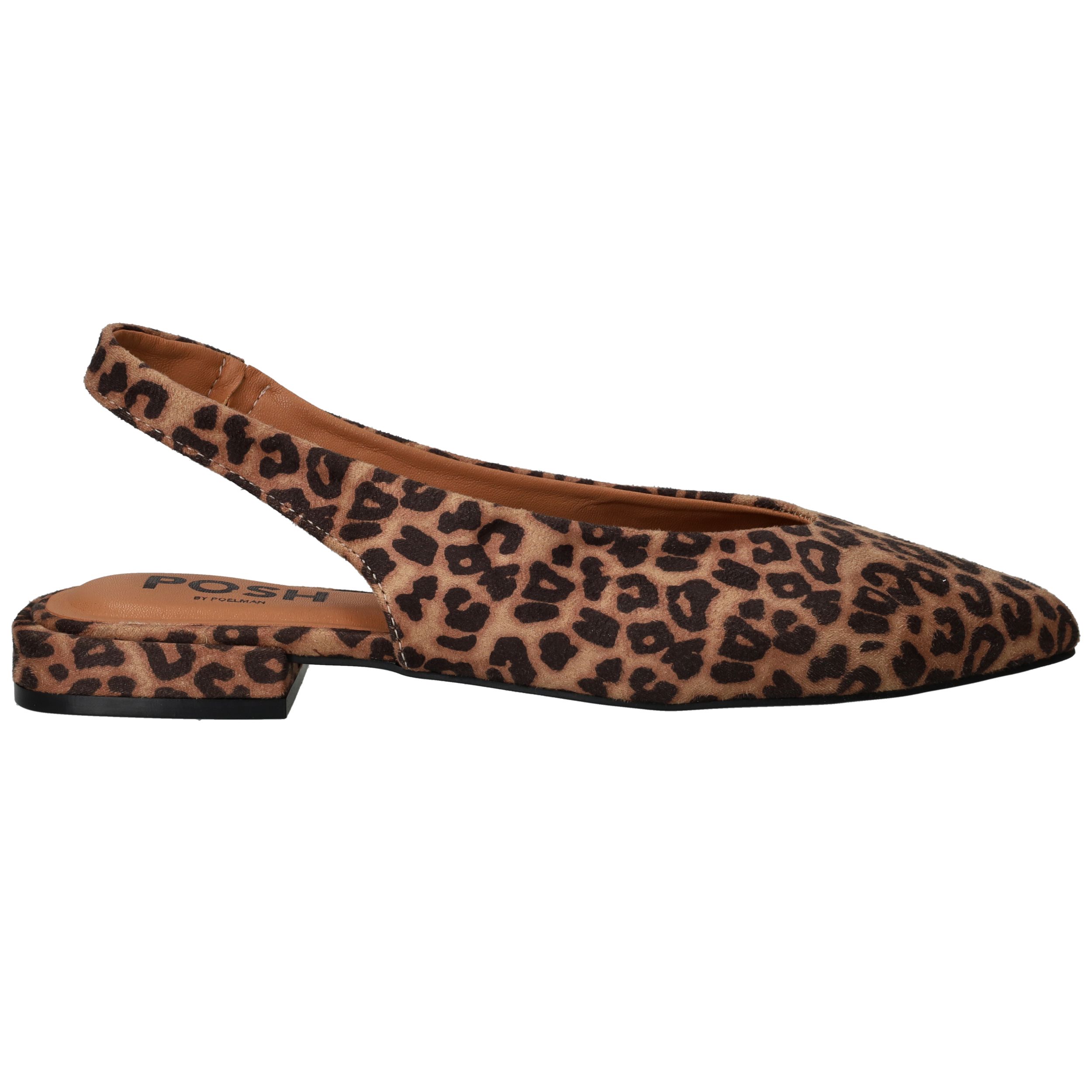Met deze leopardprint sandalen van POSH by Poelman geef je jouw zomerse outfit een speelse, modieuze twist. De spitse neus en het open hielstuk zorgen voor een elegante en luchtige uitstraling. Dankzij het zachte textiel en de flexibele pasvorm draag je ze met plezier, de hele dag door. Een perfecte match voor dames die op zoek zijn naar stijl én comfort met een stoer randje.